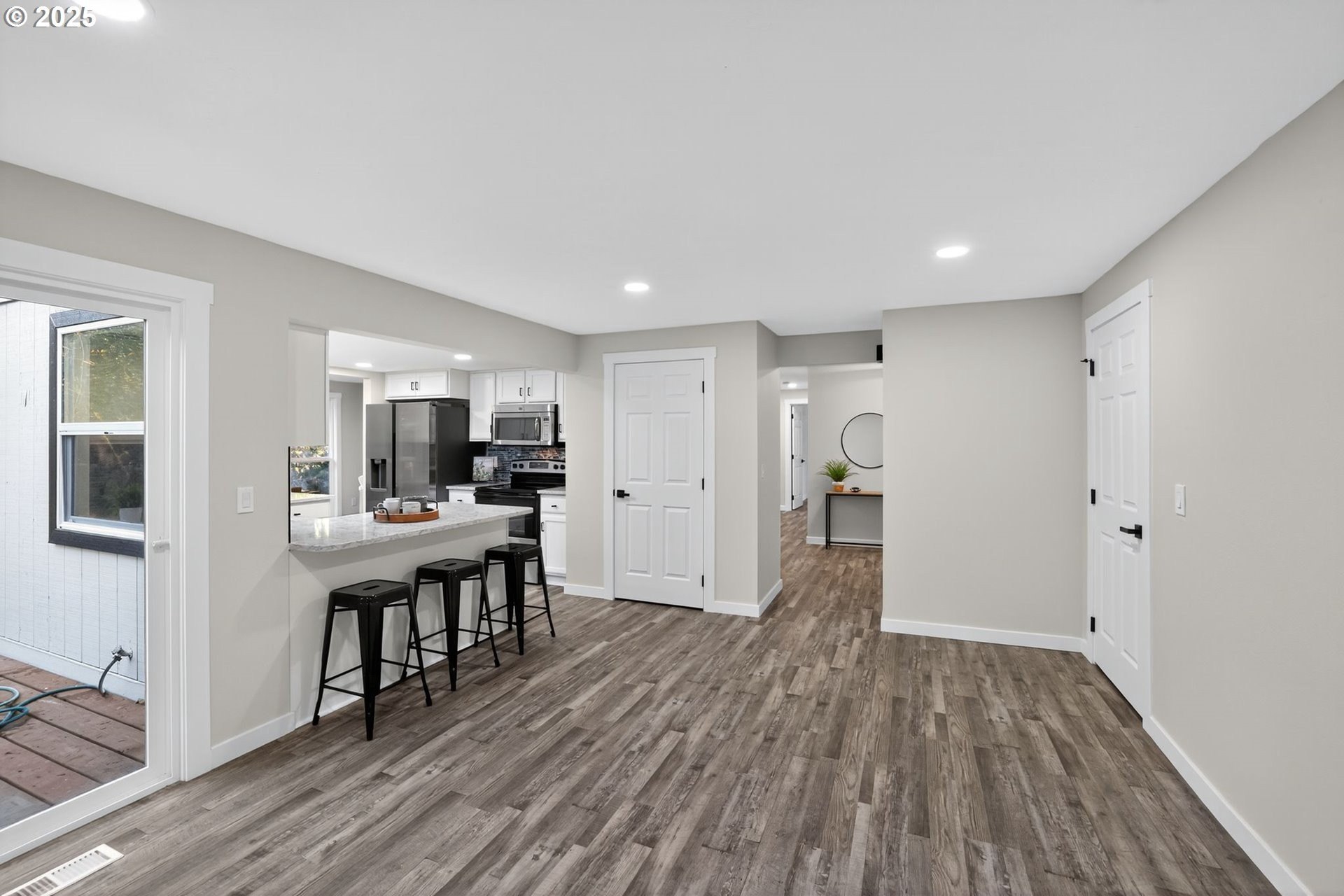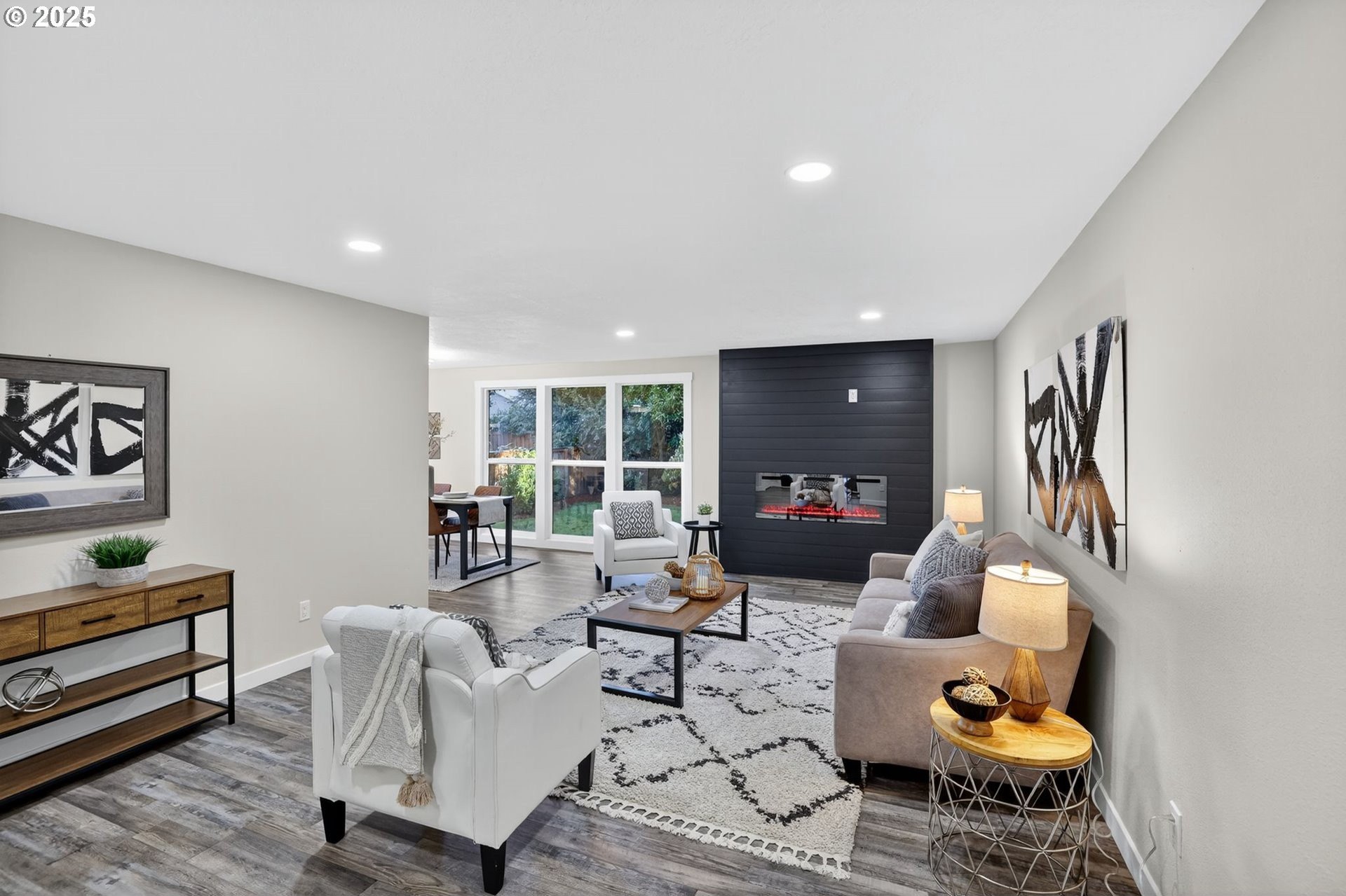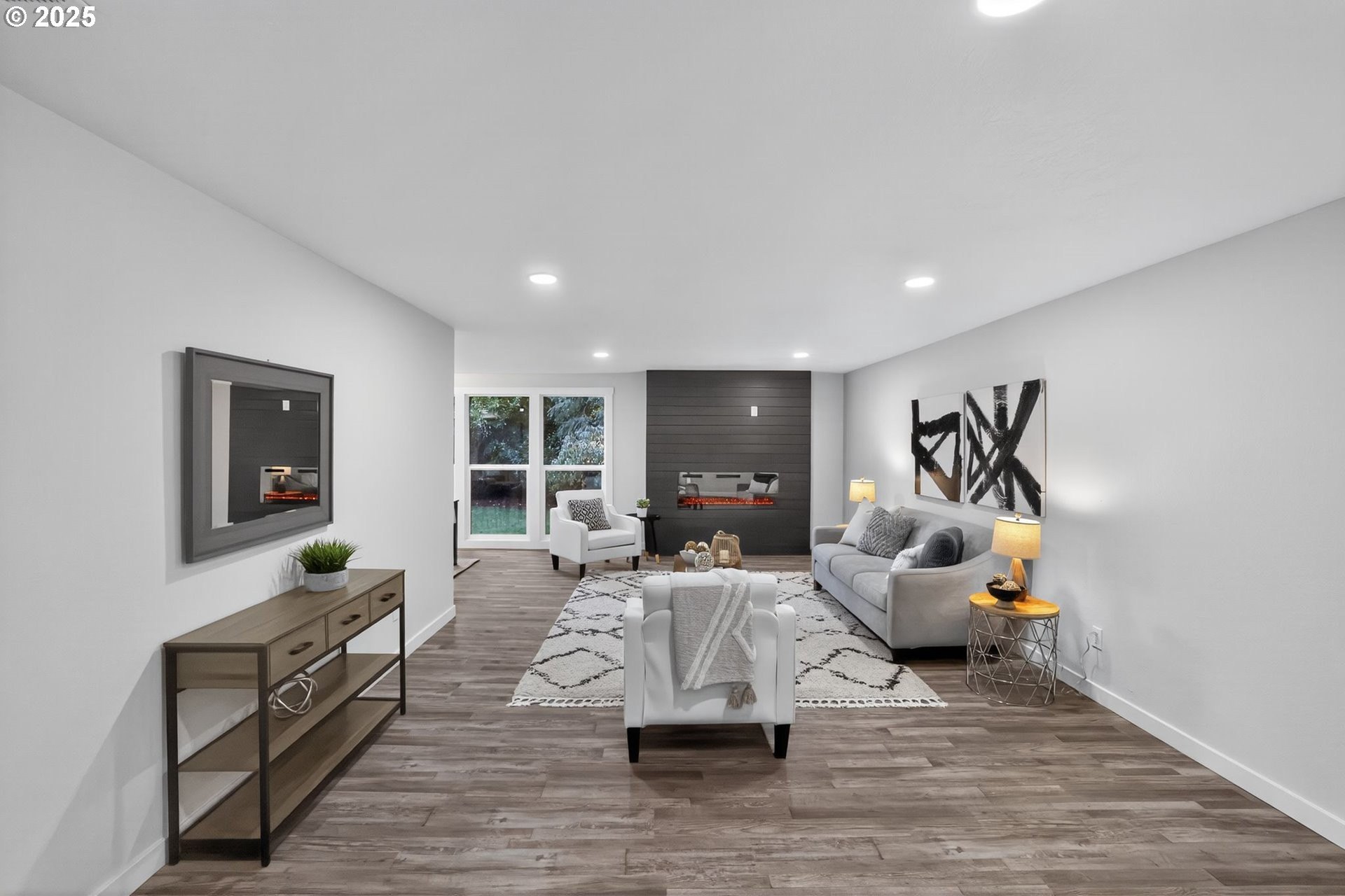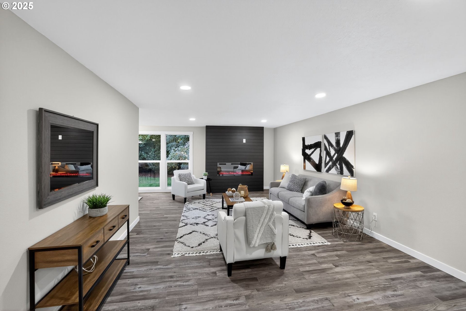 Step inside this beautifully updated 3-bedroom, 2-bath home that’s full of charm and modern touches! This home offers two comfortable living spaces, giving you plenty of room to relax or entertain. The kitchen sits perfectly between one of the living areas and the dining room — featuring an undermounted sink, mostly new appliances, and easy flow throughout. The new electric fireplace adds a cozy modern vibe, and both bathrooms have been completely refreshed — the primary bathroom shines with a gorgeous gold and black design and a stunning shower backsplash, while the hall bath keeps things bright with white and gold accents. Other updates include all-new LVP flooring throughout, new windows, a newer roof, fresh interior and exterior paint, new trim, light fixtures, landscaping, deck, driveway, and gutters. *Seller is a licensed broker in OR