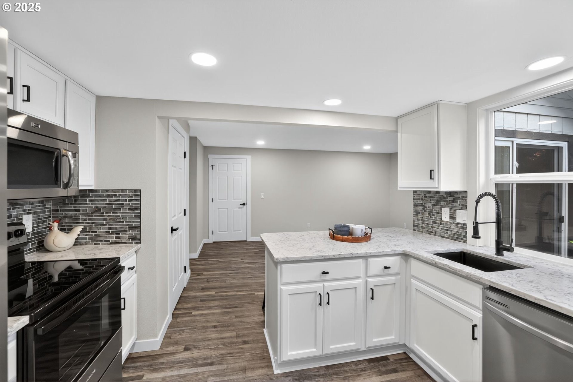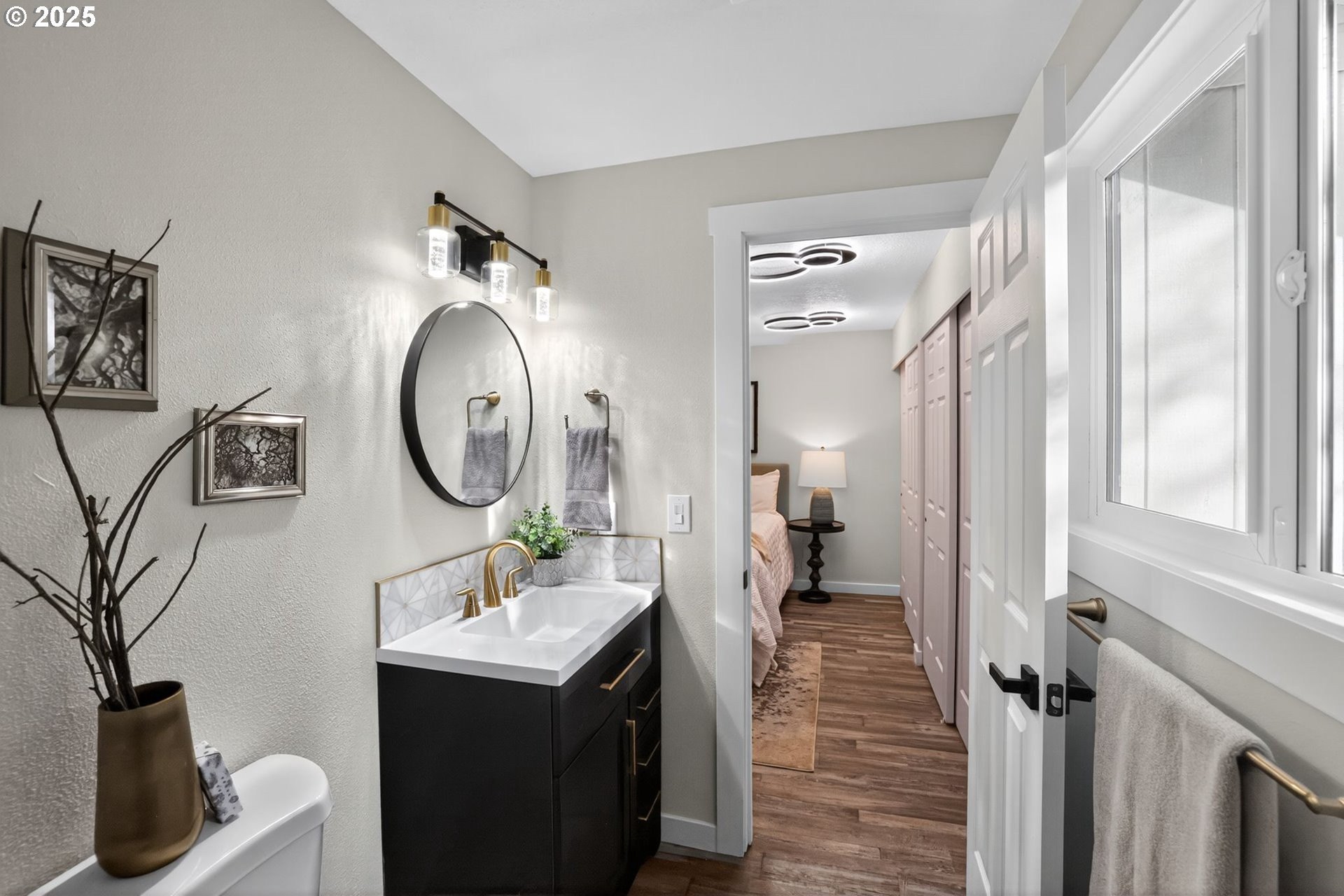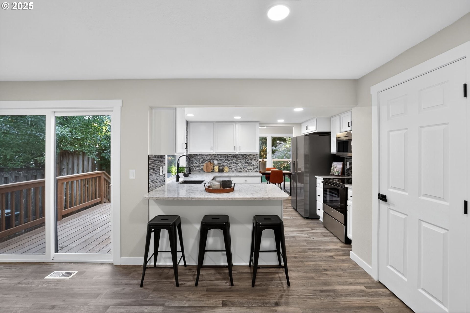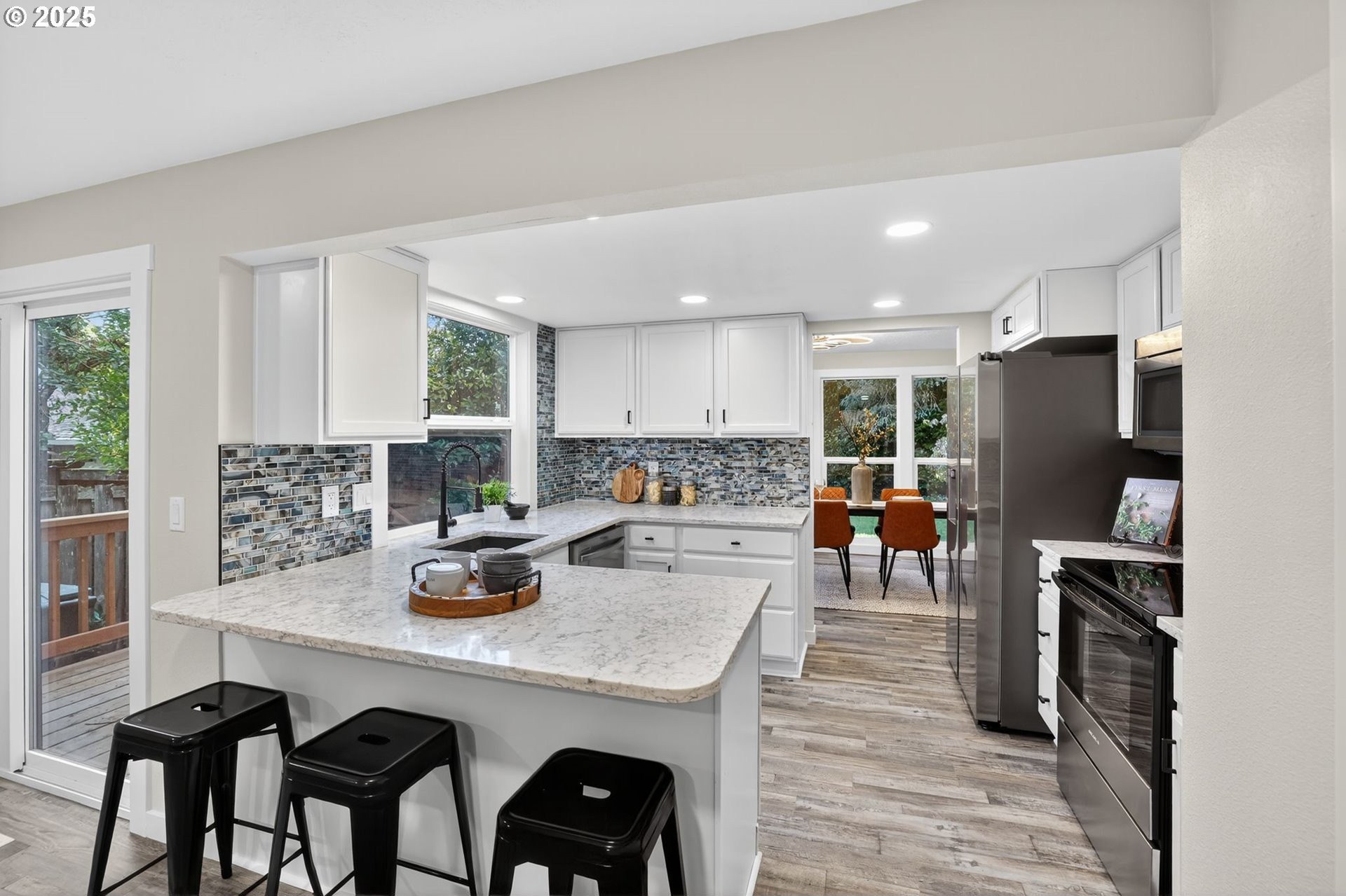 Step inside this beautifully updated 3-bedroom, 2-bath home that’s full of charm and modern touches! This home offers two comfortable living spaces, giving you plenty of room to relax or entertain. The kitchen sits perfectly between one of the living areas and the dining room — featuring an undermounted sink, mostly new appliances, and easy flow throughout. The new electric fireplace adds a cozy modern vibe, and both bathrooms have been completely refreshed — the primary bathroom shines with a gorgeous gold and black design and a stunning shower backsplash, while the hall bath keeps things bright with white and gold accents. Other updates include all-new LVP flooring throughout, new windows, a newer roof, fresh interior and exterior paint, new trim, light fixtures, landscaping, deck, driveway, and gutters. *Seller is a licensed broker in OR