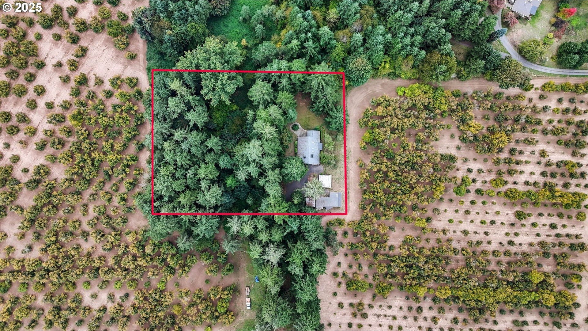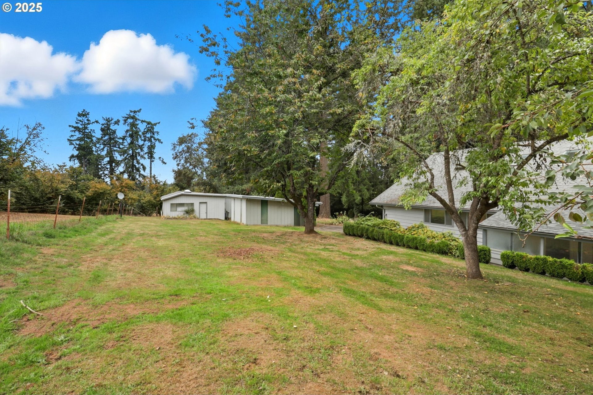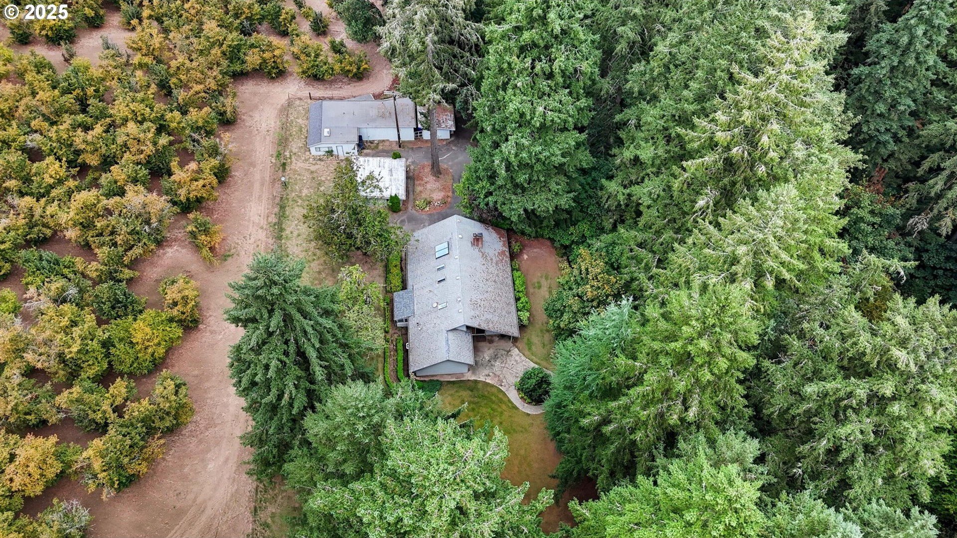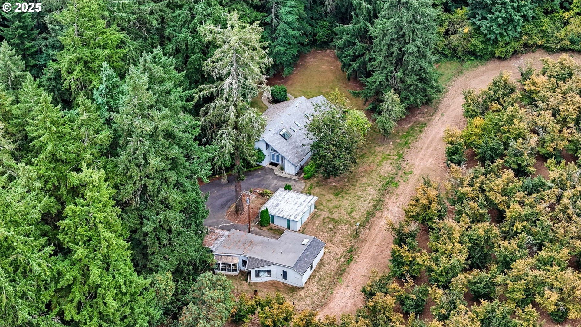 Tucked away in a peaceful 2-acre setting surrounded by pristine farmland, this spacious mid-century home offers immense potential to become a stunning modern retreat. The 4+ bedroom, 2.5-bath layout is filled with character and ready for your finishing touches. The main level features a vaulted primary suite, a large living room with hardwood floors and a striking stone fireplace, and a beautifully remodeled kitchen that opens to a private patio—perfect for morning coffee or evening gatherings. A bright sunroom and generous office provide added flexibility and comfort. Upstairs, you’ll find two additional bedrooms, a sitting area and a full bath. Outside, enjoy a level, usable yard shaded by mature fruit trees and alive with vibrant wildlife—a serene natural backdrop for outdoor living. The property also includes a detached carport and a partially finished shop or office space, ideal for hobbies, remote work, or extra storage. New well pump and heat pump in 2025. With a bit of updating, this home will have everything it needs to truly shine. Close in Sherwood location bordering the urban growth boundary.