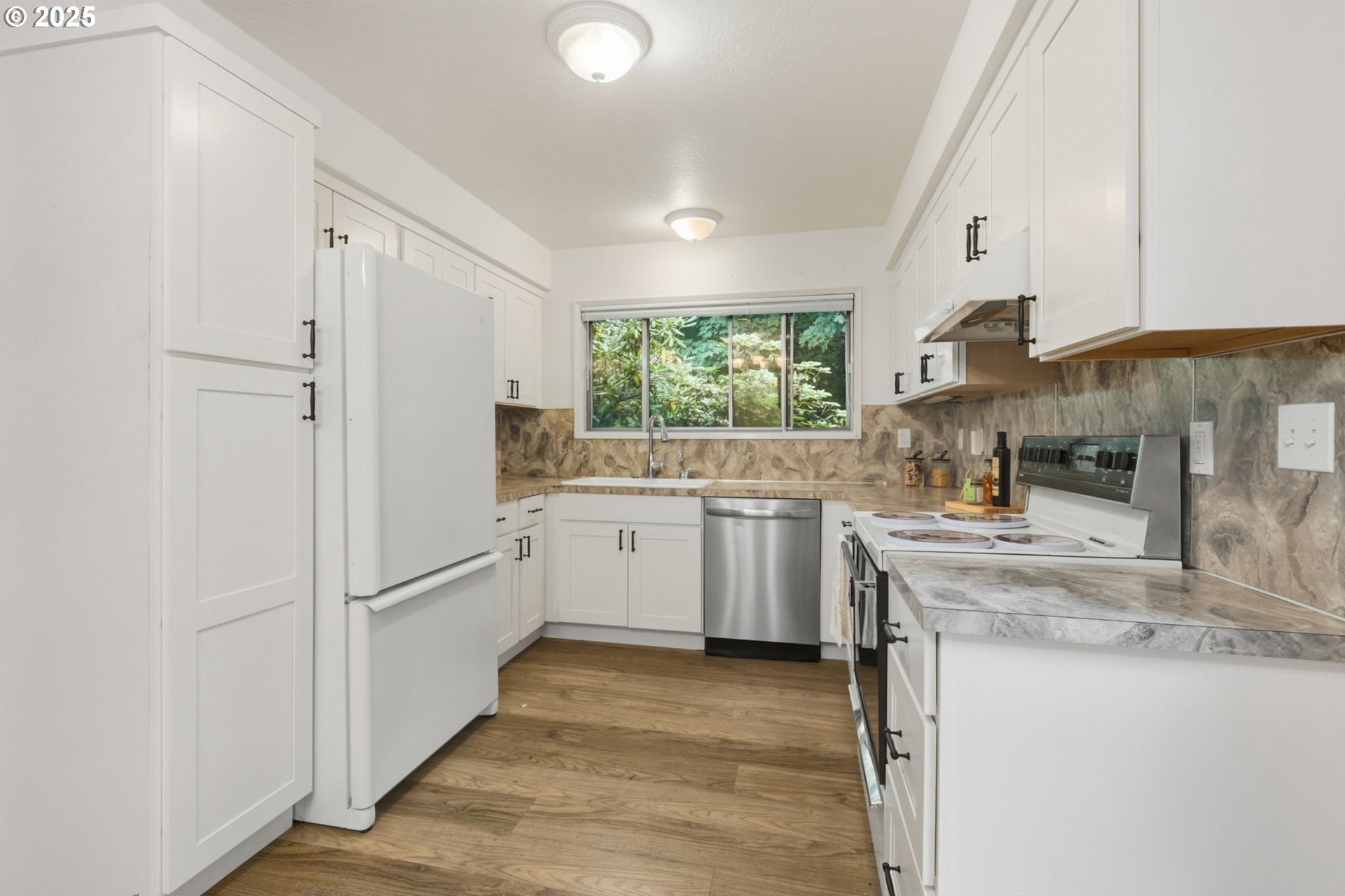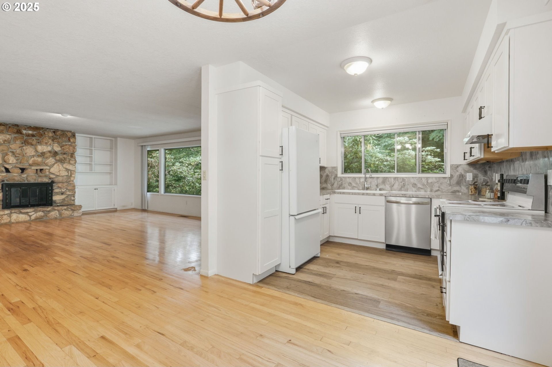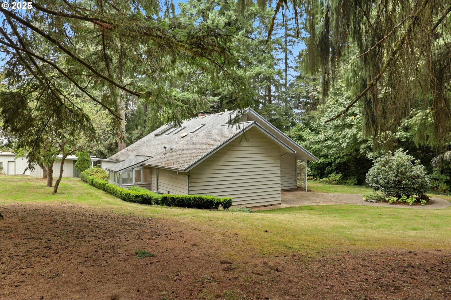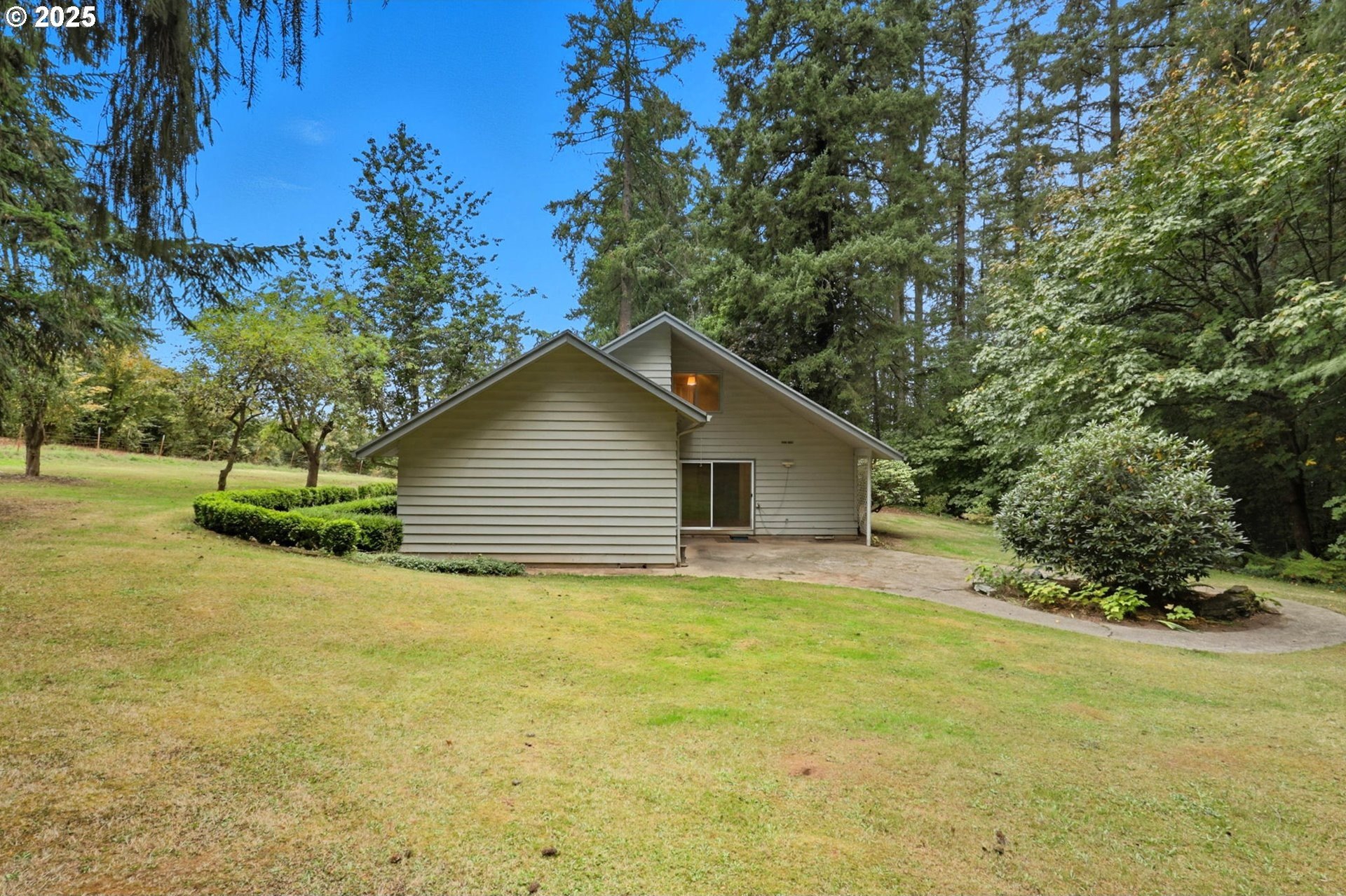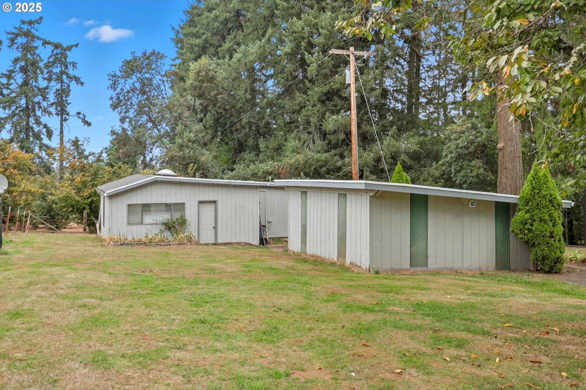 Tucked away in a peaceful 2-acre setting surrounded by pristine farmland, this spacious mid-century home offers immense potential to become a stunning modern retreat. The 4+ bedroom, 2.5-bath layout is filled with character and ready for your finishing touches. The main level features a vaulted primary suite, a large living room with hardwood floors and a striking stone fireplace, and a beautifully remodeled kitchen that opens to a private patio—perfect for morning coffee or evening gatherings. A bright sunroom and generous office provide added flexibility and comfort. Upstairs, you’ll find two additional bedrooms, a sitting area and a full bath. Outside, enjoy a level, usable yard shaded by mature fruit trees and alive with vibrant wildlife—a serene natural backdrop for outdoor living. The property also includes a detached carport and a partially finished shop or office space, ideal for hobbies, remote work, or extra storage. New well pump and heat pump in 2025. With a bit of updating, this home will have everything it needs to truly shine. Close in Sherwood location bordering the urban growth boundary.