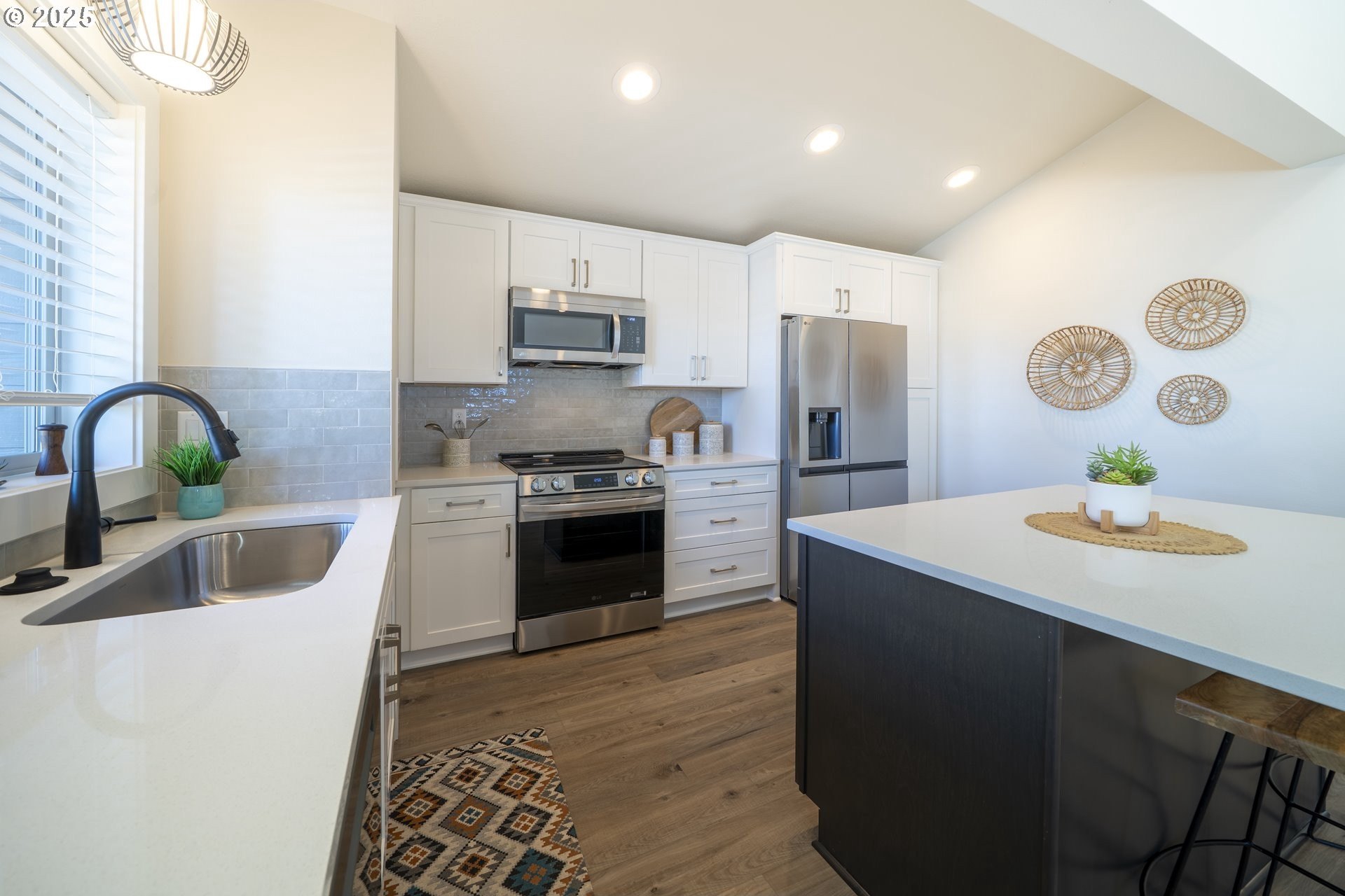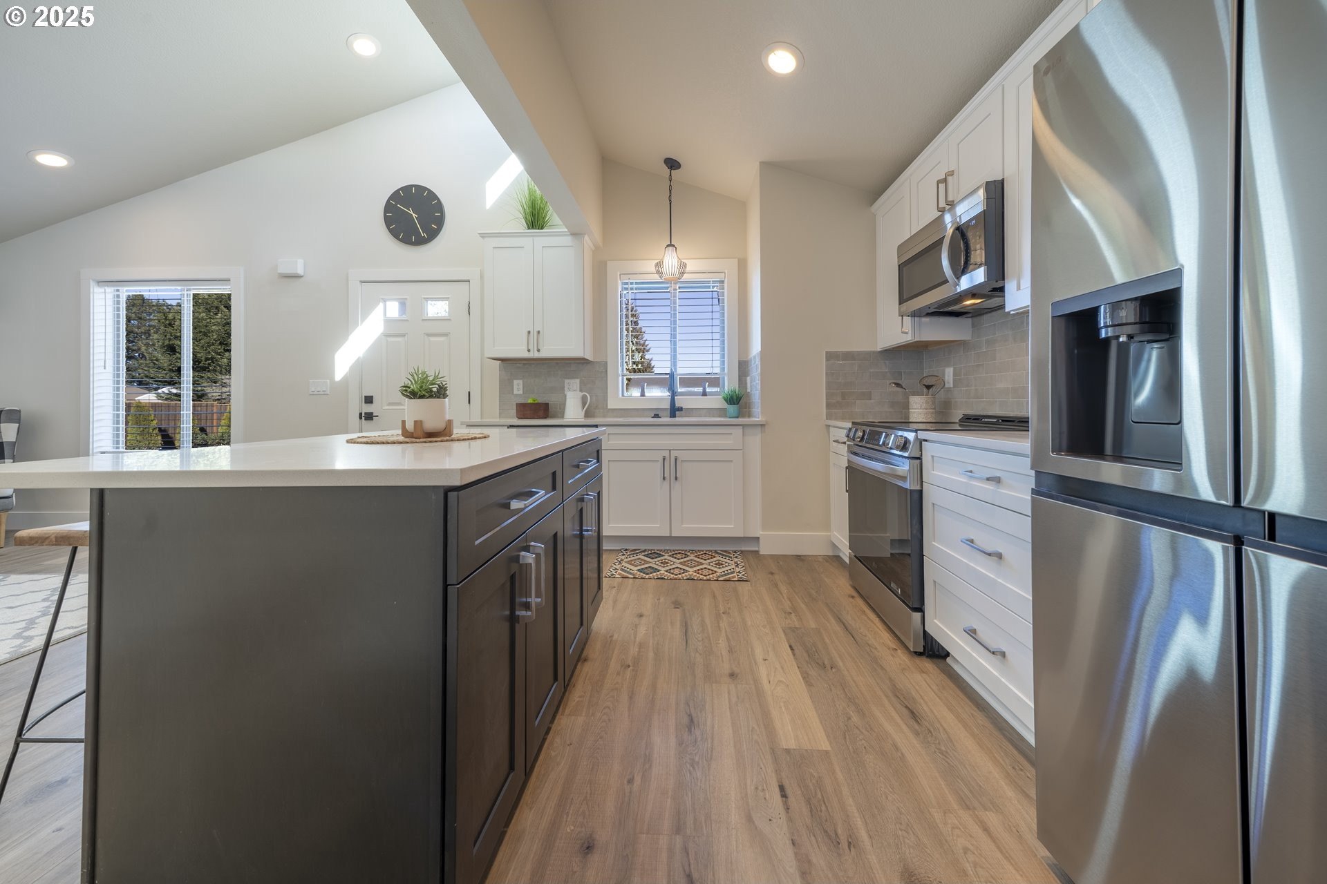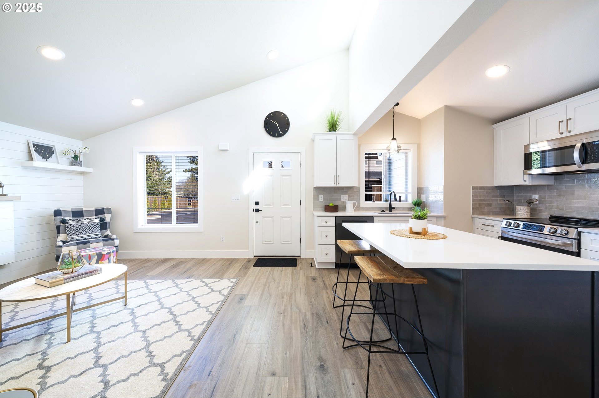 Brand new one level luxury cottage home thoughtfully designed for comfort and style. From the moment you enter, you’ll be welcomed by stunning luxury vinyl plank flooring, soaring vaulted ceilings, and an abundance of natural light that fills the open-concept living space.The heart of the home features a beautifully crafted kitchen complete with quartz countertops, soft-close cabinets, a spacious island, and premium stainless steel appliances—including the refrigerator. Cozy up in the inviting living room, highlighted by a floor-to-ceiling shiplap accent wall, floating built in shelve, and a sleek electric fireplace. This 2-bedroom, 2-bathroom gem includes a spacious primary suite with a luxurious attached bath, featuring a walk-in shower. Each home comes with a dedicated parking spot, and the $223/month HOA covers nearly everything except electricity and cable ensuring low-maintenance living. This home also offers a fenced private yard! Nestled in a peaceful neighborhood, you’re just a short walk to Wesley Linn Park and minutes from local shopping and amenities. Don’t miss this opportunity to own a beautifully designed home built by a trusted local custom home builder: Gerritz Custom Homes who has been building quality homes since: 1979. This custom cottage offers Luxury, convenience, and charm—all in one perfect package!