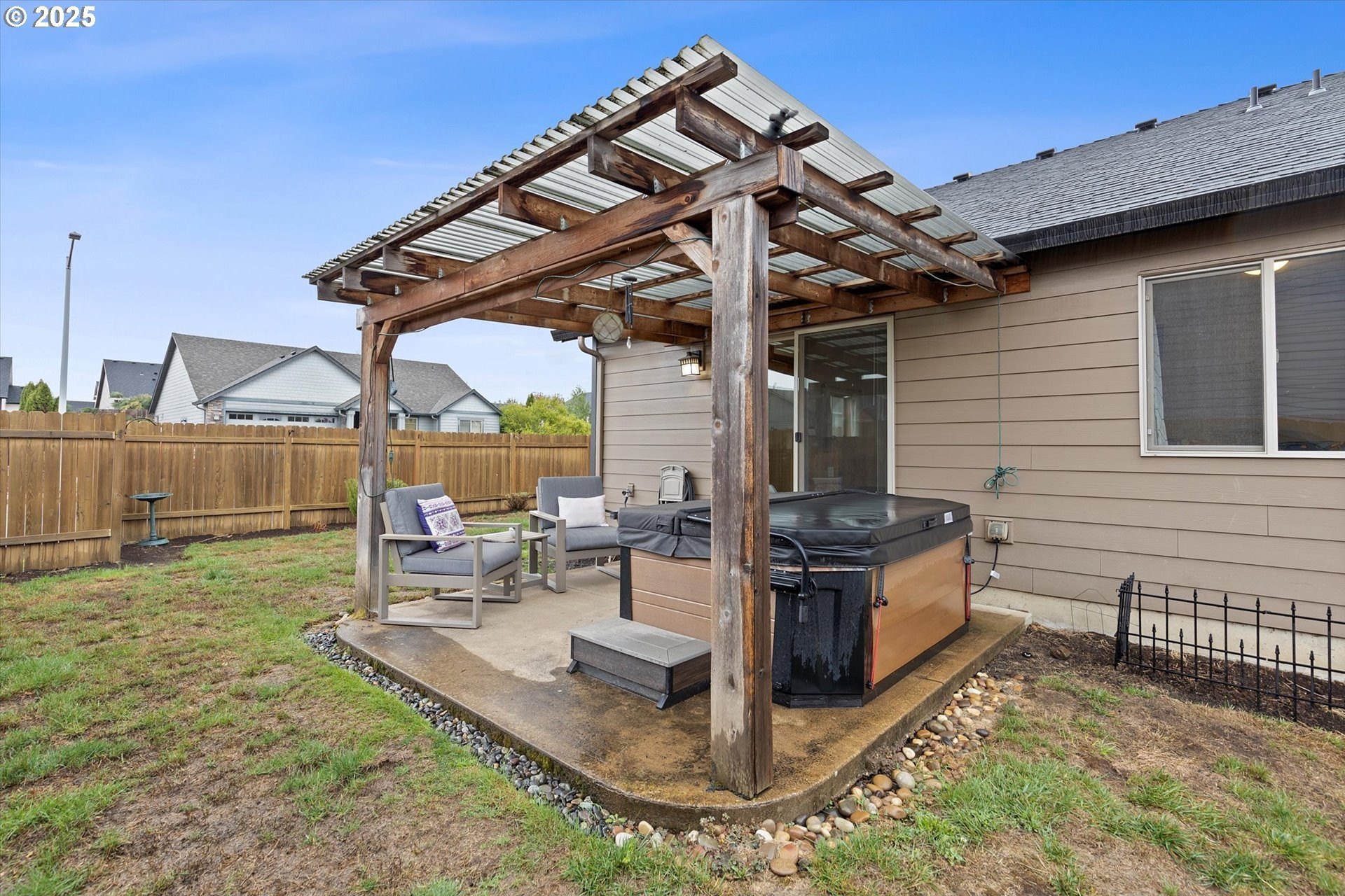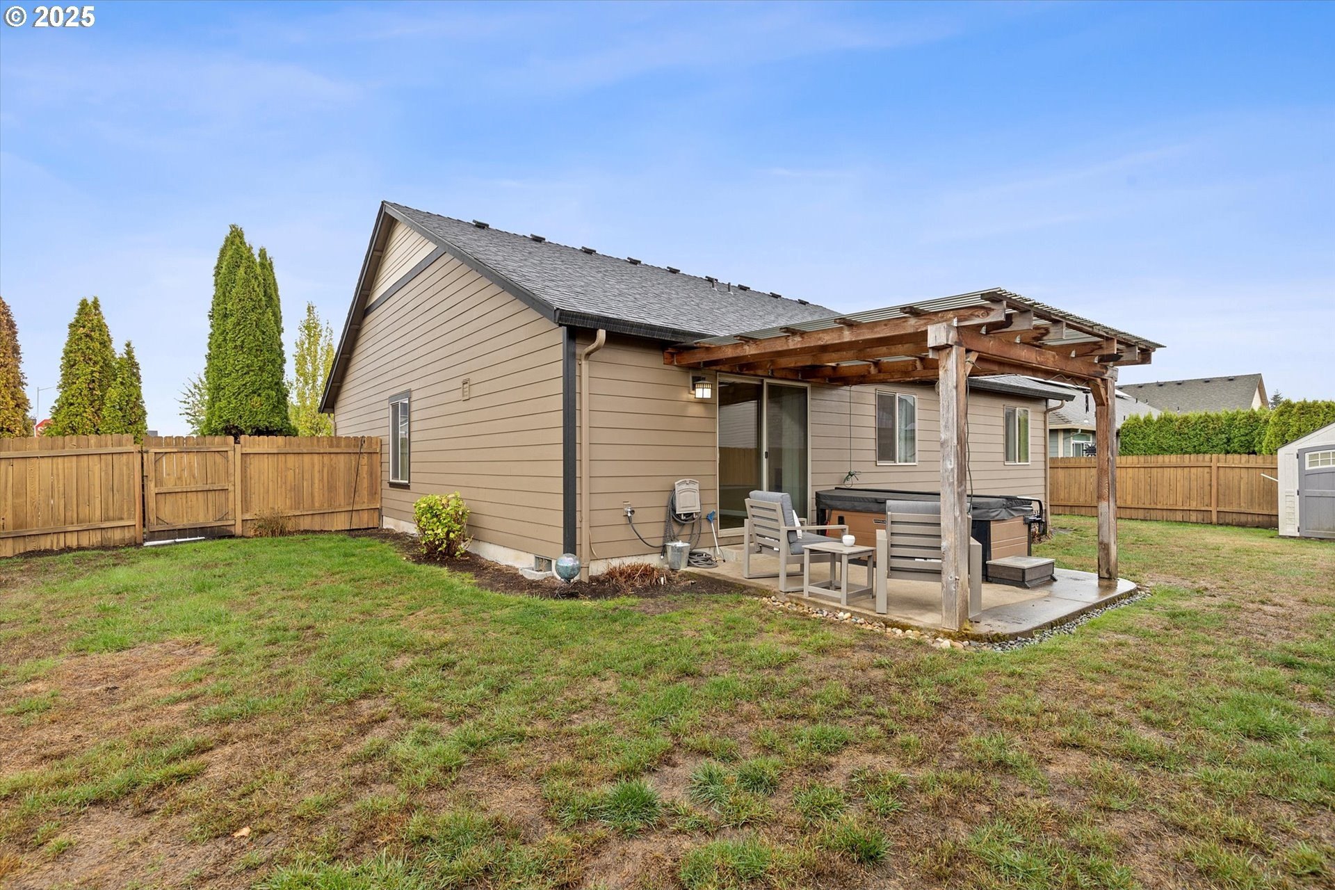 Inviting one level home on a corner lot in a quiet, well kept Carlton neighborhood. This home has an easy, comfortable feel with space for hobbies and relaxation. The 30-foot RV pad and extra-deep garage offer plenty of room for projects, parking, or storage. Inside, you’ll find laminate floors throughout the main living areas and bedrooms, vaulted ceilings that add openness to the living and dining rooms, and year round comfort with a heat pump and A/C. The kitchen features an eating bar and pantry, while the living area is pre-wired for surround sound. Thoughtful details include ceiling fans, extra insulation, and a fire suppression system. Enjoy the fenced backyard with its covered patio and hot tub, perfect for quiet evenings or time with friends. Experience the community feel and small town charm that make Carlton such a special place to call home
