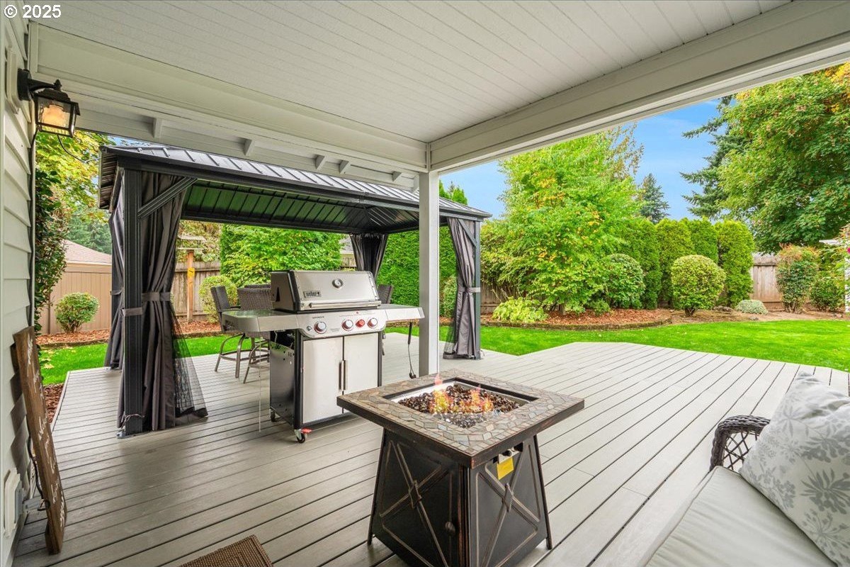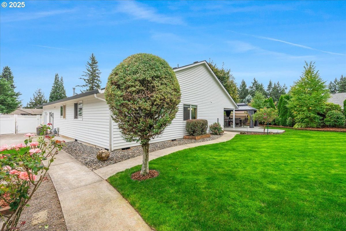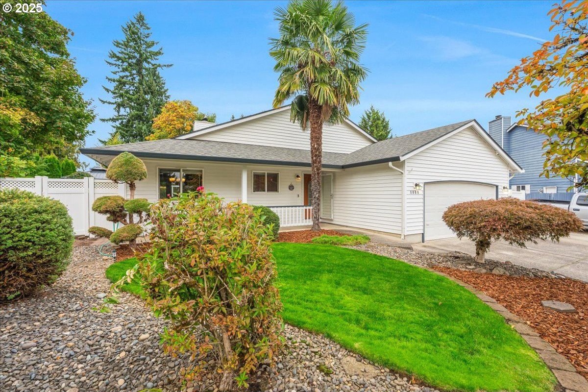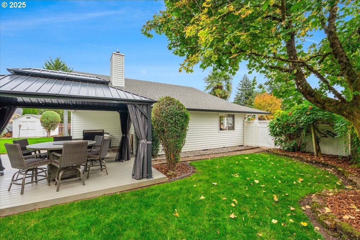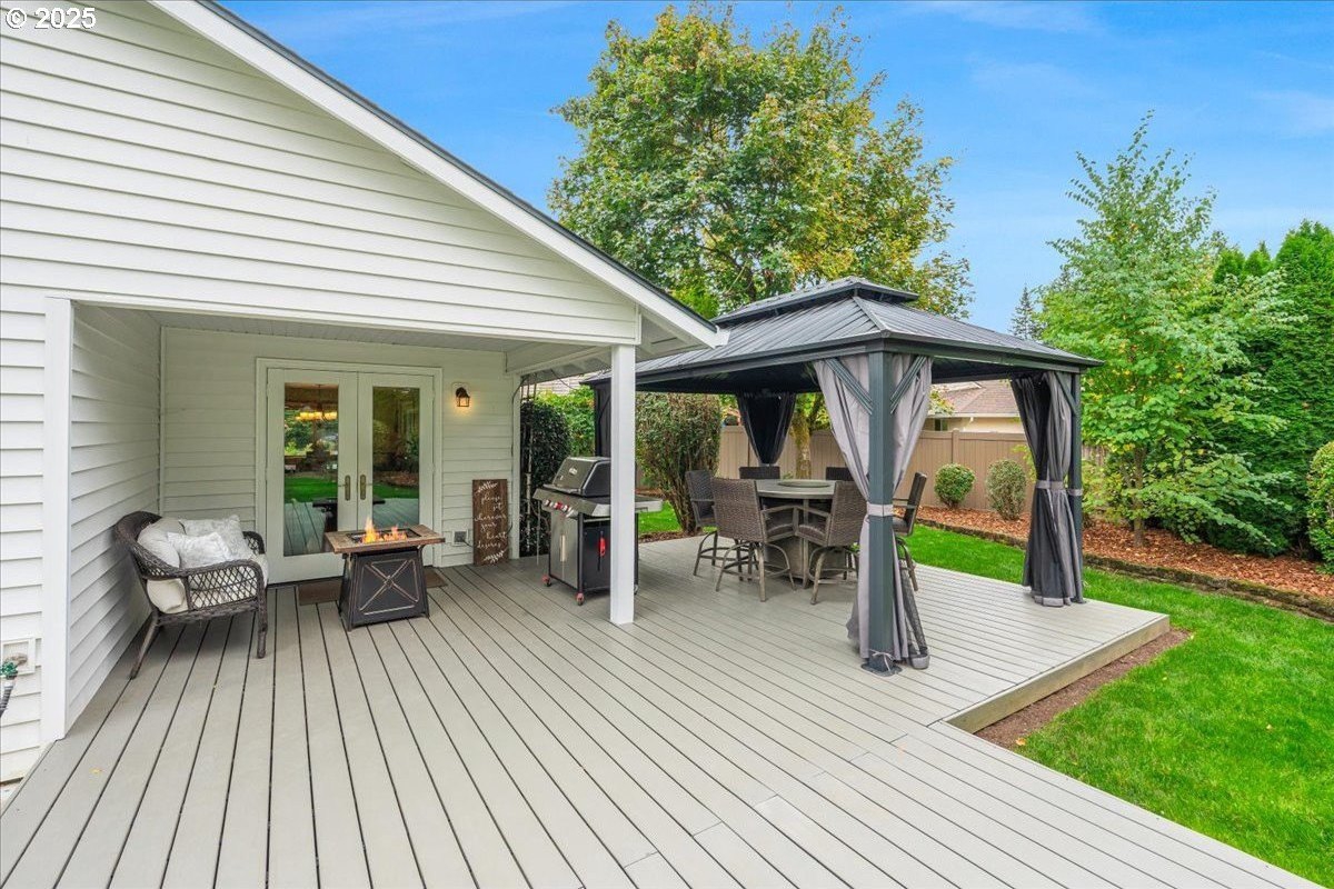 Immaculately Maintained Ranch with Modern Updates! This beautiful 3 bed, 2 bath home shows true pride of ownership. The updated kitchen includes quartz counters, tile backsplash, stainless steel appliances, and modern hardware. The open floor plan flows through the living and dining areas, with easy access through beautiful french doors to the covered composite deck and gazebo — perfect for entertaining. A large area of the home features updated laminate flooring, adding to the modern style. The primary bedroom has a walk-in closet with built-ins, while the bathroom includes a custom quartz countertop with double sinks and a gorgeous tiled shower with glass doors. The hall bathroom has been refreshed with updated vanity top, sink, and shower fixtures. Every detail in this home has been thoughtfully considered — from the interior upgrades, updated blinds, new shed roof, and beautiful landscaping. This home is truly move-in ready. Come see this exceptional property today!