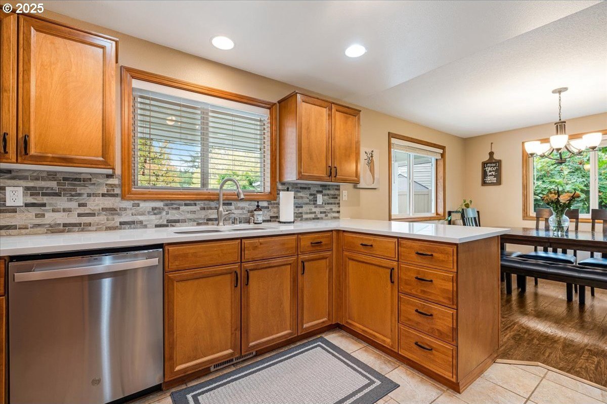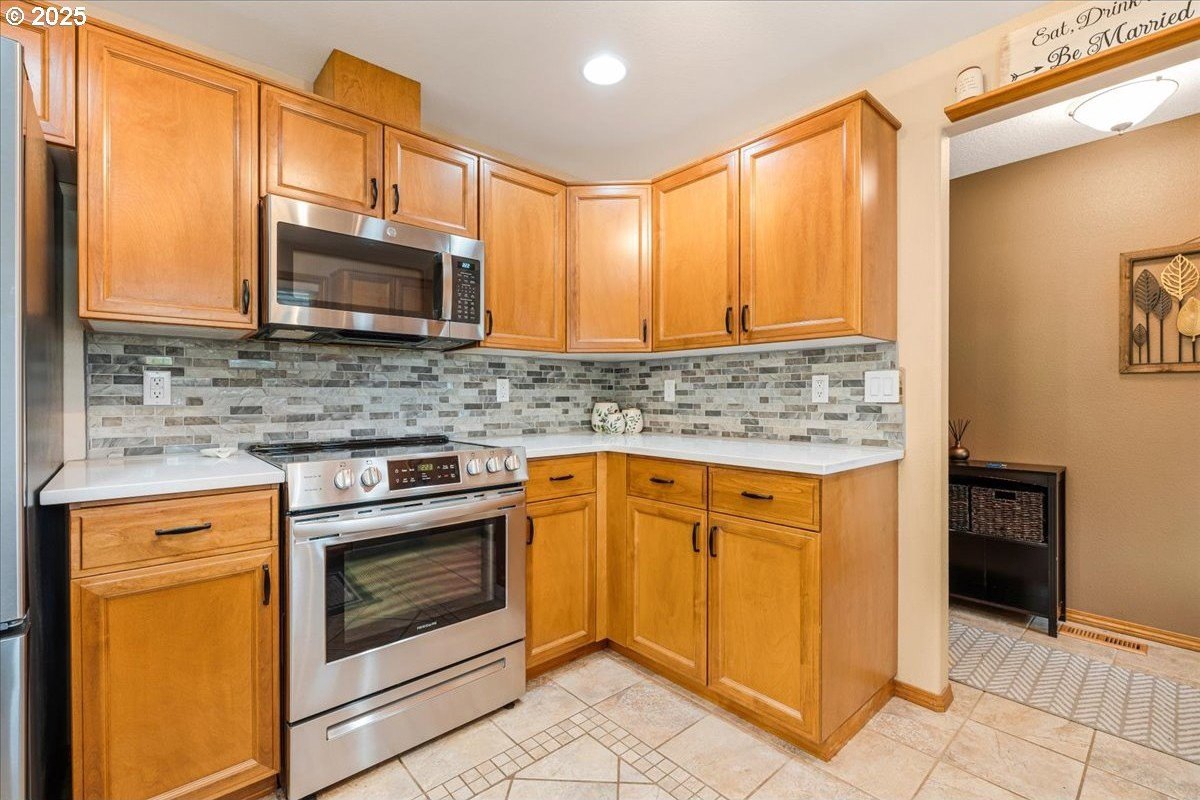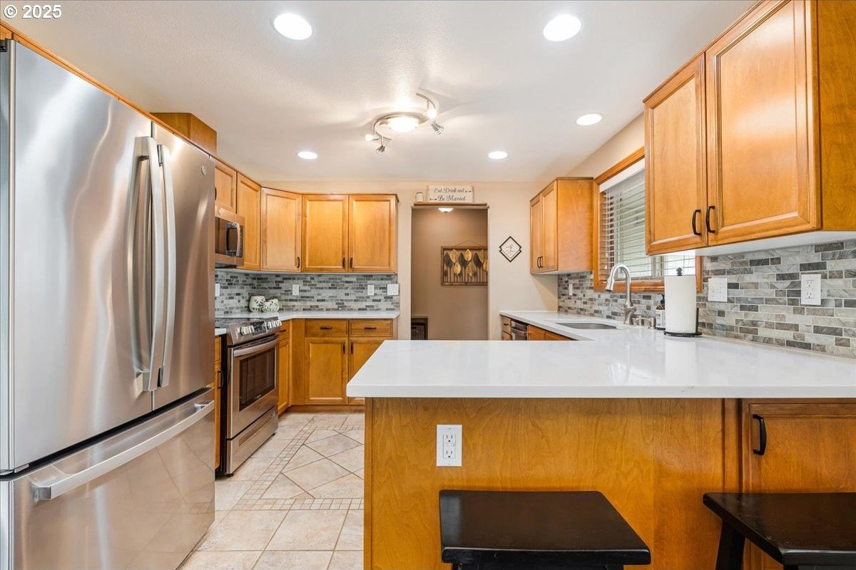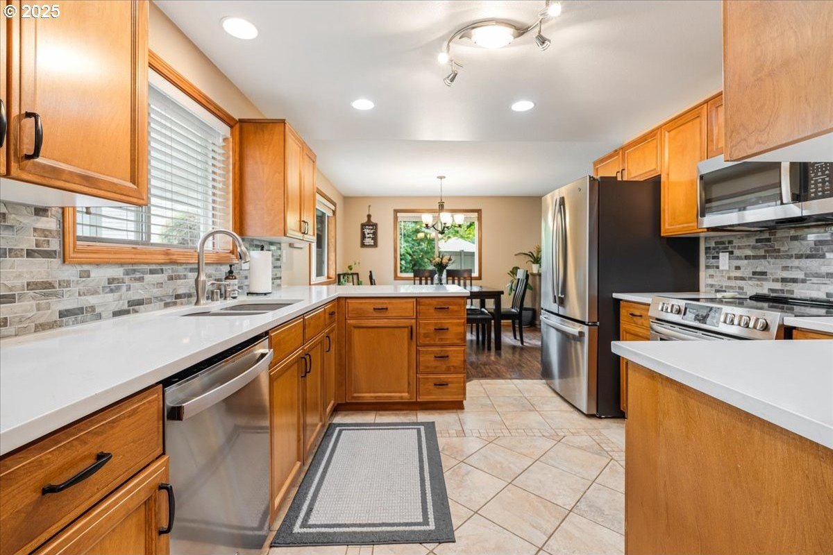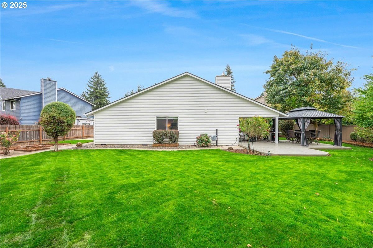 Immaculately Maintained Ranch with Modern Updates! This beautiful 3 bed, 2 bath home shows true pride of ownership. The updated kitchen includes quartz counters, tile backsplash, stainless steel appliances, and modern hardware. The open floor plan flows through the living and dining areas, with easy access through beautiful french doors to the covered composite deck and gazebo — perfect for entertaining. A large area of the home features updated laminate flooring, adding to the modern style. The primary bedroom has a walk-in closet with built-ins, while the bathroom includes a custom quartz countertop with double sinks and a gorgeous tiled shower with glass doors. The hall bathroom has been refreshed with updated vanity top, sink, and shower fixtures. Every detail in this home has been thoughtfully considered — from the interior upgrades, updated blinds, new shed roof, and beautiful landscaping. This home is truly move-in ready. Come see this exceptional property today!