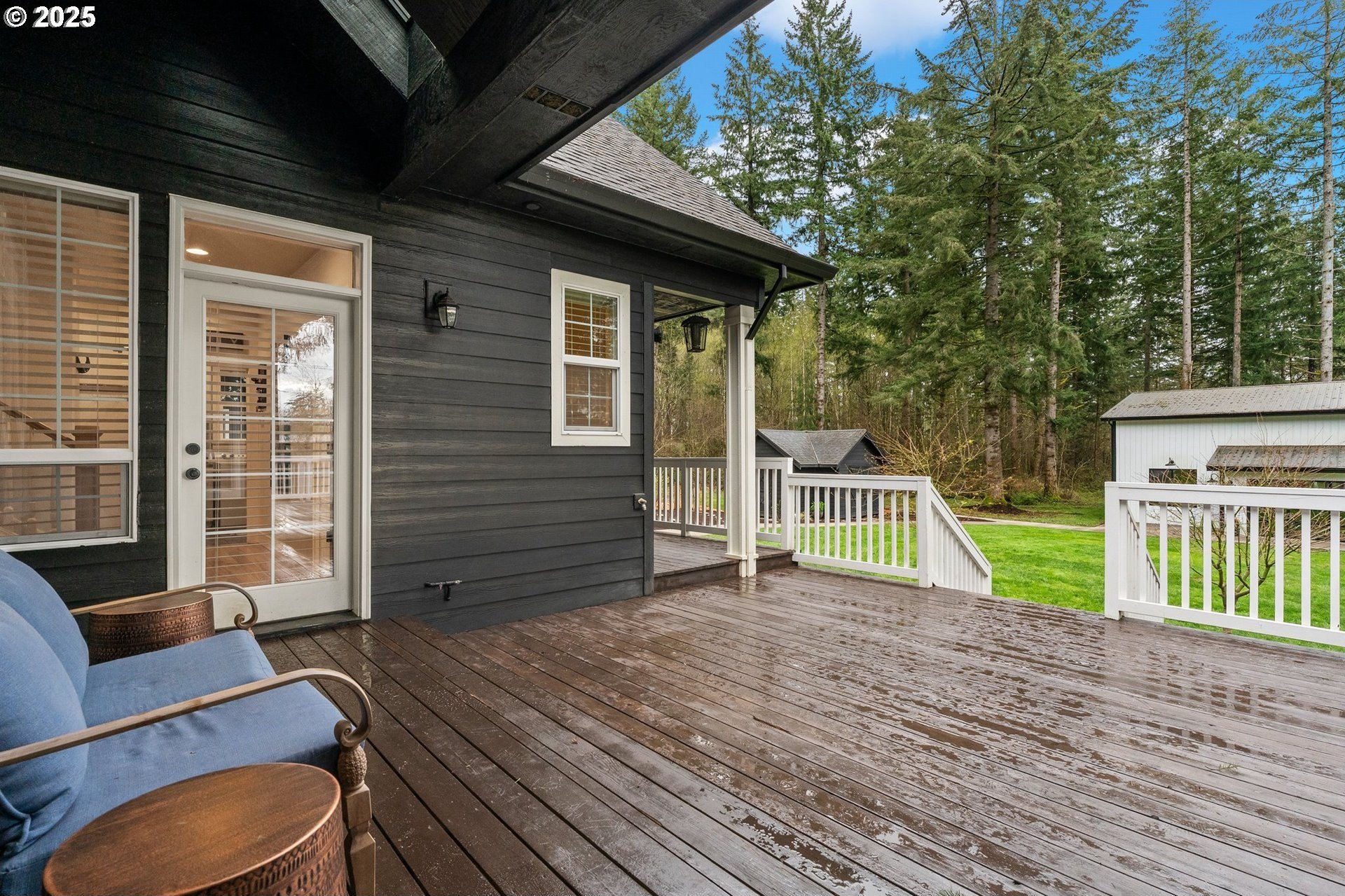 A rare blend of function,fexibility, and peaceful seclusion—this 4-bed (primary on main), 3.5-bath custom craftsman with extra bonus/media room & main foor executive office, sits on a private and flat stretch of land just minutes from downtown Battle Ground. Whether you're seeking a multi-use property, multi-generational living, or an unforgettable event setting, this one checks every box. The main home welcomes you with real hardwood floors, a stunning two-story stone fireplace, vaulted ceilings, and thoughtful upgrades throughout. The open-concept kitchen features granite countertops, high end stainless appliances, and plenty of space for gathering. Upstairs, a built-in library offers a quiet retreat or ideal workspace. Central vac, dual water heaters, instant hot water, and walk-in closets in every bedroom add comfort and convenience. The over-sized 6-car garage includes a fully equipped apartment above with soaring ceilings—perfect for extended guests, income potential, or flexible living. A newly built 2,880 SF barn/shop expands the possibilities even further. Out fitted with glass roll-up doors, a pellet stove, string lights, and wide-open space, it's ideal for indoor events, recreation, or creative work. Just behind the barn, there’s space to add parking or build to suit your needs. Outdoors, a large concrete patio surrounds an above-ground salt water pool that could be easily removed—unlocking seamless indoor/outdoor flow for weddings, re-treats, or private gatherings. A fire pit, raised garden beds, and a storage shed with chicken coop add both charm and functionality.With Starlink or CenturyLink internet, smart locks, and a long list of recent upgrades—from fresh interior and exterior paint to HVAC servicing and paved access—this home is truly move-in ready. No HOA, timber value po-tential, and room to roam—this is more than a home; it’s a lifestyle, and a foundation for whatever comes next.