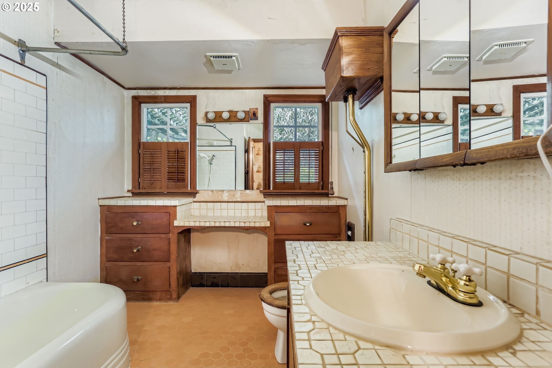 Timeless Eastmoreland opportunity. Built in 1937 and owned by the same family since 1971, this classic home is ready for its next chapter. Only the third owner since construction, the property has incredible potential for restoration and modernization.The home offers more than 3,300 sq ft with a floor plan that checks every box: a large living room with hardwood floors, arched openings, and a wood-burning fireplace; a formal dining room; and a vintage kitchen with an adjoining breakfast nook overlooking the tree-lined street. The main level includes a bedroom and full bath for guests or flexible living. Upstairs are three generously sized bedrooms, a full bath, and an office or bonus space—an ideal layout rarely found in homes of this era. The lower level adds a finished family room, laundry area, workshop, and additional bath.This home needs extensive updating but offers a solid structure, abundant natural light, and architectural character throughout. Situated in one of Portland’s most beloved neighborhoods, close to Berkeley Park, Eastmoreland Golf Course, and the shops and restaurants of Sellwood and Woodstock.