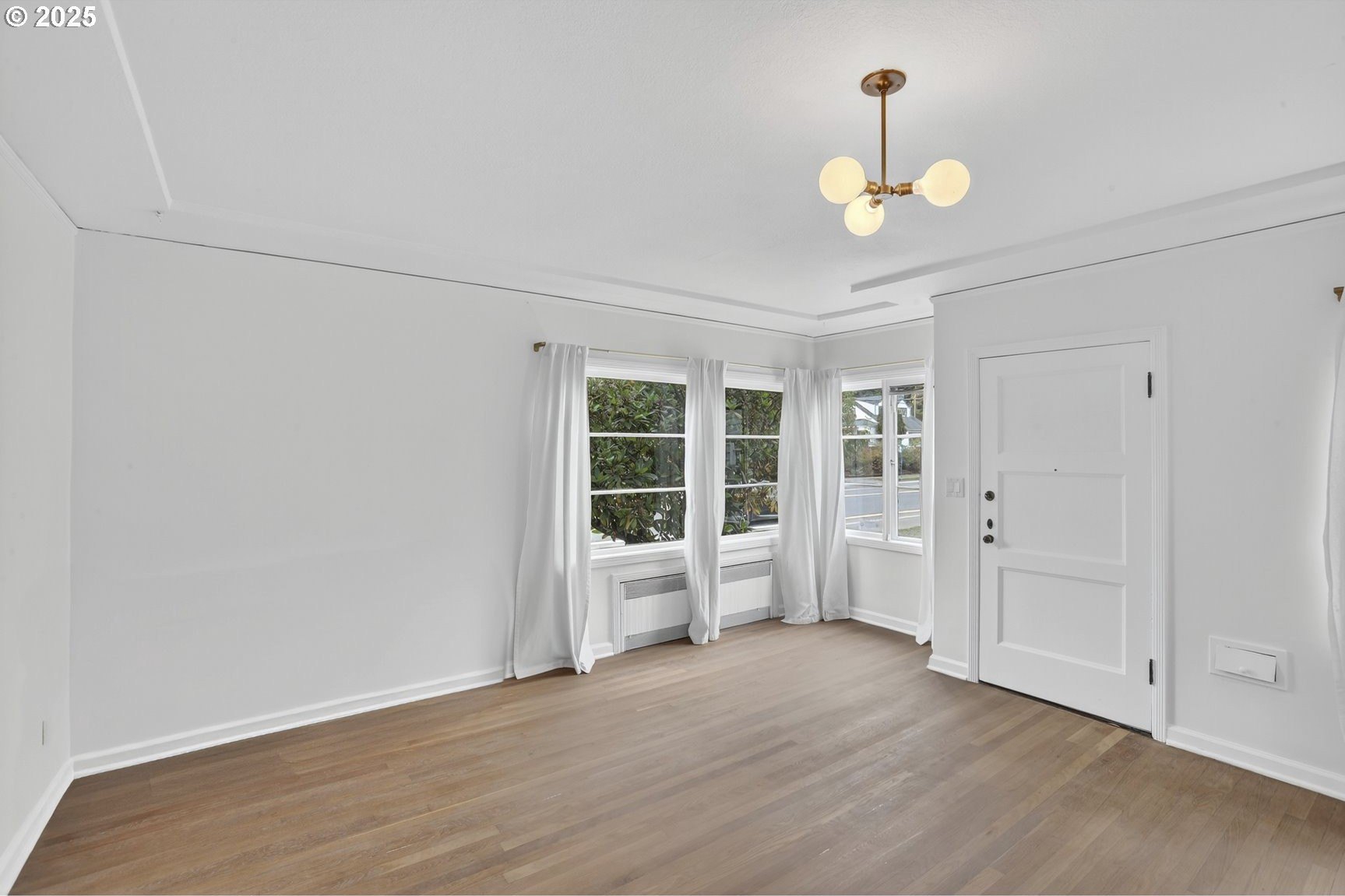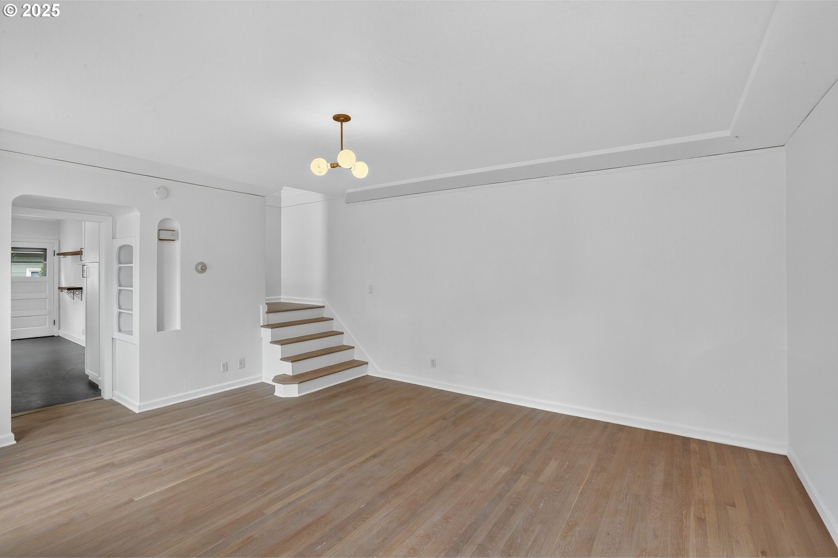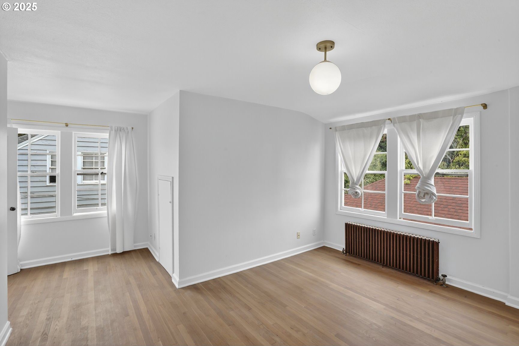 To say this end unit two story condo is charming is an understatement. The large living room is filled with natural light and period details such as, nooks, arches, charming picture rail, and gleaming hardwood floors (refinishing still in process-to be complete prior to closing). Moving through to the kitchen you'll find quality updates that are on trend with open shelving, high end appliances, an eat in kitchen nook and lots of clever storage. The bathroom has been remodeled to feature fabulous floor tile, wood countertop with wood shelf below and the star of the show which is the concrete vessel sink & mirror mounted wall sconces. Heading upstairs there is generous space at the top of the landing for a piece of furniture. The bedroom features two closets, Lots of windows, and space for a desk or dresser. A dedicated extra deep garage comes with the home and has a long driveway for extra parking. The common area features a workout room and a dedicated storage unit. The HOA fees cover more than your typical water, sewer garbage. The HOA fees also includes: Hot Water, Heat, Landscaping, and Weight Room. THE HOA FEE IS SCHEDULED TO LOWER TO $356/MONTH IN AUGUST 2026. (Temporarily raised to enhance reserve fund). This gorgeous condo is where period charm meets contemporary updates in a fantastic location across from the beautiful Peninsula Park Rose Garden.