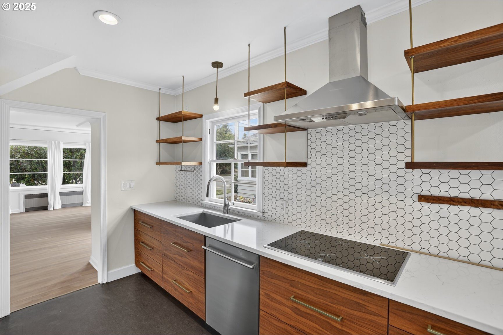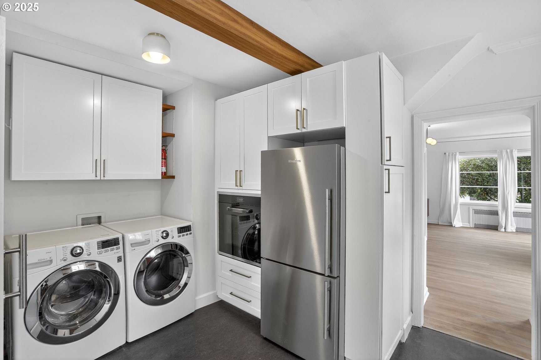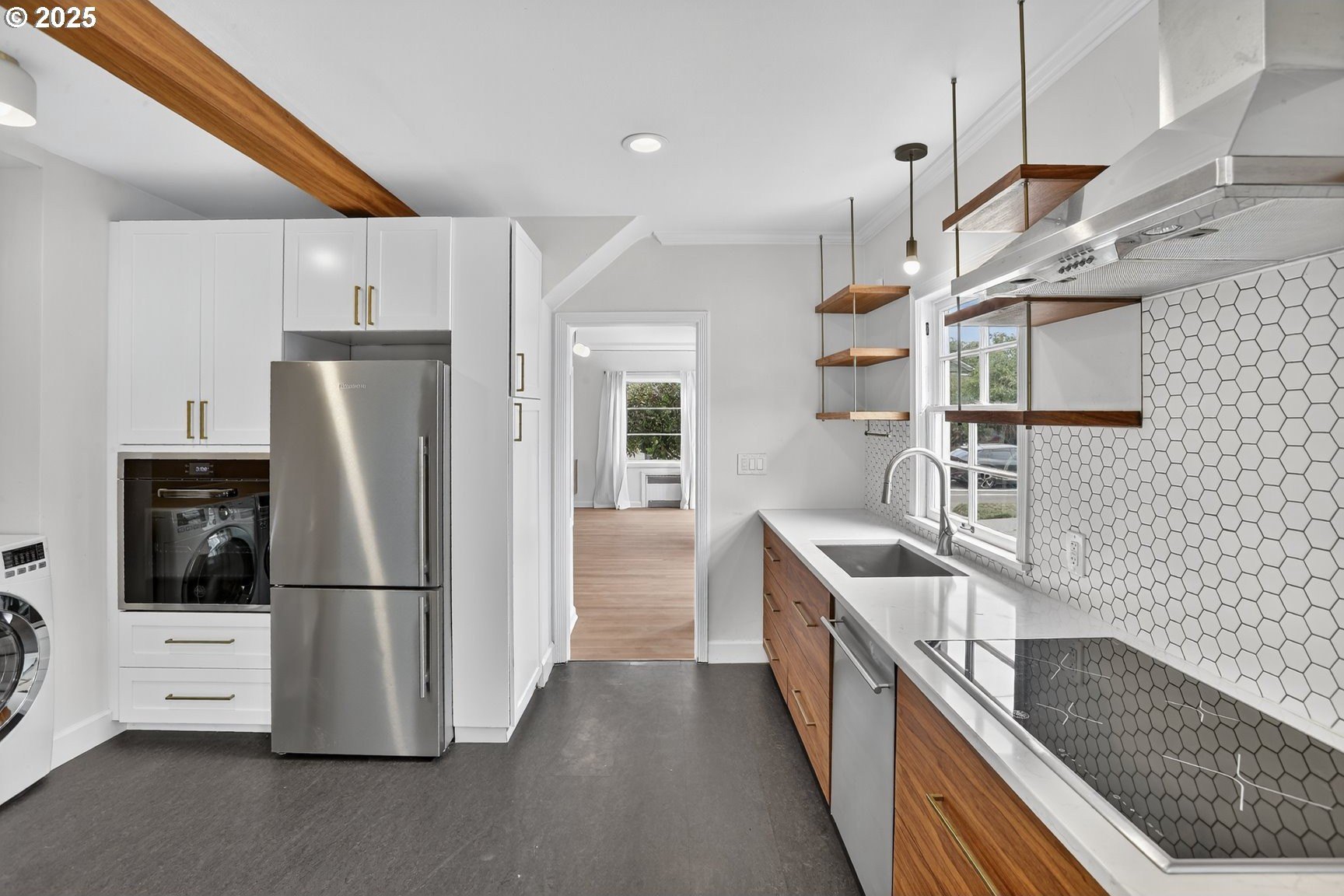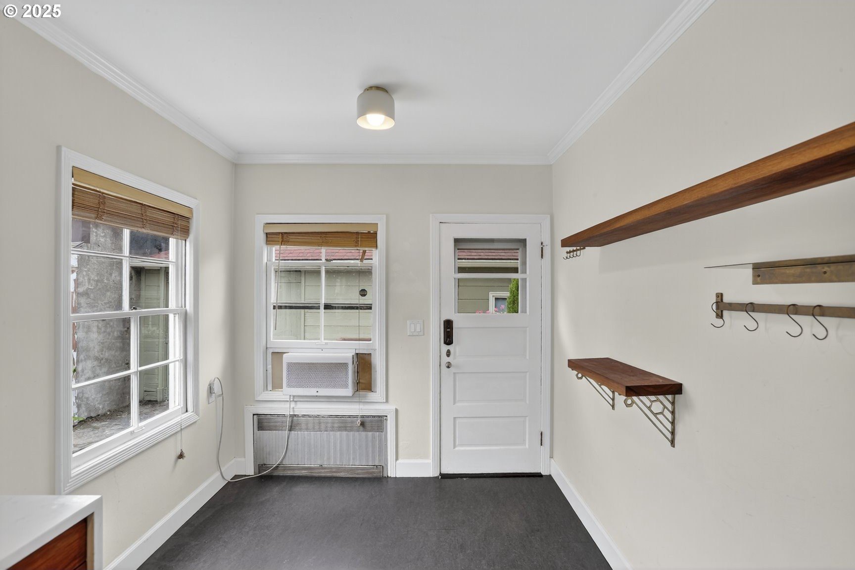 To say this end unit two story condo is charming is an understatement. The large living room is filled with natural light and period details such as, nooks, arches, charming picture rail, and gleaming hardwood floors (refinishing still in process-to be complete prior to closing). Moving through to the kitchen you'll find quality updates that are on trend with open shelving, high end appliances, an eat in kitchen nook and lots of clever storage. The bathroom has been remodeled to feature fabulous floor tile, wood countertop with wood shelf below and the star of the show which is the concrete vessel sink & mirror mounted wall sconces. Heading upstairs there is generous space at the top of the landing for a piece of furniture. The bedroom features two closets, Lots of windows, and space for a desk or dresser. A dedicated extra deep garage comes with the home and has a long driveway for extra parking. The common area features a workout room and a dedicated storage unit. The HOA fees cover more than your typical water, sewer garbage. The HOA fees also includes: Hot Water, Heat, Landscaping, and Weight Room. THE HOA FEE IS SCHEDULED TO LOWER TO $356/MONTH IN AUGUST 2026. (Temporarily raised to enhance reserve fund). This gorgeous condo is where period charm meets contemporary updates in a fantastic location across from the beautiful Peninsula Park Rose Garden.