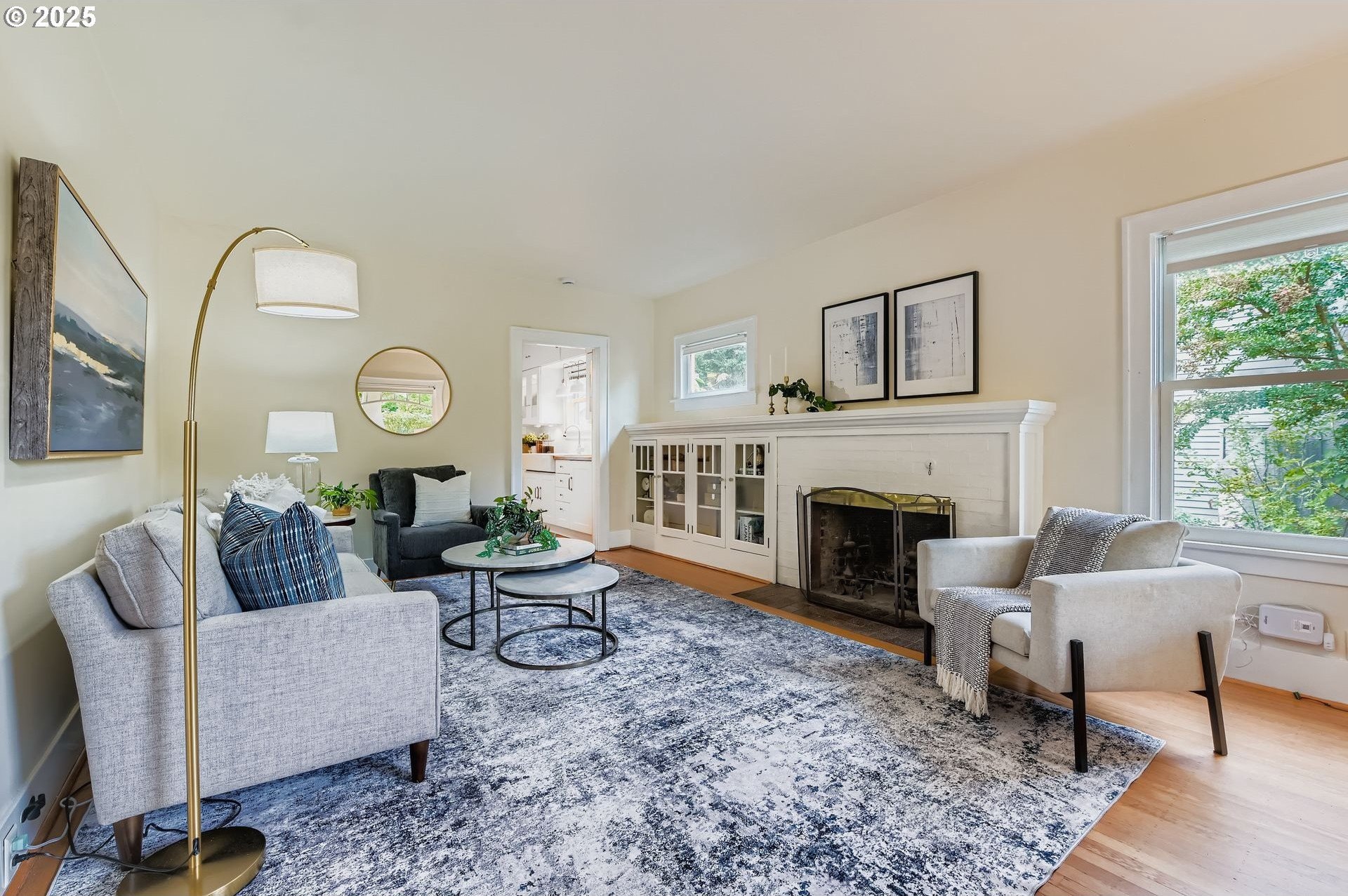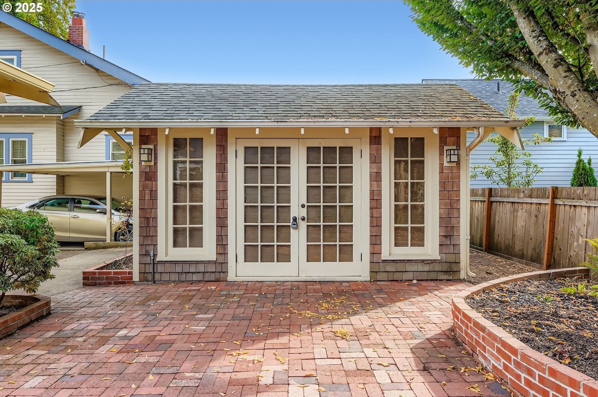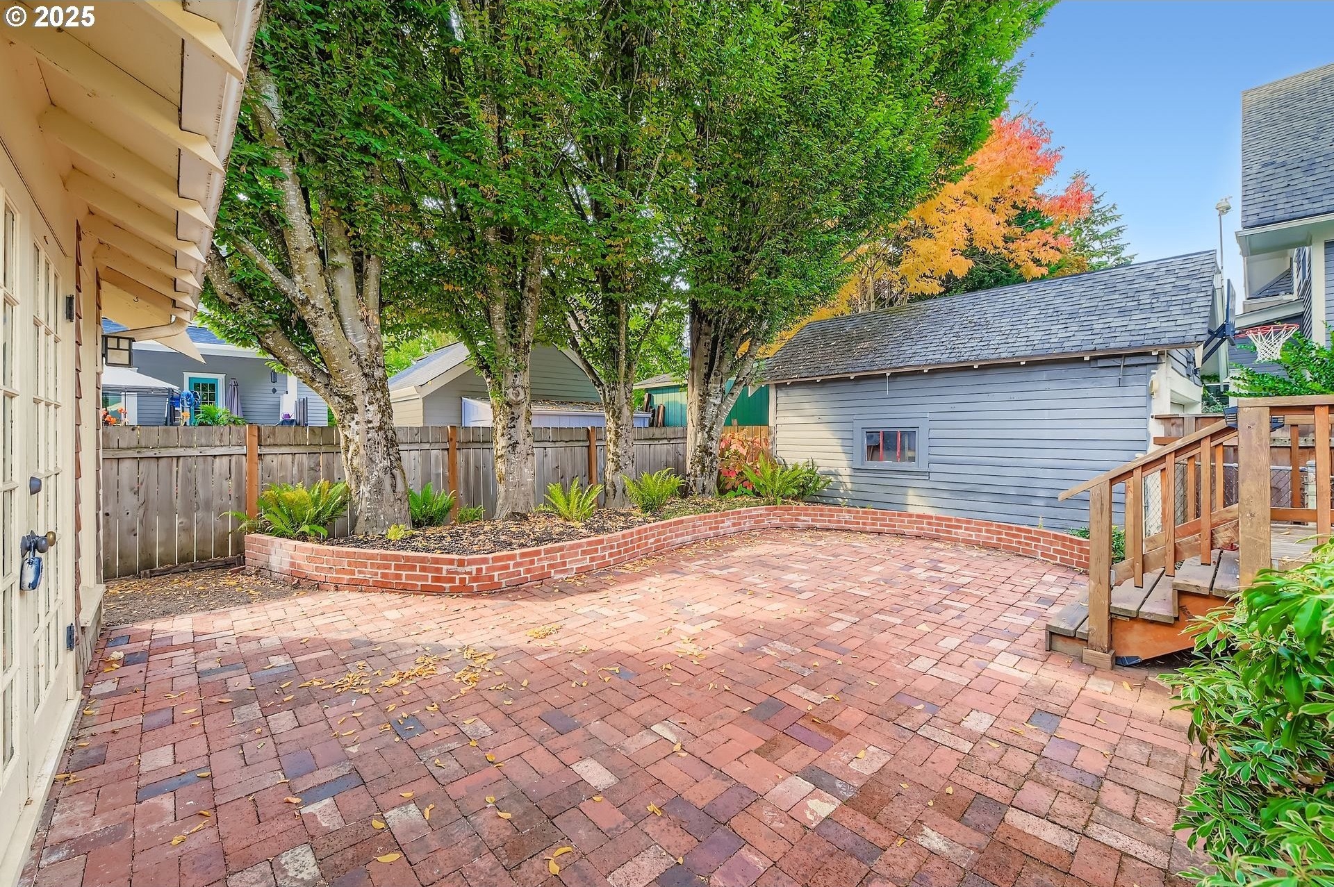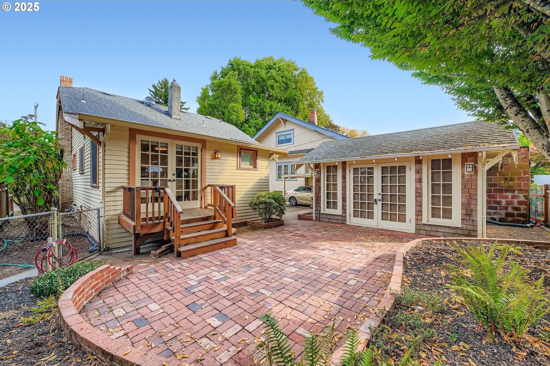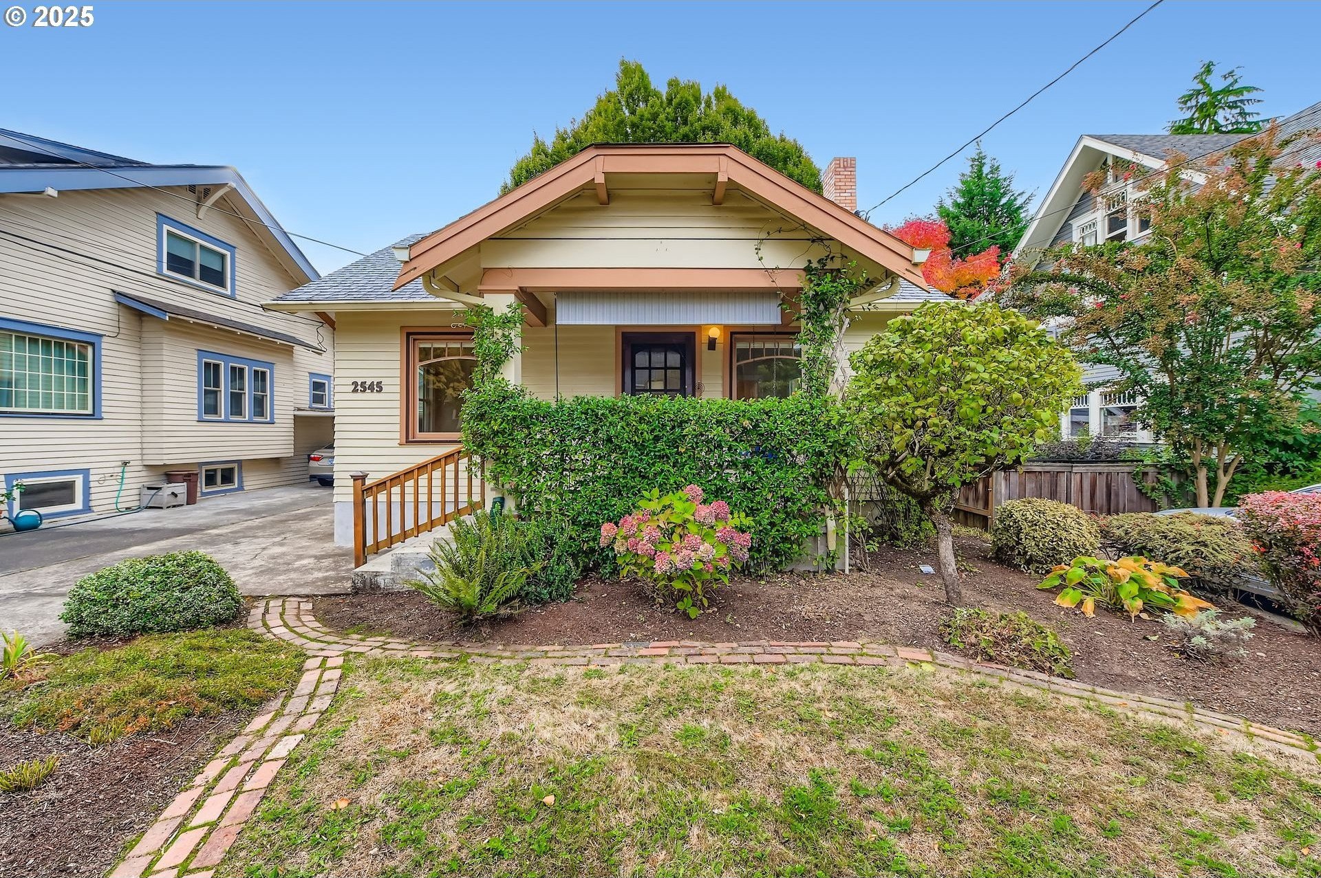 Tucked into one of Northeast Portland’s most picturesque neighborhoods, this 1925 Bungalow captures the best of Portland charm and community. The tree-lined streets, top-rated schools, and proximity to local favorite hotspots make everyday living feel effortlessly connected.Inside, the home is warm and inviting, with sun-filled rooms, original hardwood floors, and a classic brick fireplace surrounded by built-ins. The kitchen blends modern functionality with vintage character, featuring butcher-block counters, open shelving, and a farmhouse sink that anchors the space. A cheerful dining nook opens through French doors to a private courtyard—perfect for morning coffee or intimate outdoor dinners.Each of the three bedrooms is thoughtfully placed on its own level, offering comfort and separation of space. The upper floor provides a cozy hideaway under vaulted ceilings, while the main level bedroom sits adjacent to a tastefully remodeled bath with designer tile and black-framed shower glass. The finished lower level includes a spacious bedroom, sitting area, kitchenette, and full bath—ideal for guests, multi-generational living, or creative use.A detached studio with vaulted ceilings and skylights completes the picture, offering endless flexibility for a home office, art space, or gym. Just minutes to Beaumont Village, Grant Park, and local schools, this home combines timeless design with the heart of Portland’s beloved eastside lifestyle.