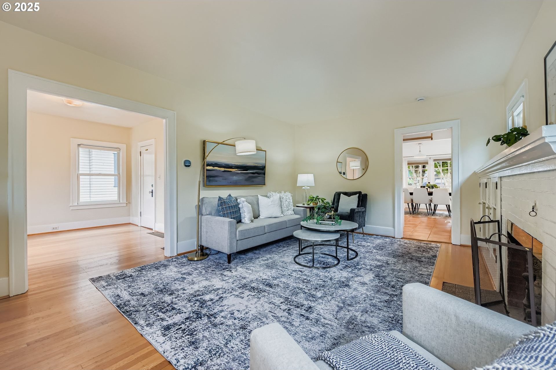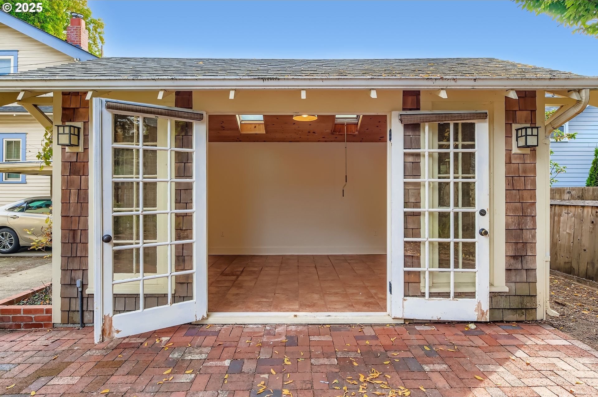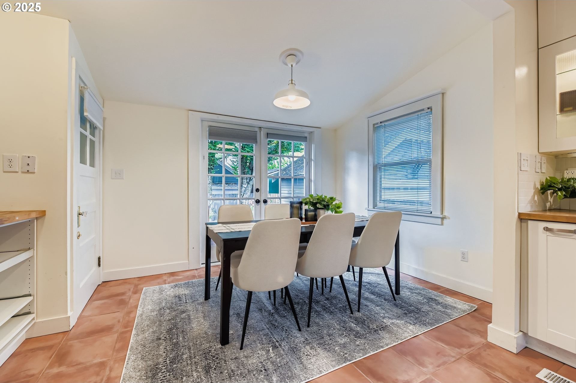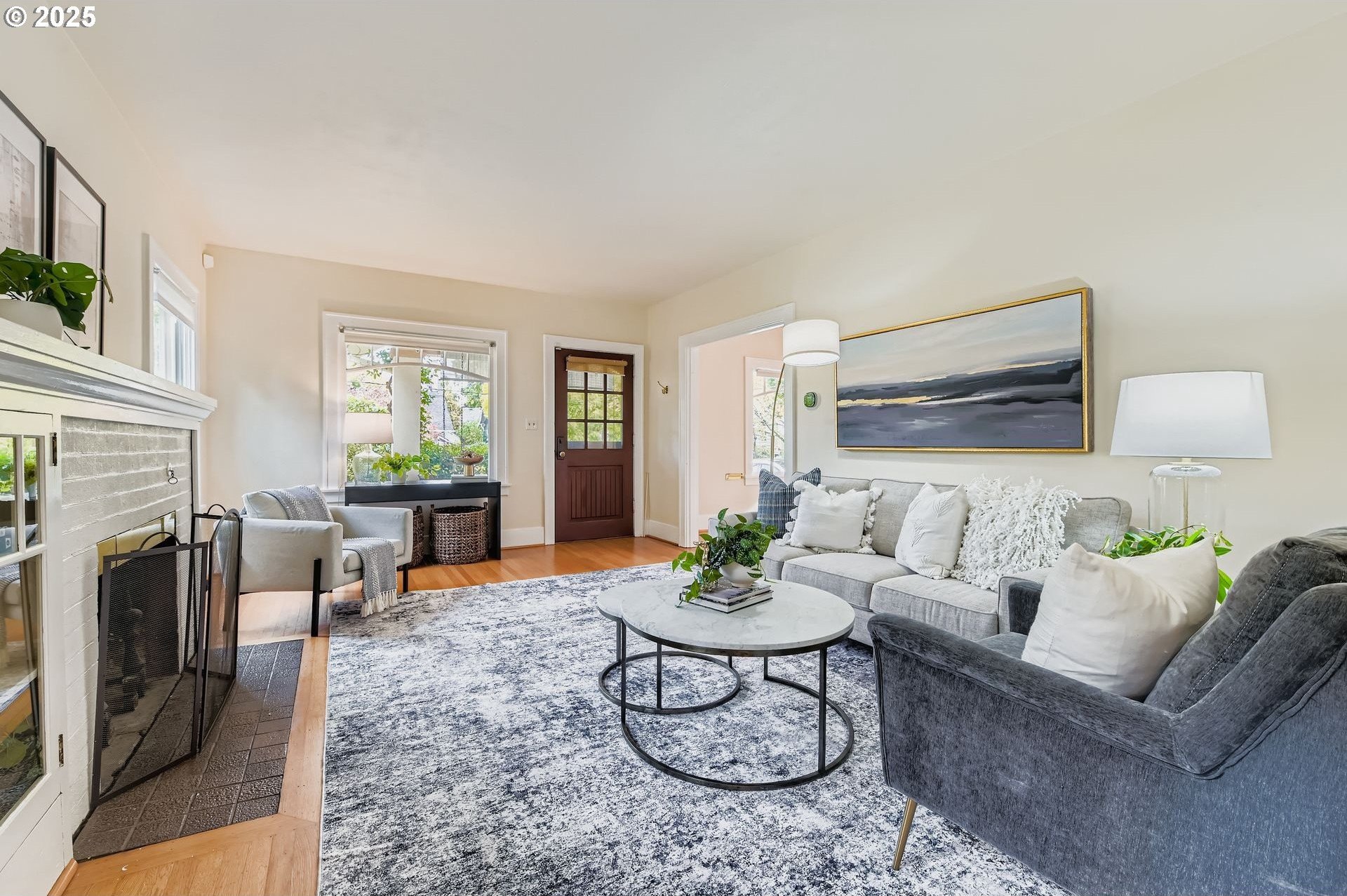 Tucked into one of Northeast Portland’s most picturesque neighborhoods, this 1925 Bungalow captures the best of Portland charm and community. The tree-lined streets, top-rated schools, and proximity to local favorite hotspots make everyday living feel effortlessly connected.Inside, the home is warm and inviting, with sun-filled rooms, original hardwood floors, and a classic brick fireplace surrounded by built-ins. The kitchen blends modern functionality with vintage character, featuring butcher-block counters, open shelving, and a farmhouse sink that anchors the space. A cheerful dining nook opens through French doors to a private courtyard—perfect for morning coffee or intimate outdoor dinners.Each of the three bedrooms is thoughtfully placed on its own level, offering comfort and separation of space. The upper floor provides a cozy hideaway under vaulted ceilings, while the main level bedroom sits adjacent to a tastefully remodeled bath with designer tile and black-framed shower glass. The finished lower level includes a spacious bedroom, sitting area, kitchenette, and full bath—ideal for guests, multi-generational living, or creative use.A detached studio with vaulted ceilings and skylights completes the picture, offering endless flexibility for a home office, art space, or gym. Just minutes to Beaumont Village, Grant Park, and local schools, this home combines timeless design with the heart of Portland’s beloved eastside lifestyle.