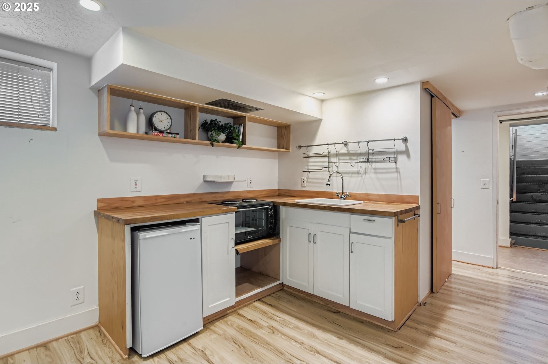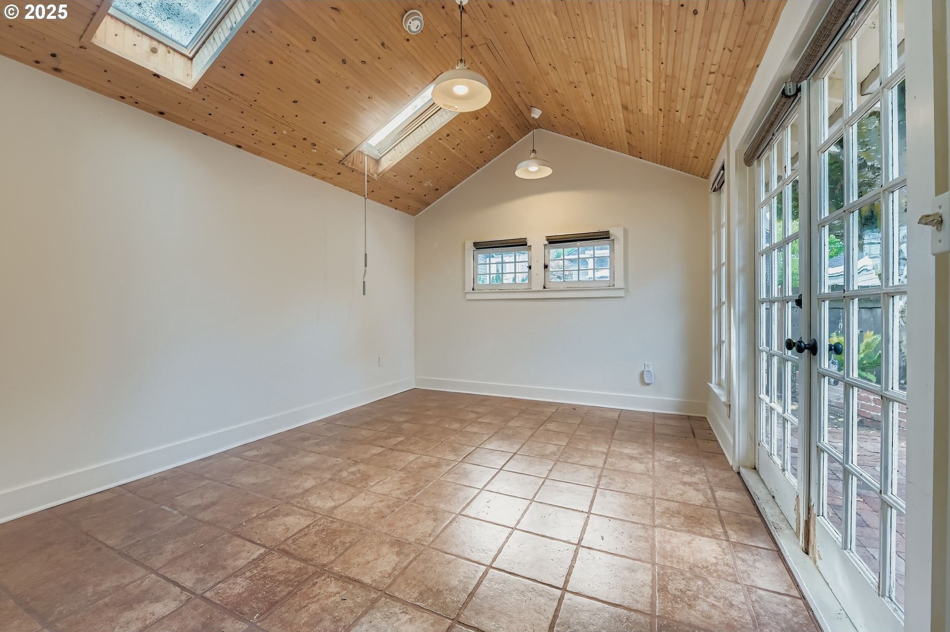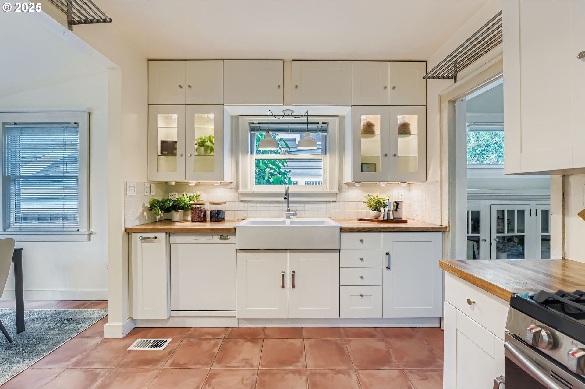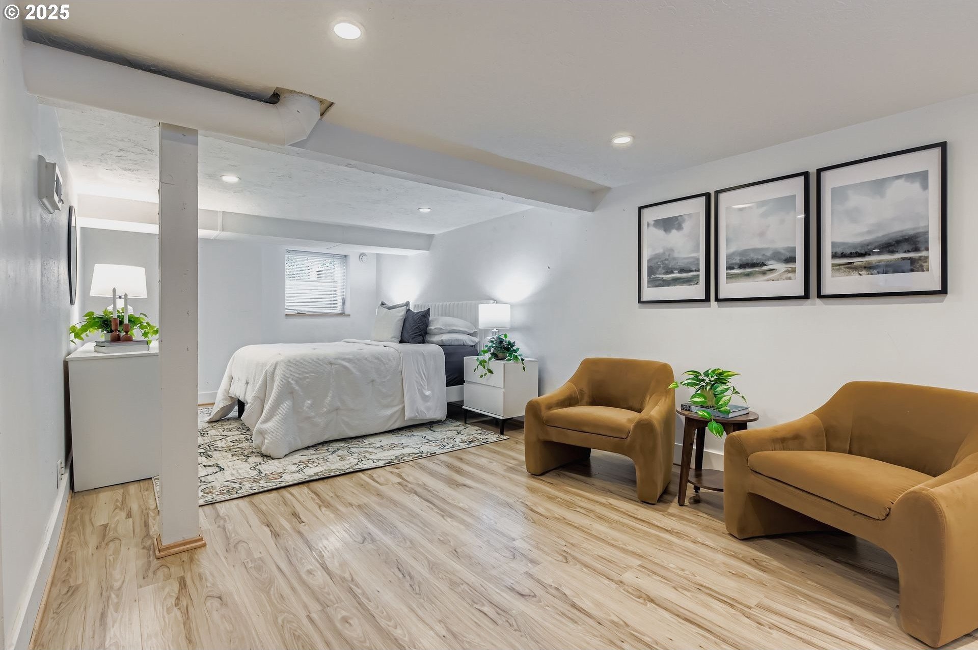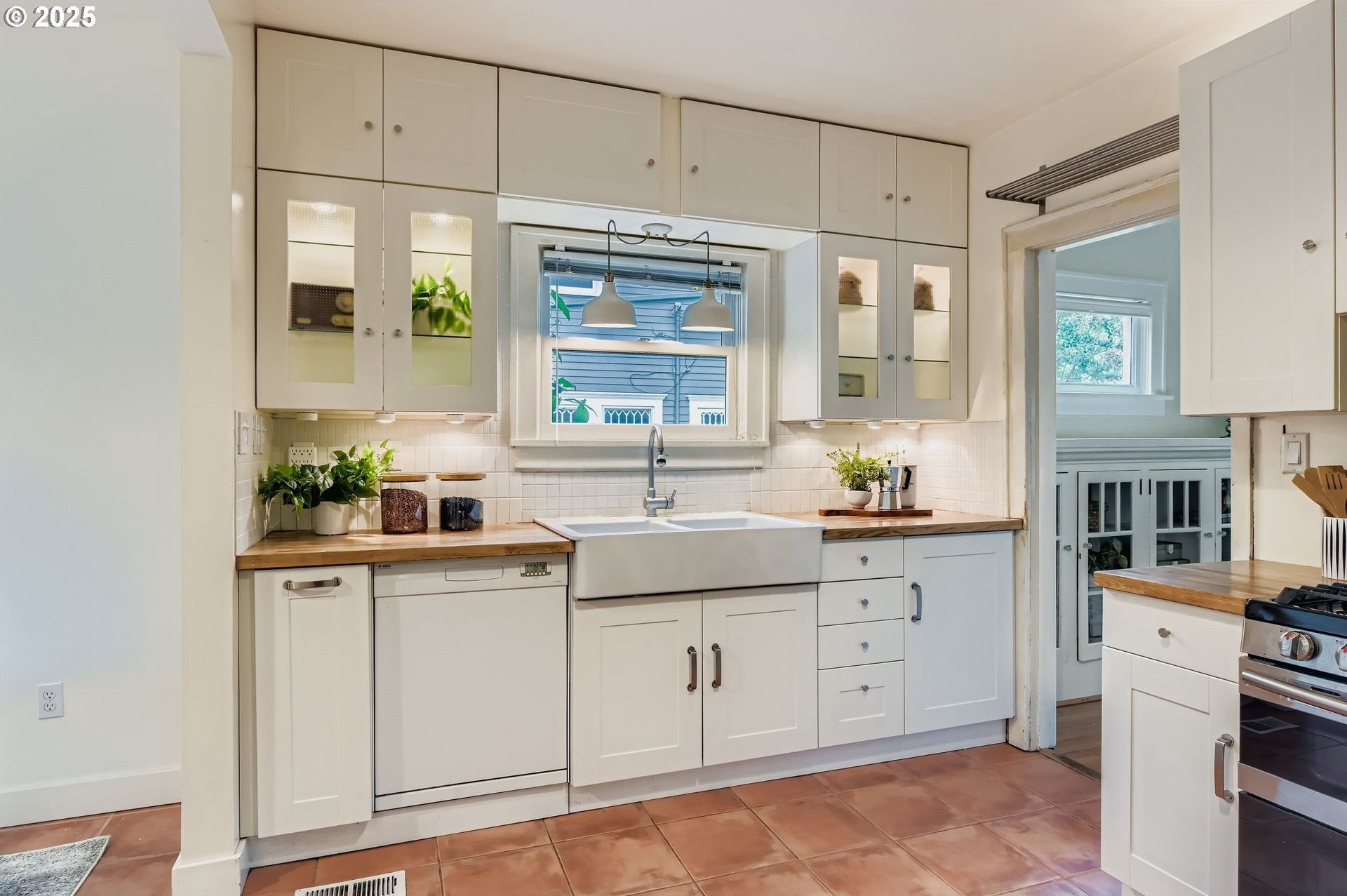 Tucked into one of Northeast Portland’s most picturesque neighborhoods, this 1925 Bungalow captures the best of Portland charm and community. The tree-lined streets, top-rated schools, and proximity to local favorite hotspots make everyday living feel effortlessly connected.Inside, the home is warm and inviting, with sun-filled rooms, original hardwood floors, and a classic brick fireplace surrounded by built-ins. The kitchen blends modern functionality with vintage character, featuring butcher-block counters, open shelving, and a farmhouse sink that anchors the space. A cheerful dining nook opens through French doors to a private courtyard—perfect for morning coffee or intimate outdoor dinners.Each of the three bedrooms is thoughtfully placed on its own level, offering comfort and separation of space. The upper floor provides a cozy hideaway under vaulted ceilings, while the main level bedroom sits adjacent to a tastefully remodeled bath with designer tile and black-framed shower glass. The finished lower level includes a spacious bedroom, sitting area, kitchenette, and full bath—ideal for guests, multi-generational living, or creative use.A detached studio with vaulted ceilings and skylights completes the picture, offering endless flexibility for a home office, art space, or gym. Just minutes to Beaumont Village, Grant Park, and local schools, this home combines timeless design with the heart of Portland’s beloved eastside lifestyle.