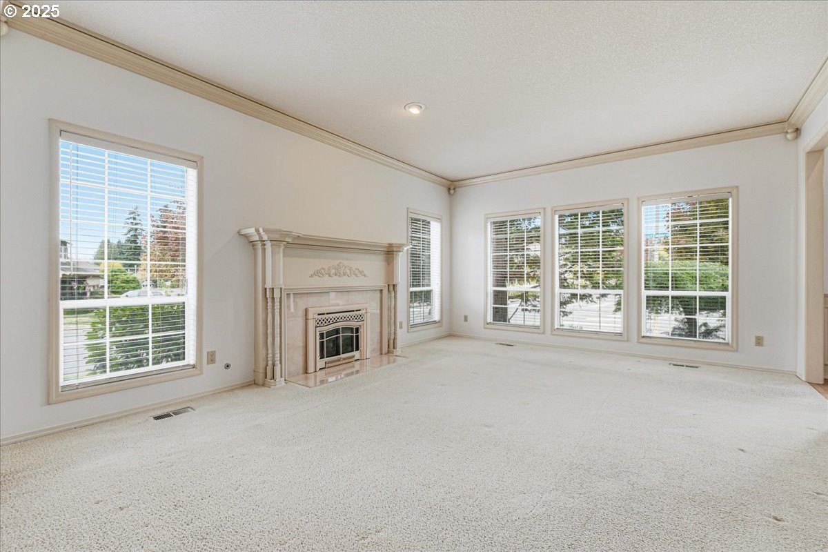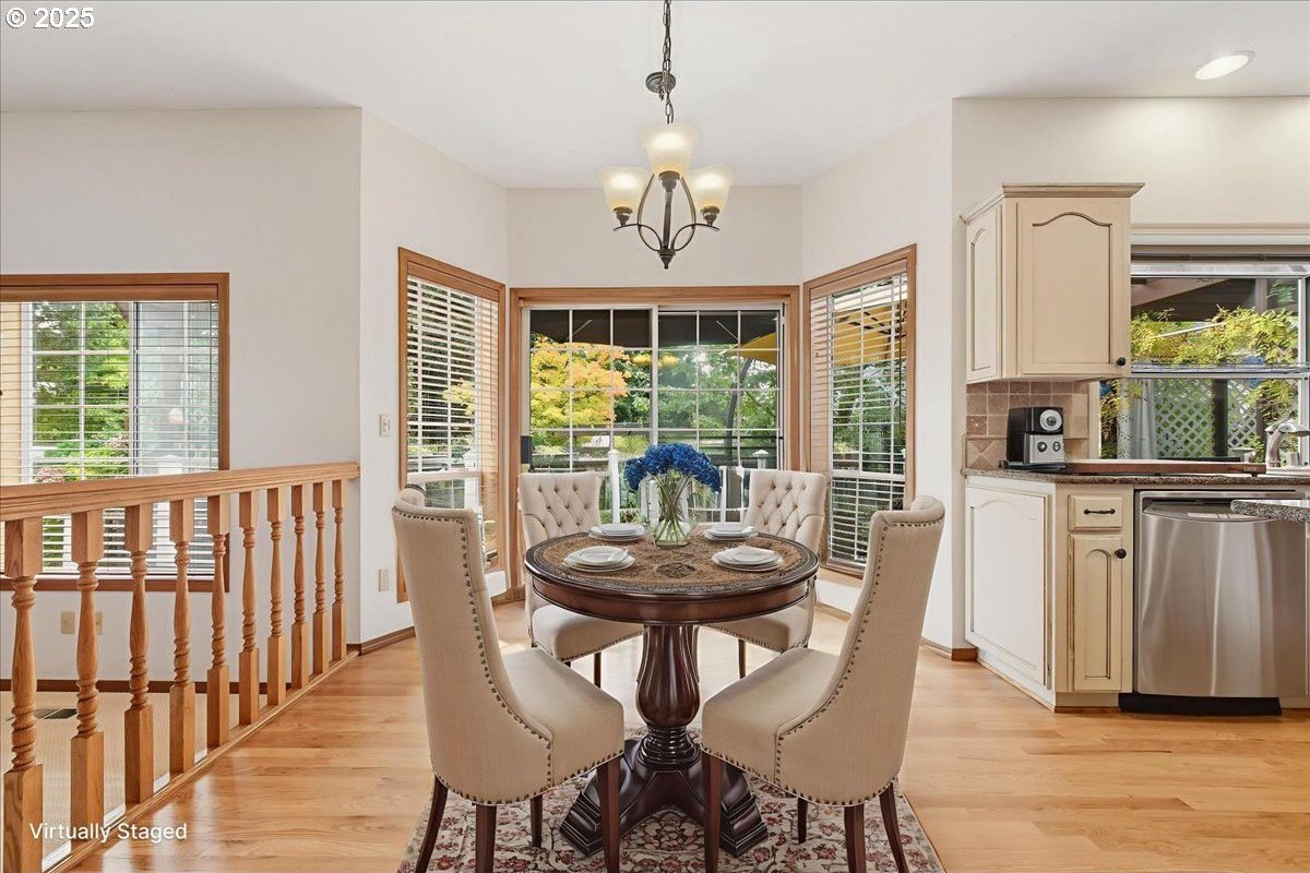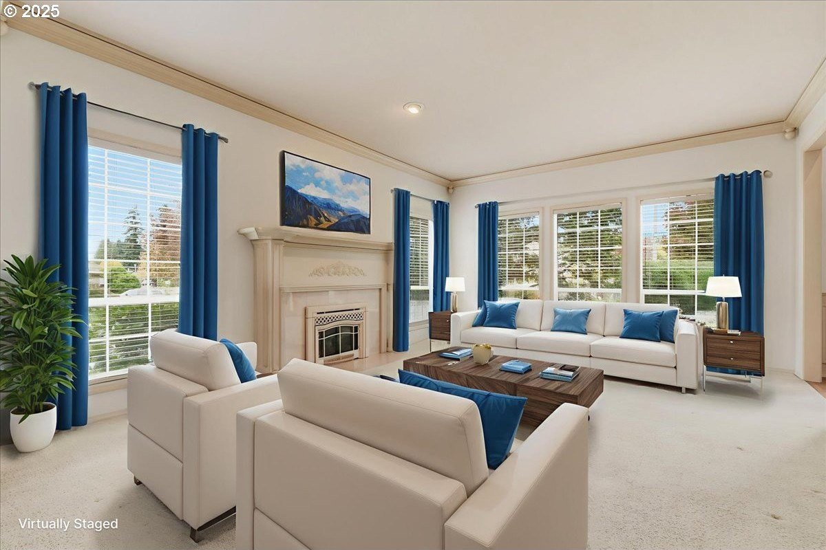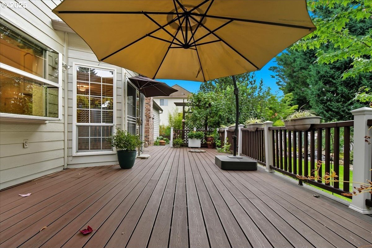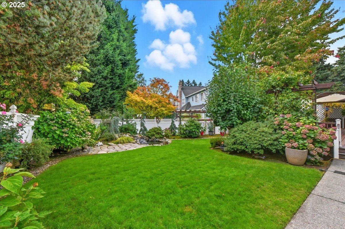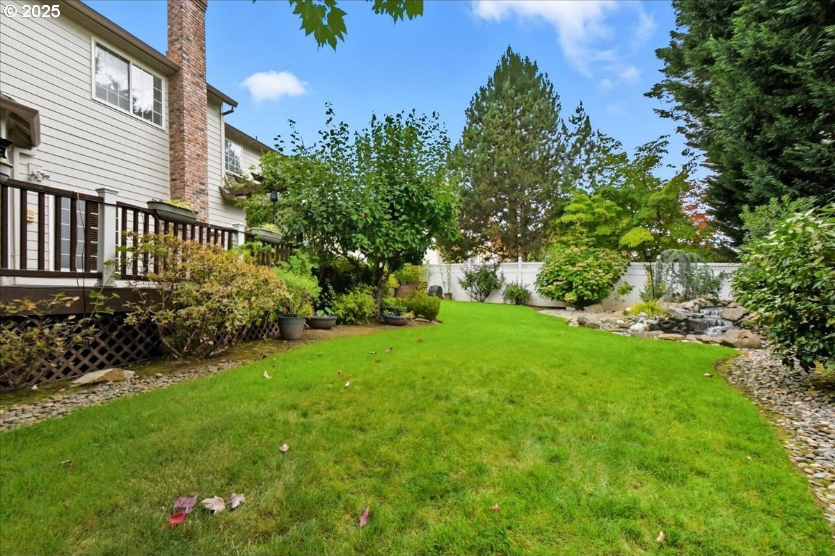 Classic, traditional home on 1/4 acre, corner lot, located in highly sought after Village at Fishers Landing neighborhood. Desirable floor plan meets everyone's needs with 4 spacious bedrooms, oversized upstairs bonus room, and main level den (could be bedroom) with adjacent full bath. As you enter the home you'll be impressed with the dramatic 2 story foyer and open-rail staircase that leads to the 2nd floor. 9' ceilings on the main level and numerous large picture windows make the home feel open, and allow for lots of natural light. The formal living room features beautiful crown moulding and a gas fireplace. You'll enjoy entertaining in the grand, formal dining room, that is graced with wainscoting and French doors open to an expansive covered deck. Gourmet kitchen was remodeled in 2010 and features an abundance of cabinets and counter space, two pantry closets, island with breakfast bar and gas downdraft range, stainless steel appliances, slab granite counters, and spacious informal dining area with a slider to the deck. Floor-to-ceiling wall of built-in bookcases and cozy gas fireplace with hearth anchor the family room. King-sized, vaulted primary bedroom won't disappoint you with remodeled bath featuring heated tile flooring, soaking tub, sauna, water closet with tiled shower, and walk-in closet. Two skylights give the bonus room lots of natural light and it would make an ideal hobby/craft room, office, or play room. Expansive deck in the back yard is a great place to unwind and enjoy the beautifully landscaped grounds and listen to the sounds from the gorgeous water feature with a pond and private patio. Low maintenance composite deck with wrought-iron railing, and covered gazebo. Oversized concrete RV pad is hidden behind the white vinyl fence with large gate and easy access to the garage. Convenient concrete walkway extends from the deck in the backyard to the side yard where you'll find the raised garden beds, raspberries, and garden shed.