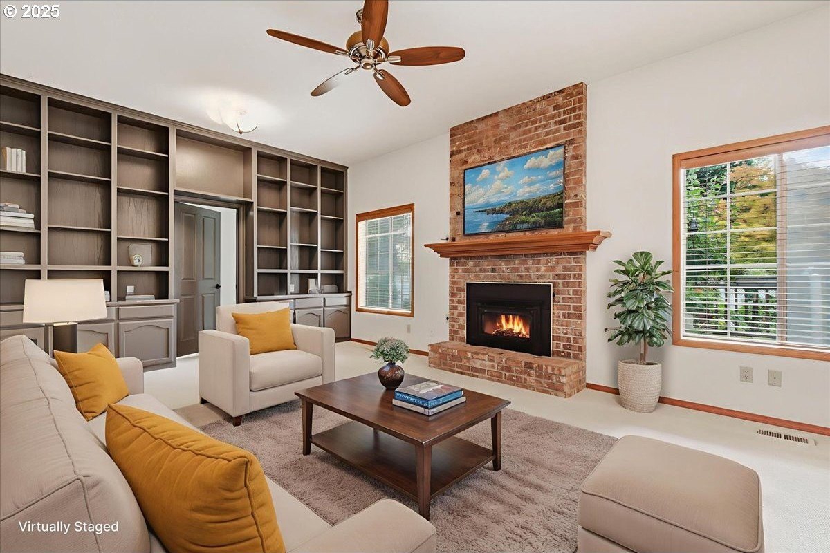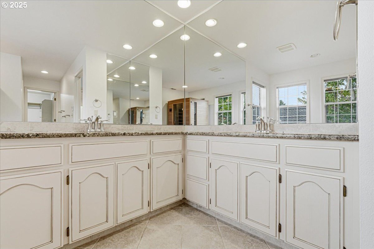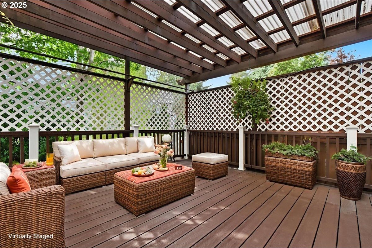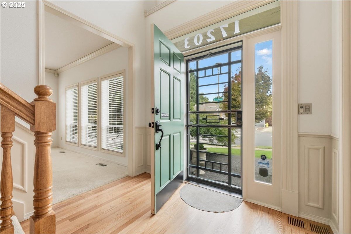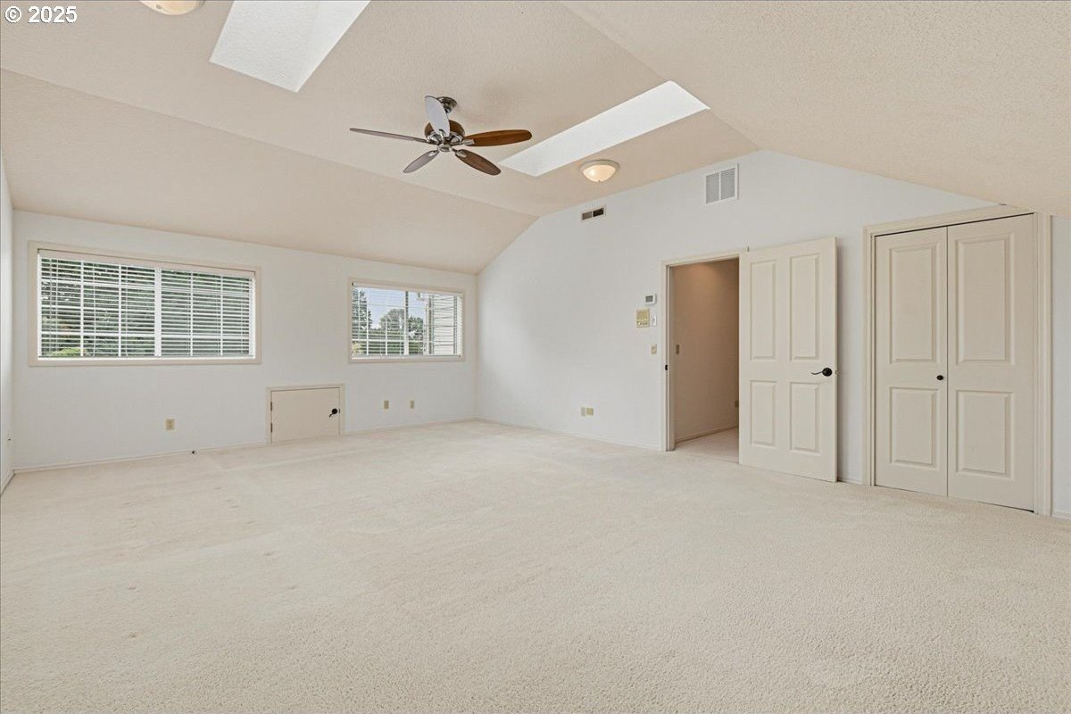Classic, traditional home on 1/4 acre, corner lot, located in highly sought after Village at Fishers Landing neighborhood. Desirable floor plan meets everyone's needs with 4 spacious bedrooms, oversized upstairs bonus room, and main level den (could be bedroom) with adjacent full bath. As you enter the home you'll be impressed with the dramatic 2 story foyer and open-rail staircase that leads to the 2nd floor. 9' ceilings on the main level and numerous large picture windows make the home feel open, and allow for lots of natural light. The formal living room features beautiful crown moulding and a gas fireplace. You'll enjoy entertaining in the grand, formal dining room, that is graced with wainscoting and French doors open to an expansive covered deck. Gourmet kitchen was remodeled in 2010 and features an abundance of cabinets and counter space, two pantry closets, island with breakfast bar and gas downdraft range, stainless steel appliances, slab granite counters, and spacious informal dining area with a slider to the deck. Floor-to-ceiling wall of built-in bookcases and cozy gas fireplace with hearth anchor the family room. King-sized, vaulted primary bedroom won't disappoint you with remodeled bath featuring heated tile flooring, soaking tub, sauna, water closet with tiled shower, and walk-in closet. Two skylights give the bonus room lots of natural light and it would make an ideal hobby/craft room, office, or play room. Expansive deck in the back yard is a great place to unwind and enjoy the beautifully landscaped grounds and listen to the sounds from the gorgeous water feature with a pond and private patio. Low maintenance composite deck with wrought-iron railing, and covered gazebo. Oversized concrete RV pad is hidden behind the white vinyl fence with large gate and easy access to the garage. Convenient concrete walkway extends from the deck in the backyard to the side yard where you'll find the raised garden beds, raspberries, and garden shed.