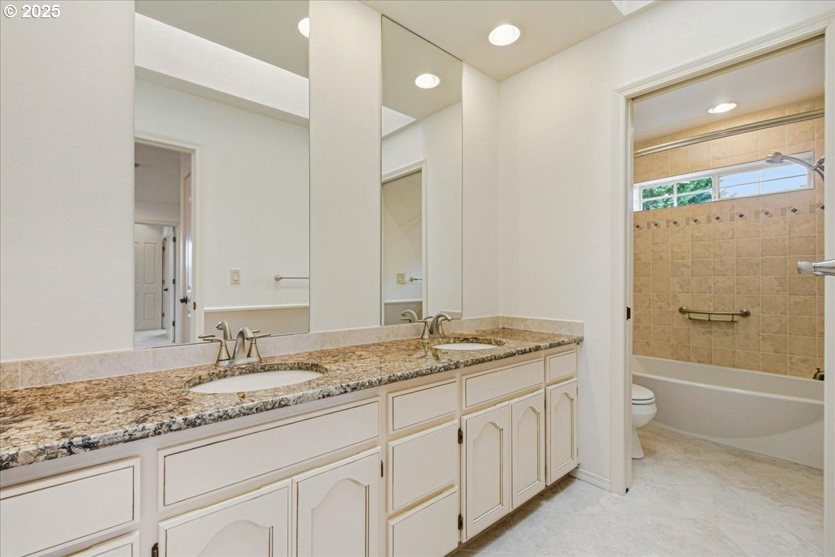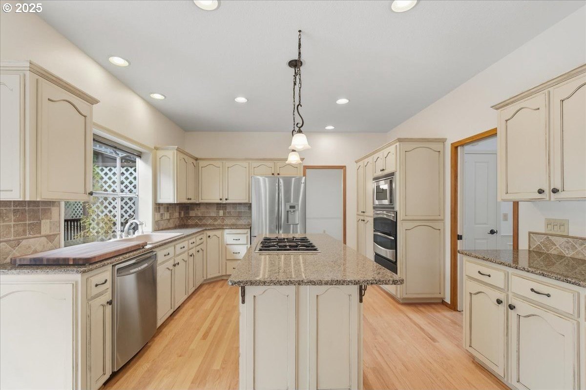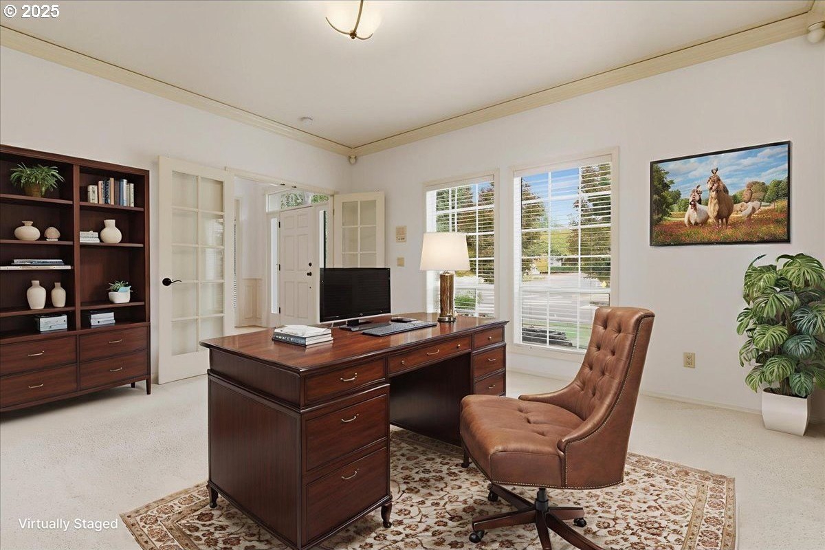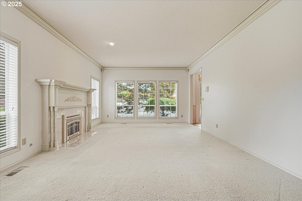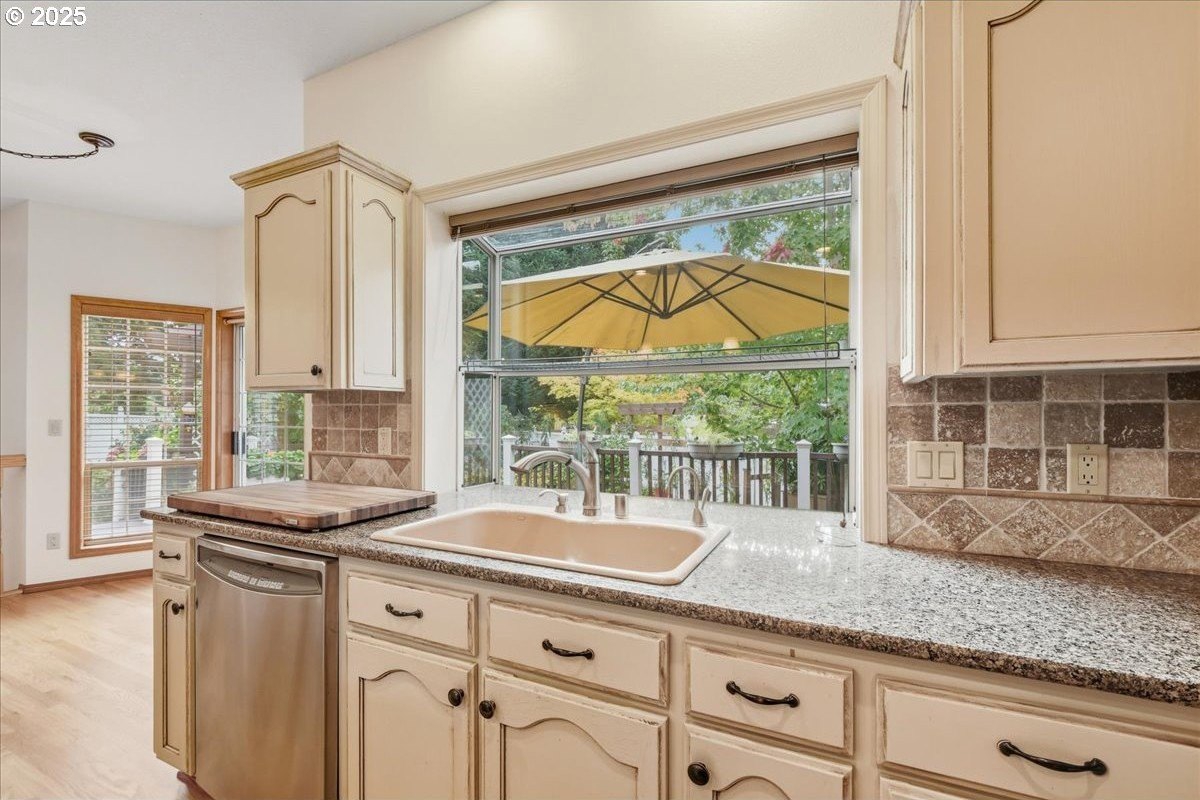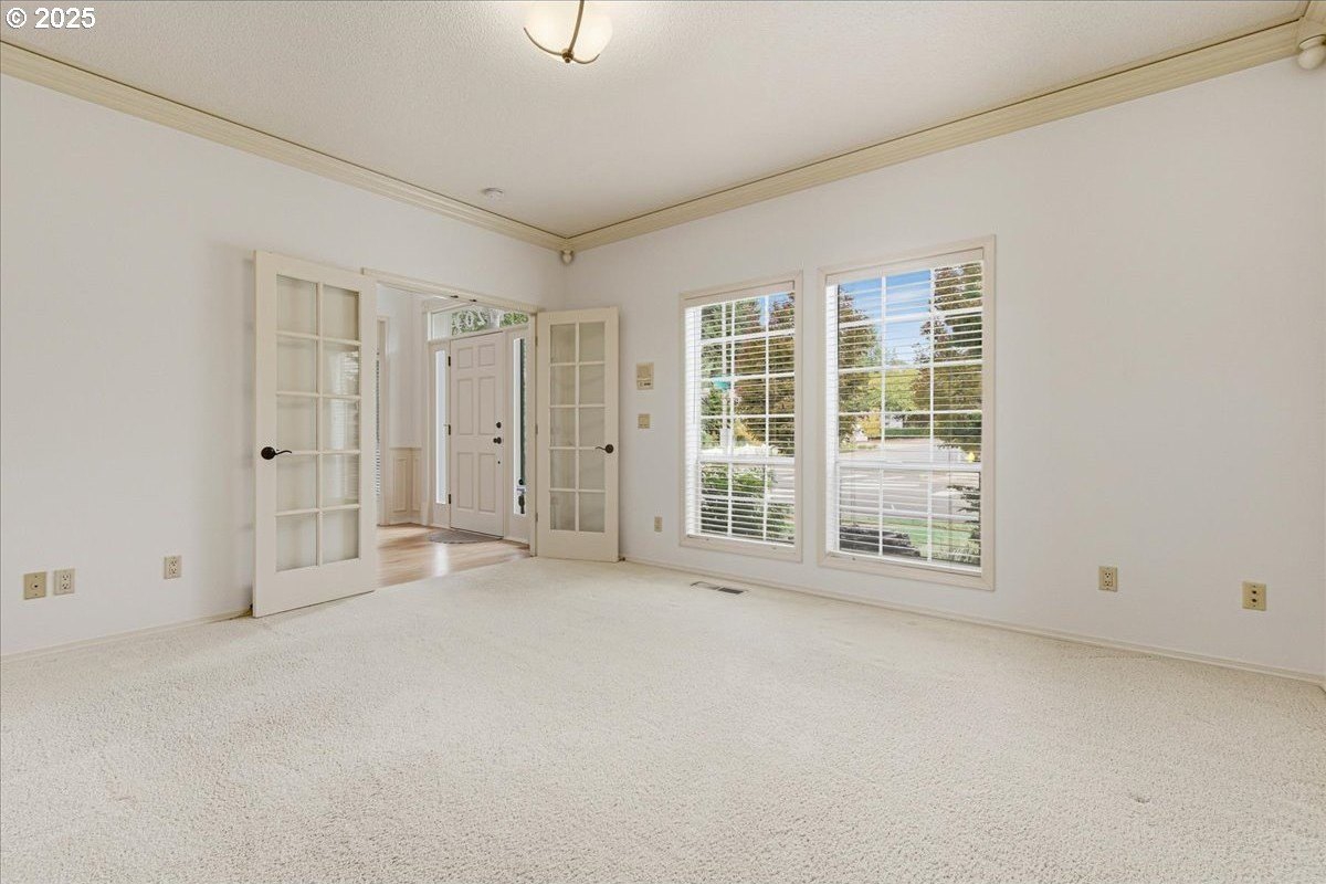 Classic, traditional home on 1/4 acre, corner lot, located in highly sought after Village at Fishers Landing neighborhood. Desirable floor plan meets everyone's needs with 4 spacious bedrooms, oversized upstairs bonus room, and main level den (could be bedroom) with adjacent full bath. As you enter the home you'll be impressed with the dramatic 2 story foyer and open-rail staircase that leads to the 2nd floor. 9' ceilings on the main level and numerous large picture windows make the home feel open, and allow for lots of natural light. The formal living room features beautiful crown moulding and a gas fireplace. You'll enjoy entertaining in the grand, formal dining room, that is graced with wainscoting and French doors open to an expansive covered deck. Gourmet kitchen was remodeled in 2010 and features an abundance of cabinets and counter space, two pantry closets, island with breakfast bar and gas downdraft range, stainless steel appliances, slab granite counters, and spacious informal dining area with a slider to the deck. Floor-to-ceiling wall of built-in bookcases and cozy gas fireplace with hearth anchor the family room. King-sized, vaulted primary bedroom won't disappoint you with remodeled bath featuring heated tile flooring, soaking tub, sauna, water closet with tiled shower, and walk-in closet. Two skylights give the bonus room lots of natural light and it would make an ideal hobby/craft room, office, or play room. Expansive deck in the back yard is a great place to unwind and enjoy the beautifully landscaped grounds and listen to the sounds from the gorgeous water feature with a pond and private patio. Low maintenance composite deck with wrought-iron railing, and covered gazebo. Oversized concrete RV pad is hidden behind the white vinyl fence with large gate and easy access to the garage. Convenient concrete walkway extends from the deck in the backyard to the side yard where you'll find the raised garden beds, raspberries, and garden shed.