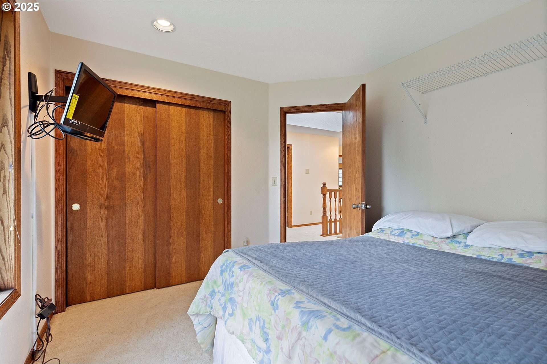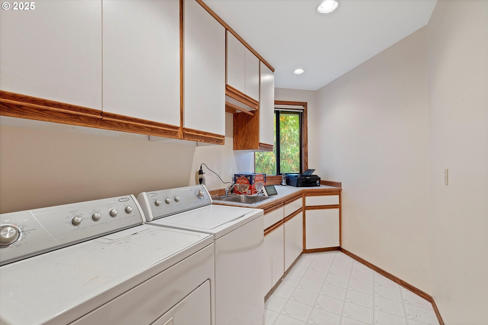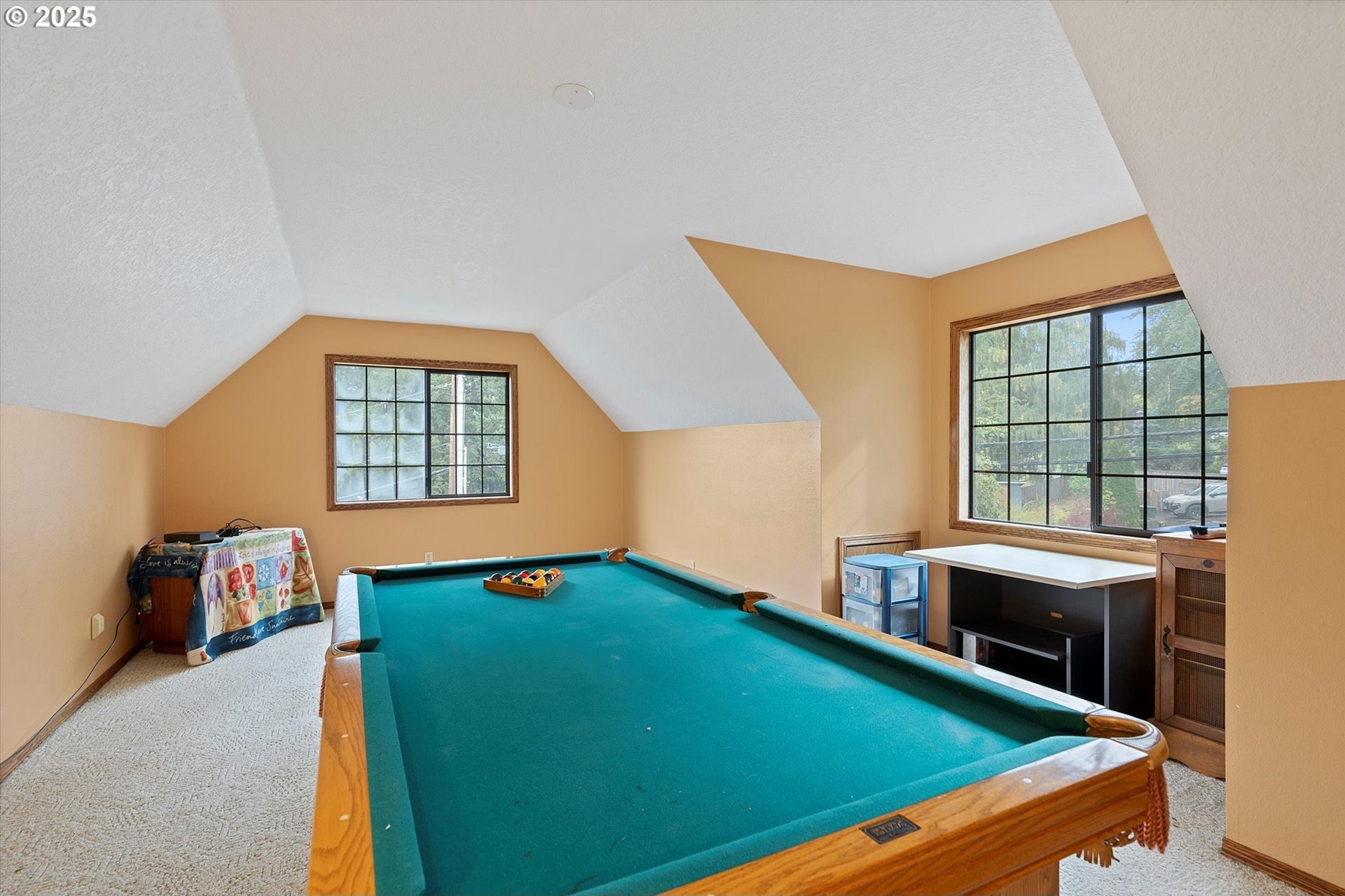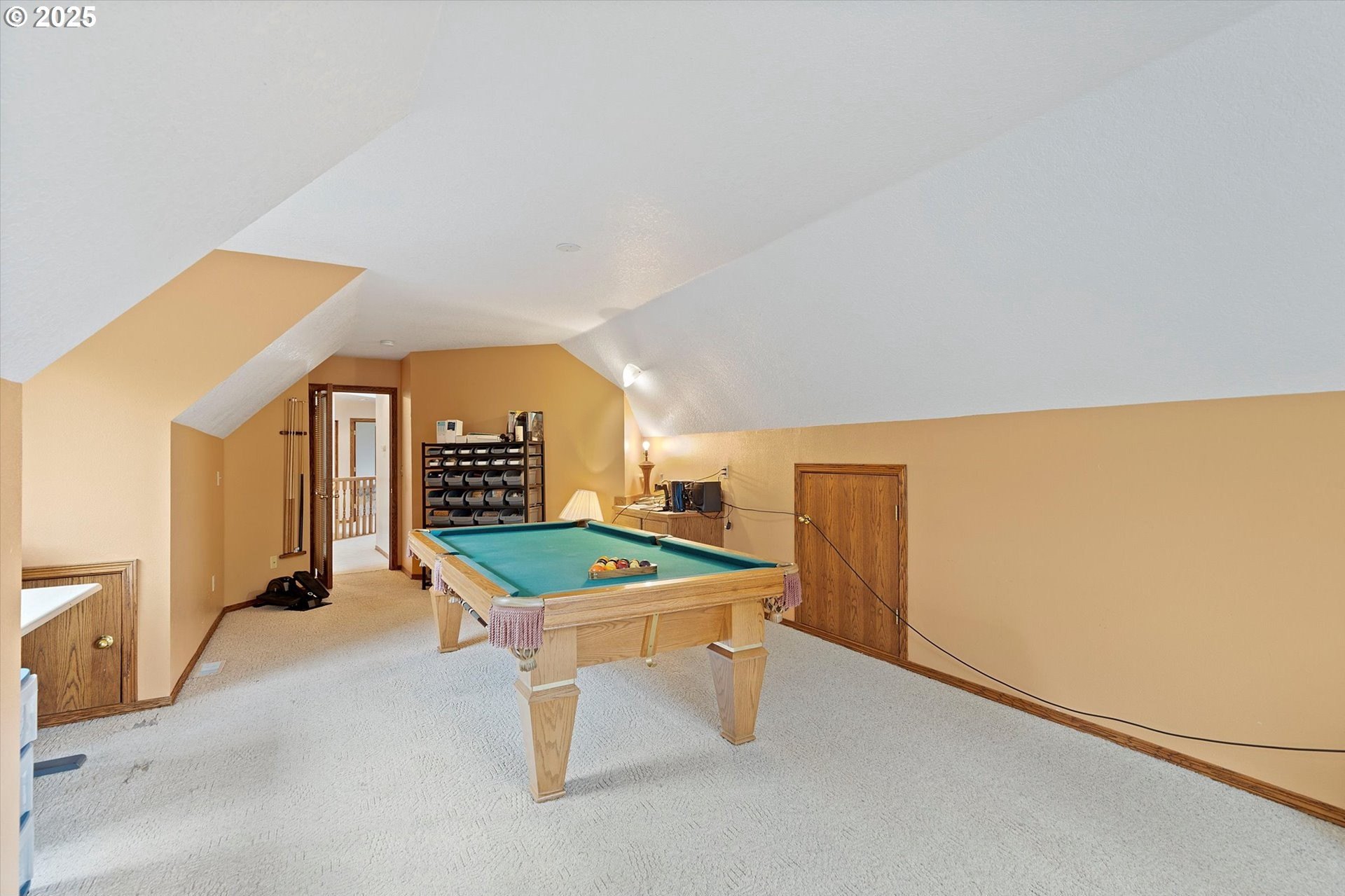 Traditional home has hardwood floors in entry, kitchen and family room, lots of windows, very light and bright with 4 foot skylight in wide hallway that overlooks entry, 3 skylights in all! Kitchen has cook island with gas cook top, stainless built in oven and microwave, bay window area, high ceilings, desk area, French Doors that open to deck in back, eat bar and a sitting area for table and or couch. Double high cabinets and cool pot rack! Family room has wood stove and hardwoods. Living room has gas fireplace, coved ceiling and bay window, dining room has large windows and chandelier. Primary bedroom suite is large with double sinks and walk in closet. Huge bonus room upstairs has wet bar and pool table. House has 3 skylights, Large laundry room has lots of cabinets, hanging rod and sink. Garage has super tall ceilings and is oversize. you can use for storage. Room for RV. Yard is fenced with 2 separate grass areas. Location is awesome, close to shopping, parks, yet very quiet and peaceful street. See attached neighborhood video to learn more about neighborhood