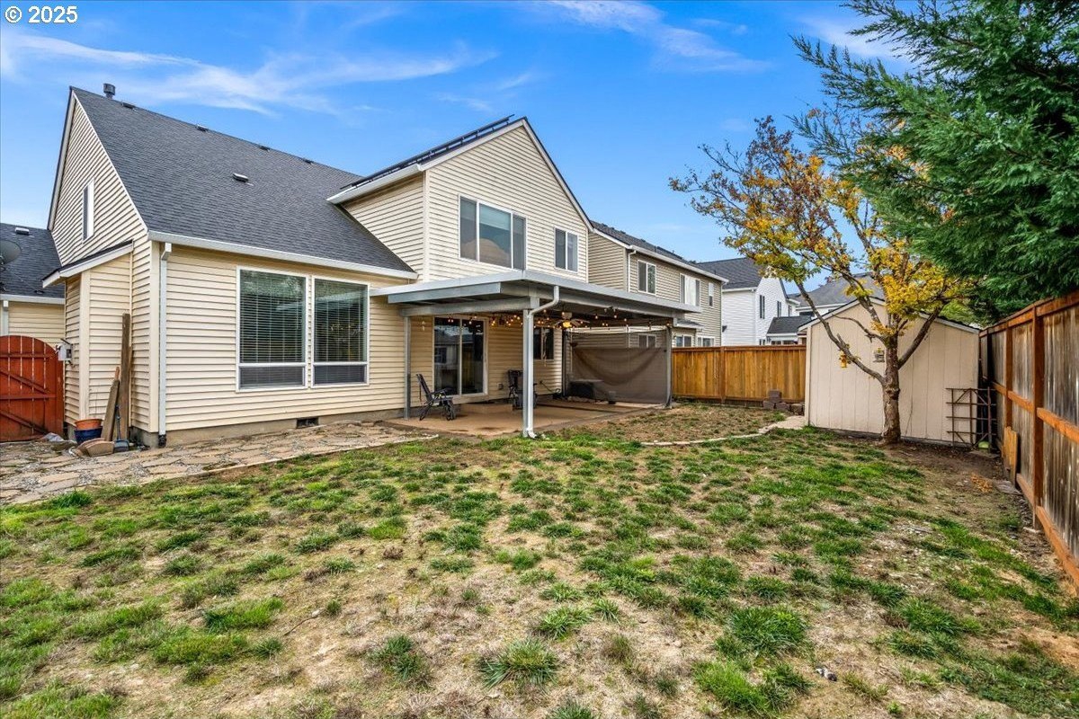 Welcome to 41753 NW Buckshire Street in the heart of Banks, Oregon—a spacious and flexible 5-bedroom, 3-bath home located in the well-established Arbor Village community. Offering over 2,300 square feet, this home features a rare main-level bedroom ideal for guests or a home office, complete with a Murphy bed for multi-use functionality.The light-filled layout includes a generous great room with gas fireplace, a well-equipped kitchen with stainless steel gas appliances, and an open dining area perfect for gatherings. The upper level boasts four additional bedrooms, including a large primary suite and two full bathrooms.Enjoy the outdoors with a fully fenced yard, covered back patio, and access to the HOA-maintained community park just down the street. The property also includes owned solar panels, offering long-term energy savings and efficiency.Situated just minutes from local shopping, highway access, and highly rated Banks Schools, this property offers both convenience and long-term value. Move-in ready and awaiting your personal touches—this is your opportunity to get into one of Banks' most desirable neighborhoods with room to grow.