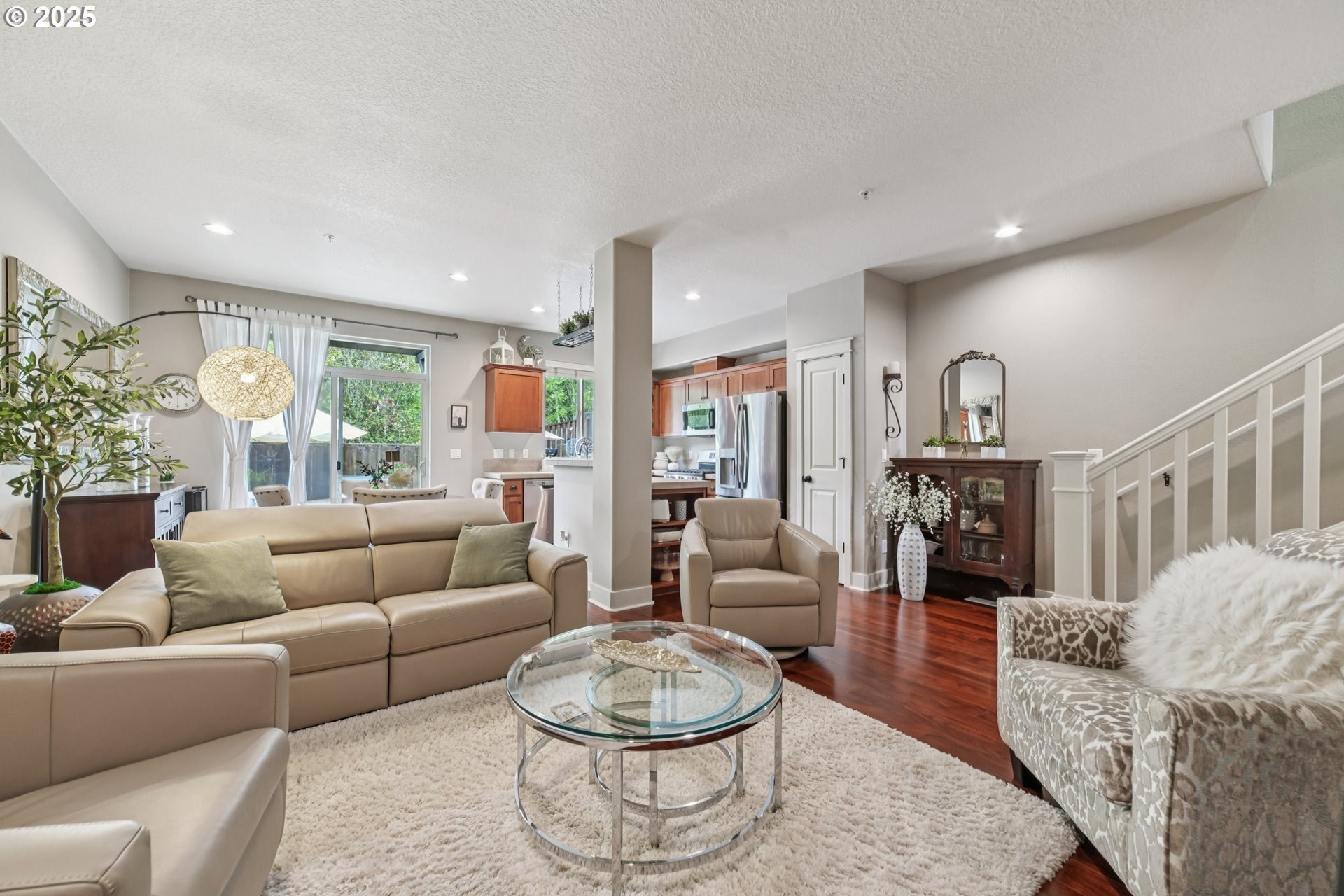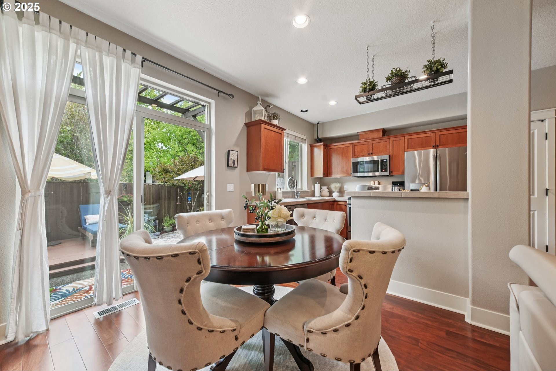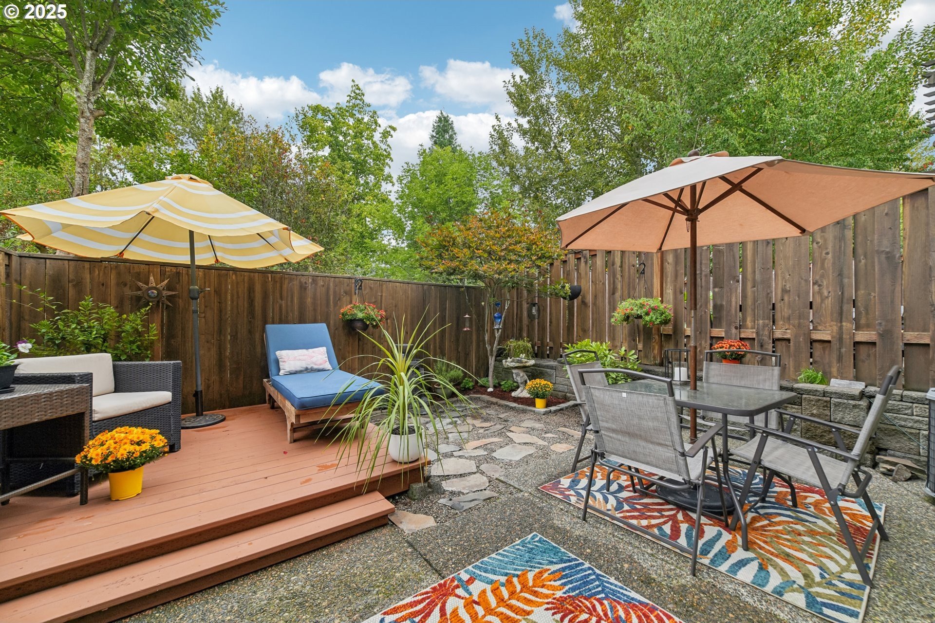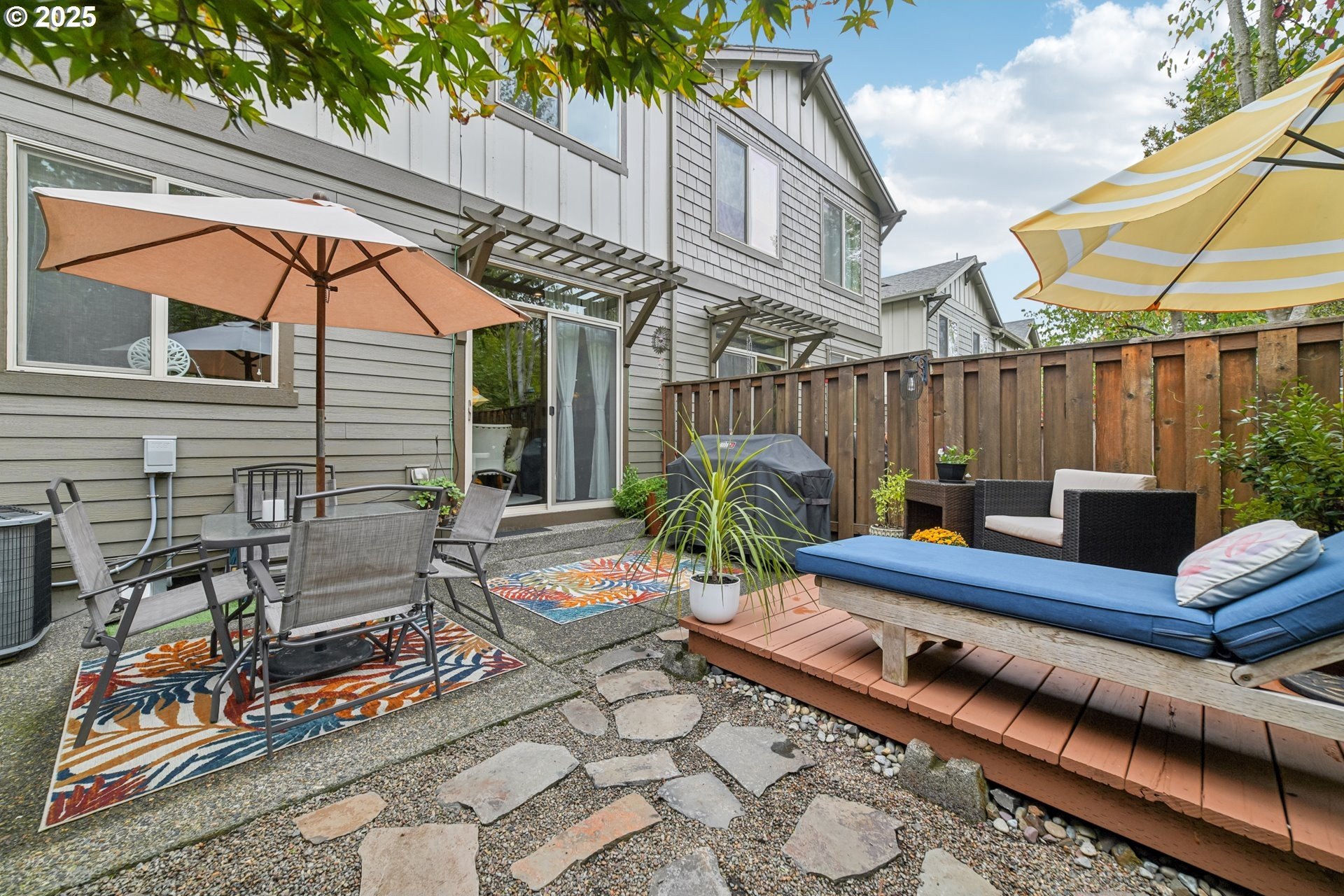 Welcome to this beautifully maintained 3-bedroom, 2.5-bath home in the highly desirable Arbor Parc community. The popular Riesling plan features an open great room layout with a generously sized island kitchen, pantry, and a seamless flow into the dining and living areas—perfect for both entertaining and everyday living. A cozy gas fireplace adds warmth and charm to the main floor, while sliding glass doors open to a landscaped backyard featuring an oversized patio and custom deck—ideal for relaxing, dining, or enjoying the outdoors. Upstairs, the spacious primary suite offers 10-foot ceilings, elegant French doors, a walk-in closet, dual vanities, a soaking tub, and a separate shower. Two additional bedrooms, a full bath, and a conveniently located laundry room complete the upper level. Additional highlights include stainless steel appliances, recessed lighting, central heating and cooling, and an attached garage. The HOA takes care of exterior maintenance, front landscaping, and common areas, providing a low-maintenance lifestyle in a welcoming community. Located near Bethany Village, parks, trails, shopping, and top-rated schools, with easy access to Highway 26, this home offers comfort, convenience, and timeless style in one of NW Portland's most sought-after neighborhoods. Mortgage savings may be available for buyers of this listing.