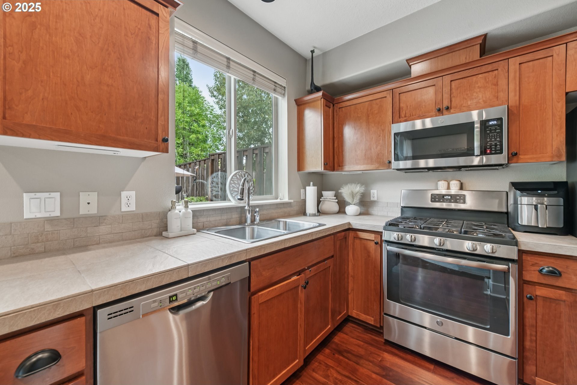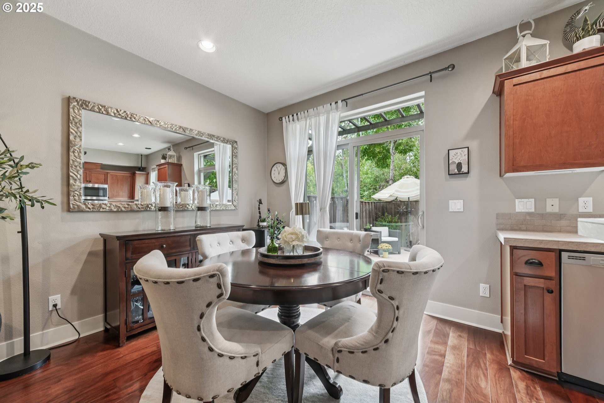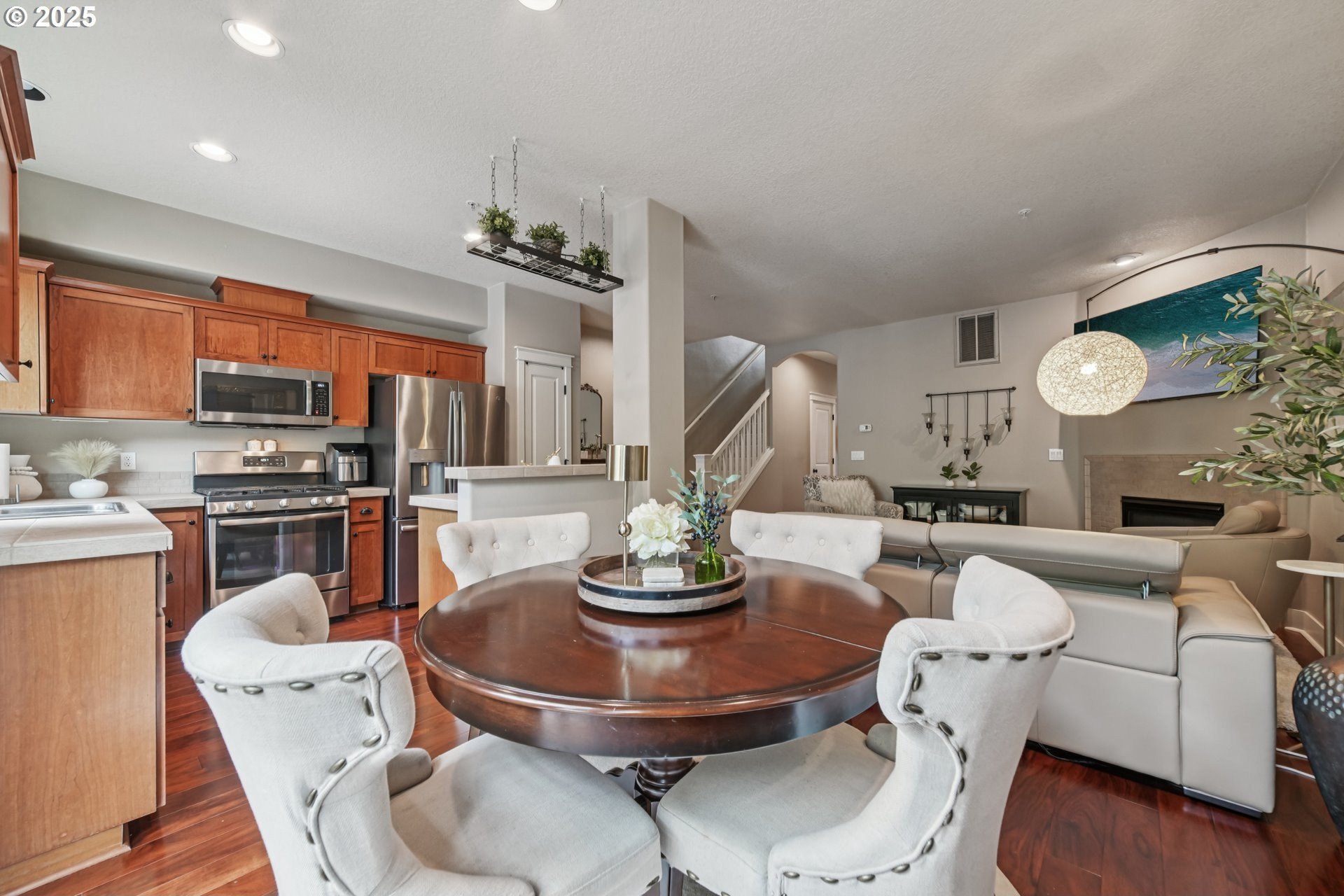 Welcome to this beautifully maintained 3-bedroom, 2.5-bath home in the highly desirable Arbor Parc community. The popular Riesling plan features an open great room layout with a generously sized island kitchen, pantry, and a seamless flow into the dining and living areas—perfect for both entertaining and everyday living. A cozy gas fireplace adds warmth and charm to the main floor, while sliding glass doors open to a landscaped backyard featuring an oversized patio and custom deck—ideal for relaxing, dining, or enjoying the outdoors. Upstairs, the spacious primary suite offers 10-foot ceilings, elegant French doors, a walk-in closet, dual vanities, a soaking tub, and a separate shower. Two additional bedrooms, a full bath, and a conveniently located laundry room complete the upper level. Additional highlights include stainless steel appliances, recessed lighting, central heating and cooling, and an attached garage. The HOA takes care of exterior maintenance, front landscaping, and common areas, providing a low-maintenance lifestyle in a welcoming community. Located near Bethany Village, parks, trails, shopping, and top-rated schools, with easy access to Highway 26, this home offers comfort, convenience, and timeless style in one of NW Portland's most sought-after neighborhoods. Mortgage savings may be available for buyers of this listing.