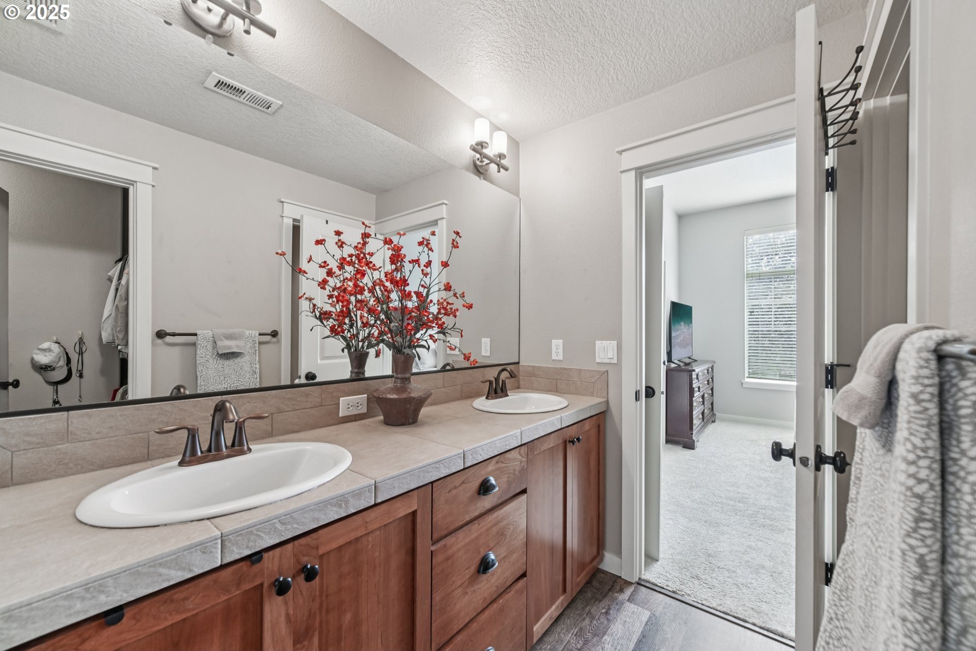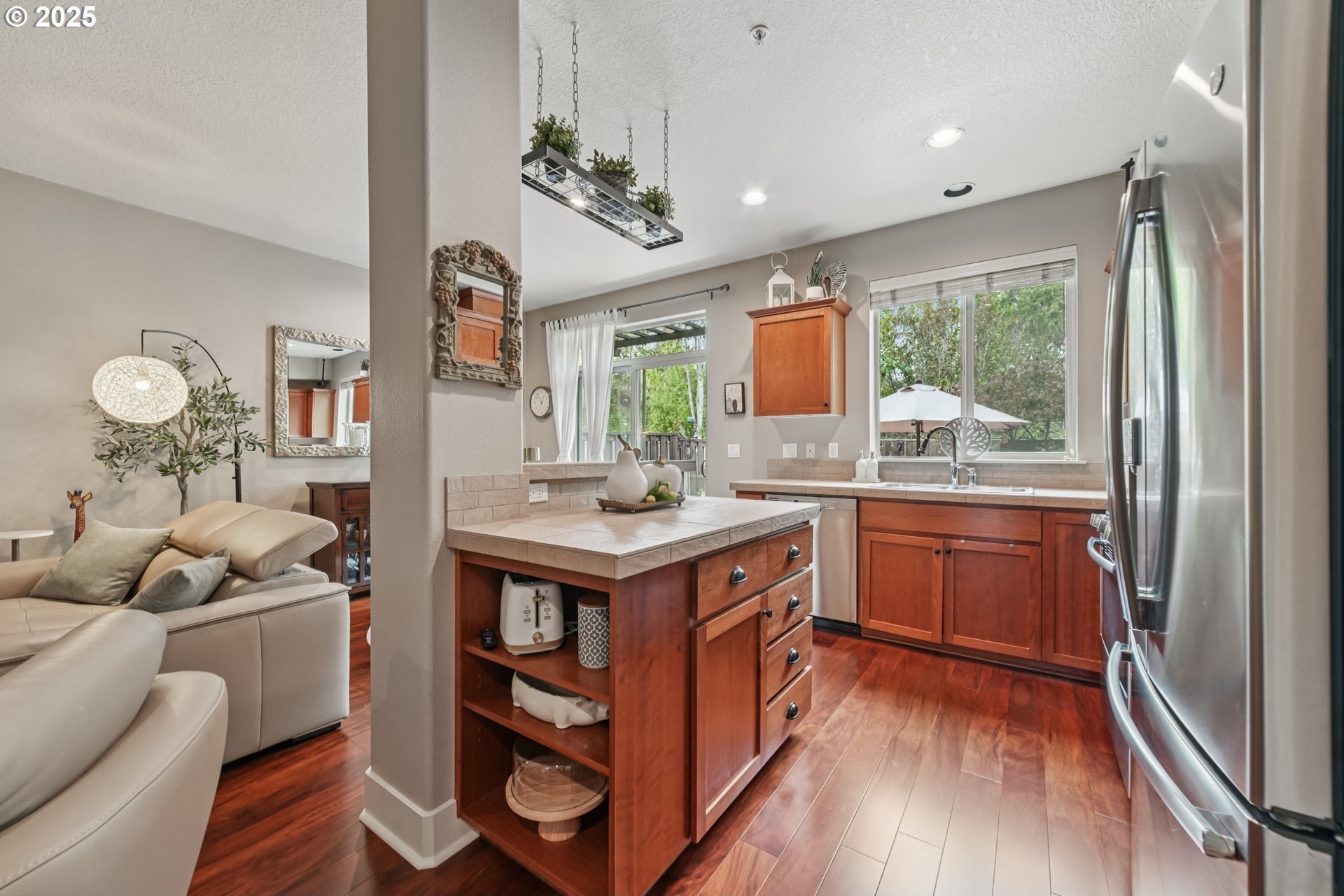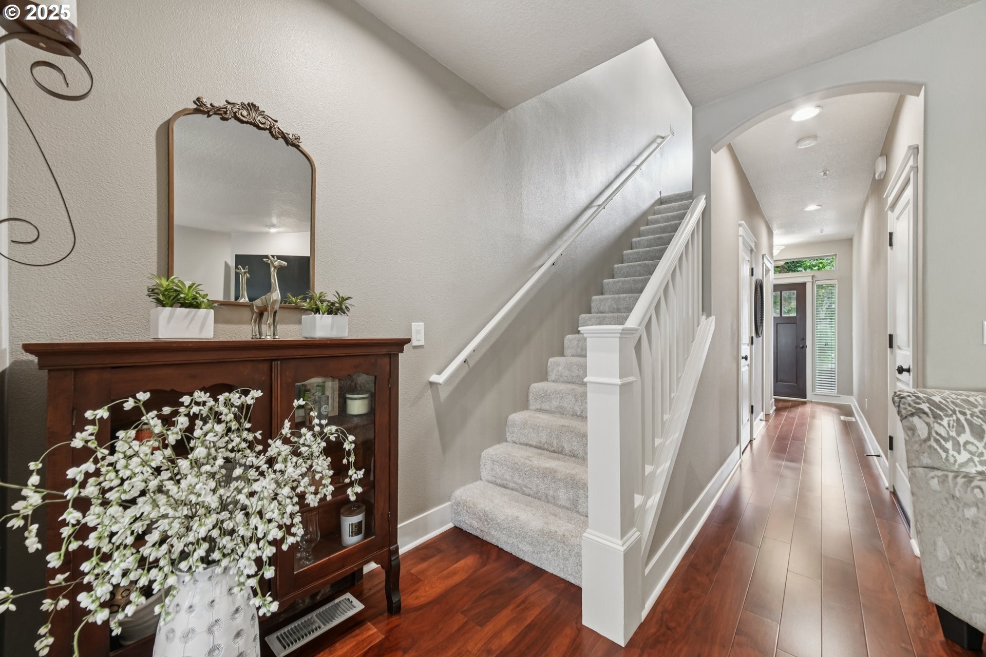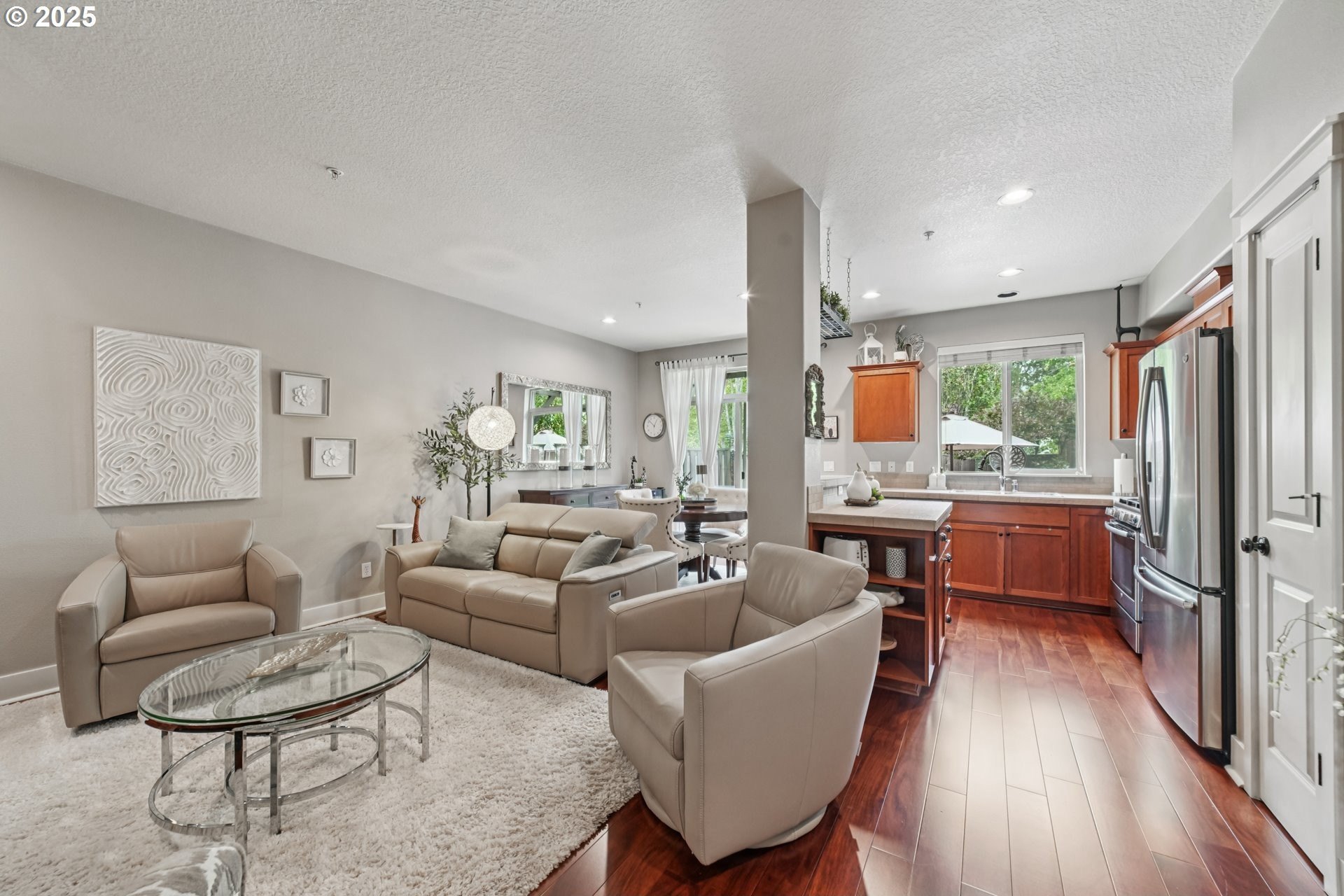 Welcome to this beautifully maintained 3-bedroom, 2.5-bath home in the highly desirable Arbor Parc community. The popular Riesling plan features an open great room layout with a generously sized island kitchen, pantry, and a seamless flow into the dining and living areas—perfect for both entertaining and everyday living. A cozy gas fireplace adds warmth and charm to the main floor, while sliding glass doors open to a landscaped backyard featuring an oversized patio and custom deck—ideal for relaxing, dining, or enjoying the outdoors. Upstairs, the spacious primary suite offers 10-foot ceilings, elegant French doors, a walk-in closet, dual vanities, a soaking tub, and a separate shower. Two additional bedrooms, a full bath, and a conveniently located laundry room complete the upper level. Additional highlights include stainless steel appliances, recessed lighting, central heating and cooling, and an attached garage. The HOA takes care of exterior maintenance, front landscaping, and common areas, providing a low-maintenance lifestyle in a welcoming community. Located near Bethany Village, parks, trails, shopping, and top-rated schools, with easy access to Highway 26, this home offers comfort, convenience, and timeless style in one of NW Portland's most sought-after neighborhoods. Mortgage savings may be available for buyers of this listing.