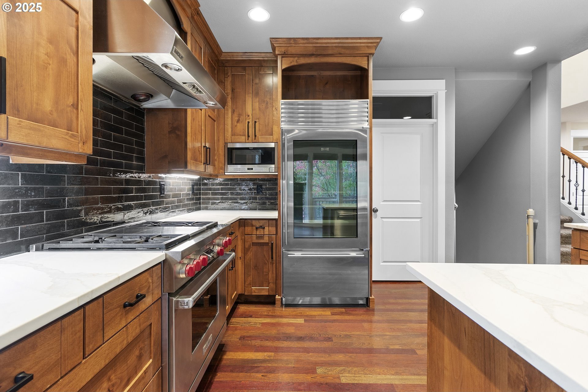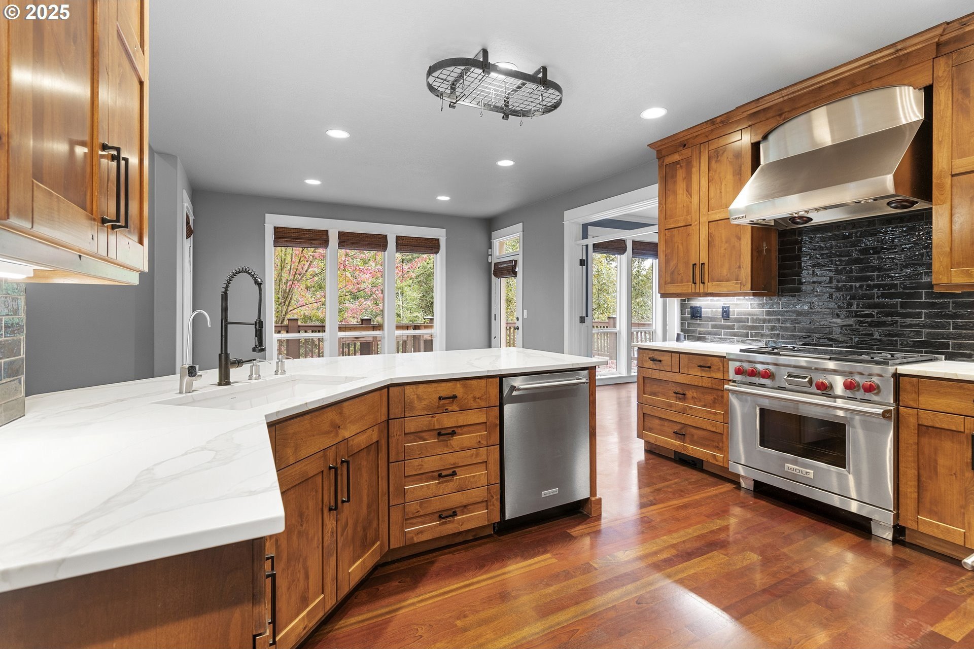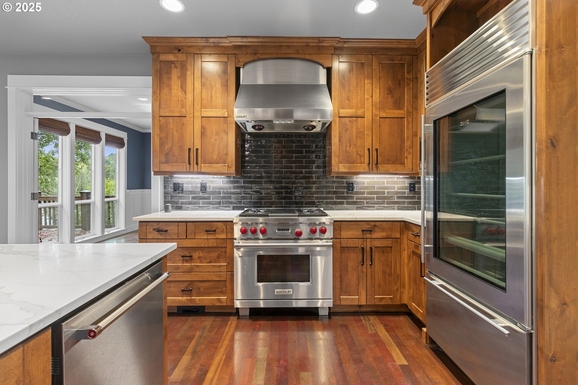 Nestled in the heart of sought-after Forest Heights, this 3,584-square-foot residence embodies warmth, refinement, and enduring quality. A brand-new Presidential roof crowns the home, while Brazilian cherry hardwood floors flow gracefully beneath soaring ceilings, reflecting natural light and timeless elegance.The gourmet kitchen is a chef’s dream—thoughtfully updated with a Wolf range, Sub-Zero refrigerator, all stainless steel appliances, soft-close cabinetry, and a built-in water filtration system. Whether hosting or creating quiet meals, every detail whispers of craftsmanship and care.A grand office framed with wainscoting and French doors offers the perfect sanctuary for inspiration, while the vaulted primary suite invites serenity with dual sinks, a spacious walk-in shower, and a private crow’s nest balcony—an intimate perch to savor morning coffee and take in the view.Built-in bookcases, fine finishes, and an intelligently designed layout provide both beauty and purpose. The lower level offers flexibility with a fourth bedroom and easy access to nature beyond. Step out to the deck overlooking the trees, where valley views, birdsong, and visiting wildlife remind you that elegance and tranquility can coexist.This is more than a home—it’s a quiet retreat in one of Portland’s most cherished communities.