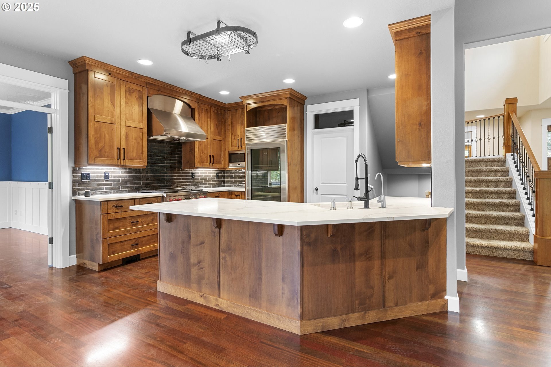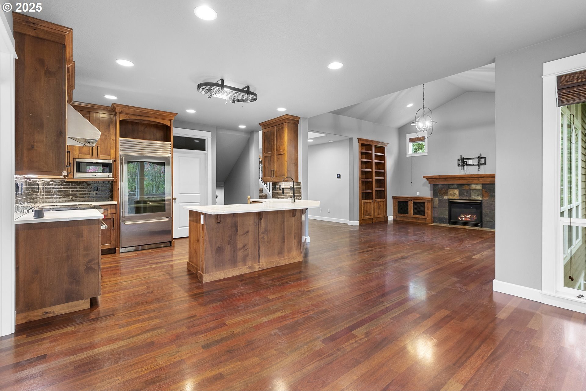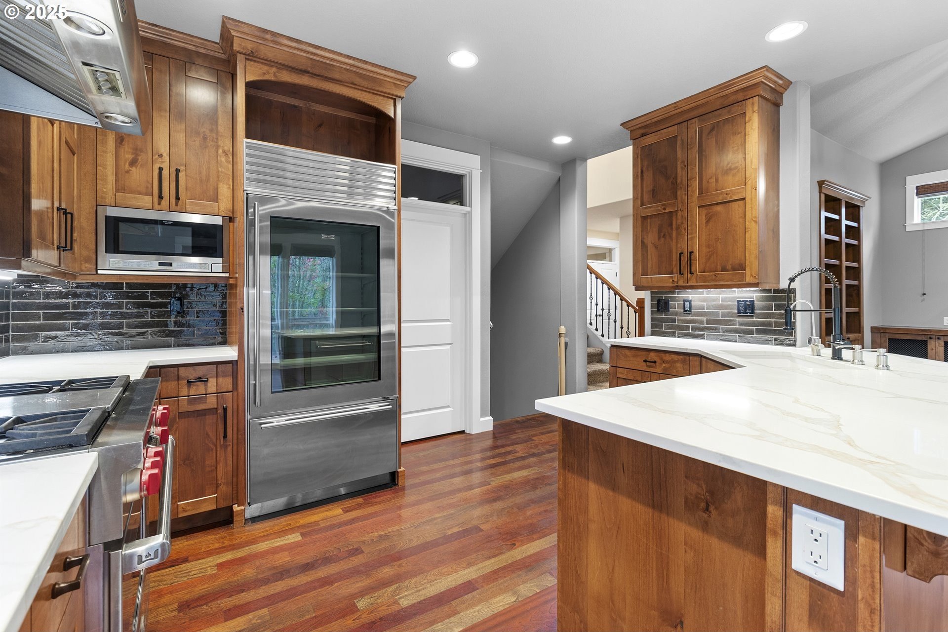 Nestled in the heart of sought-after Forest Heights, this 3,584-square-foot residence embodies warmth, refinement, and enduring quality. A brand-new Presidential roof crowns the home, while Brazilian cherry hardwood floors flow gracefully beneath soaring ceilings, reflecting natural light and timeless elegance.The gourmet kitchen is a chef’s dream—thoughtfully updated with a Wolf range, Sub-Zero refrigerator, all stainless steel appliances, soft-close cabinetry, and a built-in water filtration system. Whether hosting or creating quiet meals, every detail whispers of craftsmanship and care.A grand office framed with wainscoting and French doors offers the perfect sanctuary for inspiration, while the vaulted primary suite invites serenity with dual sinks, a spacious walk-in shower, and a private crow’s nest balcony—an intimate perch to savor morning coffee and take in the view.Built-in bookcases, fine finishes, and an intelligently designed layout provide both beauty and purpose. The lower level offers flexibility with a fourth bedroom and easy access to nature beyond. Step out to the deck overlooking the trees, where valley views, birdsong, and visiting wildlife remind you that elegance and tranquility can coexist.This is more than a home—it’s a quiet retreat in one of Portland’s most cherished communities.