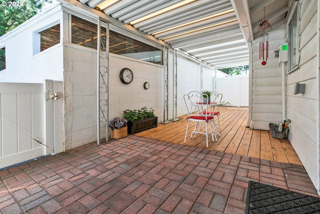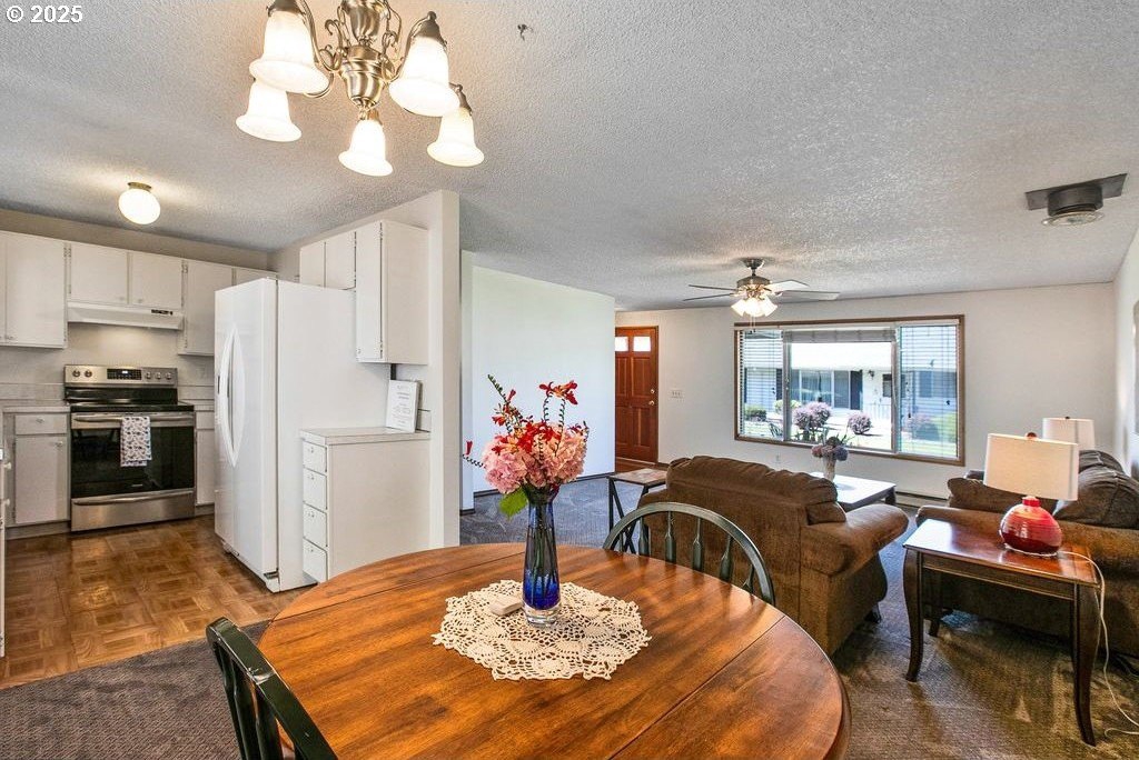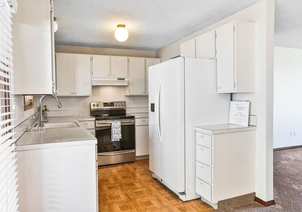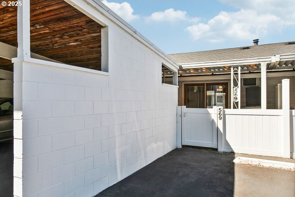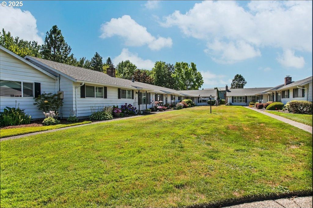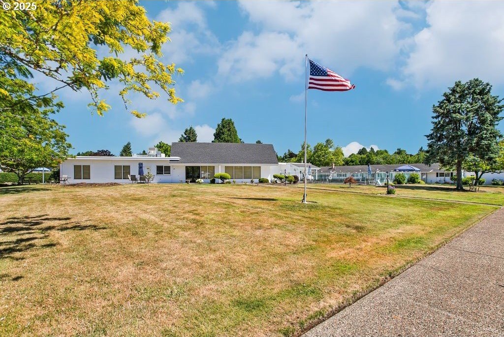 This inviting and well-established private 55+ condo in Eagle East Estates is highly sought after for its peaceful setting and well-kept amenities. This unit is situated in the back area, nestled amongst the beautiful trees, and is quiet and private. On Sept 30, 2024, the LAND WAS PURCHASED for this unit for $47,564.00. There will be NO need to worry about the increased price of a land purchase in the future! The HOA fee each month reflects the purchase of the land and is $388.91 per month. The home features a spacious living area, two bedrooms, an updated bathroom, and a cheerful kitchen that includes all newer appliances. The refrigerator, washer, and dryer are all included. The cozy dining room opens to a lovely outdoor area. Enjoy a covered patio for your morning coffee or relaxing in any weather. A storage closet is located on the back patio, and both storage units on the patio are included. You will have both a covered carport and an additional parking pad for your vehicles. Residents enjoy access to a beautiful clubhouse, a seasonal pool, and carefully maintained grounds. This home offers a blend of comfort, convenience, and community.