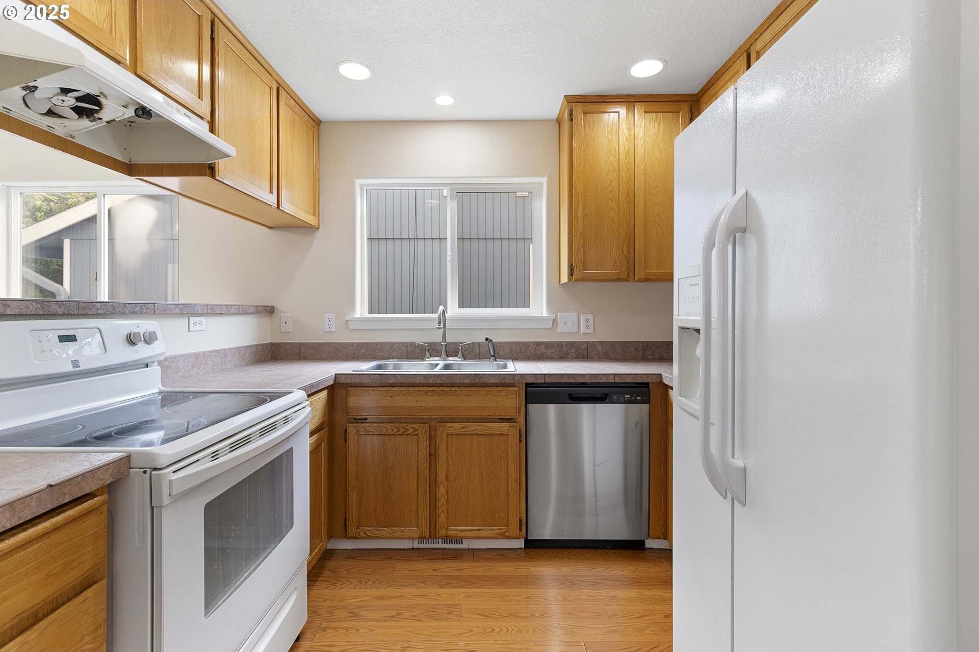 Welcome to your new Northeast Portland home! This bright and cheerful 3-bedroom, 2.5-bath residence is move-in ready, freshly painted inside and out, and features brand-new carpet and updated flooring in all bathrooms.The main level offers an open-concept dining and living space, perfect for entertaining or relaxing evenings. Step directly from the living area onto your private patio and into the fully fenced backyard, an ideal spot for morning coffee, BBQs, or playtime with pets.Upstairs, you'll find the primary suite with its own full bathroom, alongside two additional bedrooms and another full bath. All major appliances—refrigerator, washer, dryer, dishwasher, and freestanding stove—are included. Enjoy abundant natural light throughout and the convenience of a one-car garage for storage or off-street parking.This home offers easy access to local shops, restaurants, schools, and public transportation. Plus, a weekly farmer's market is just at the end of the block!