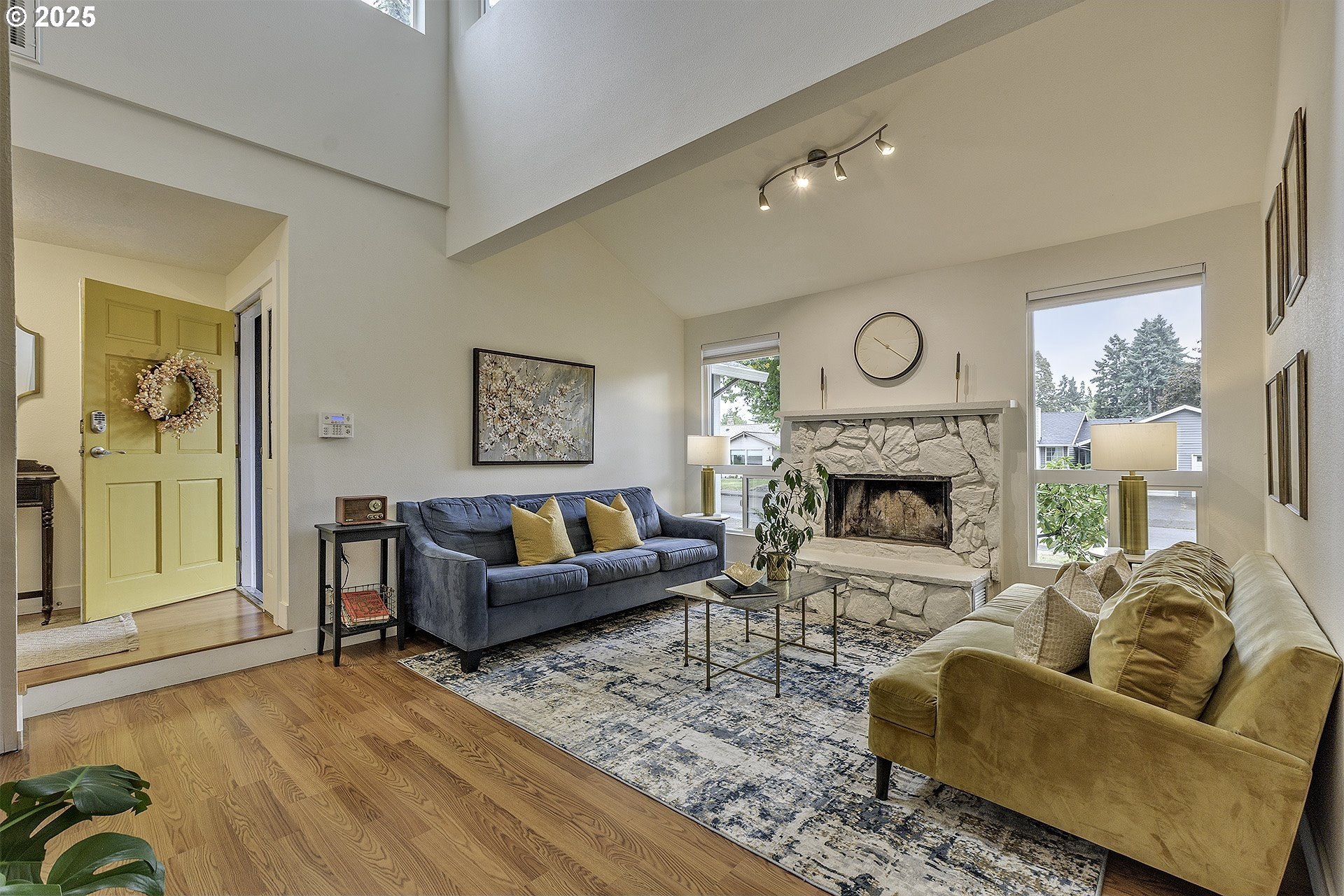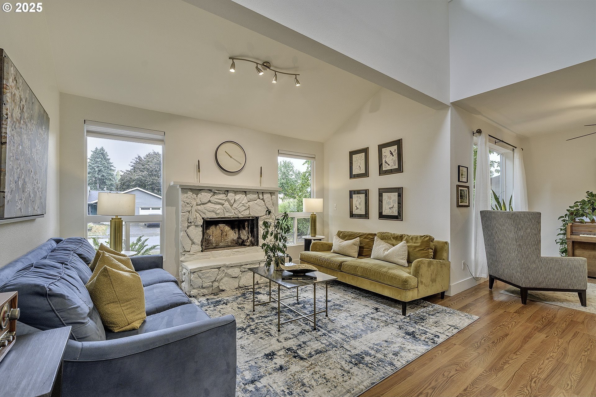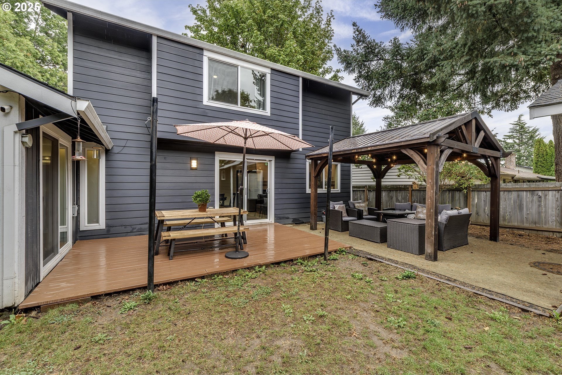 Charming Craftsman-style home on a quiet cul-de-sac in Hillsboro! This bright and inviting home features a main-level living room with a stone surround wall, pre-framed for a future gas fireplace, creating the perfect focal point for cozy gatherings. The open kitchen boasts quartz countertops, full tile backsplash, stainless steel appliances, flowing seamlessly to the dining area with a slider to a deck and fully fenced backyard. Main-level living includes 3 bedrooms, highlighted by a primary suite with remodeled ensuite bath and direct backyard access—perfect for multigenerational living. A convenient main-level laundry area adds everyday functionality. Upstairs, a vaulted second primary suite with walk-in closet and full bath offers privacy, while a versatile loft is ideal as an office, studio, or play space. Enjoy your private backyard retreat with a fully furnished gazebo, fire table, and lush tree-lined views. Additional storage is available in the backyard shed. Set in a prime Hillsboro location, enjoy nearby parks and trails, including Century Oaks Park, Frances Street Park, and Jackson Bottom Wetlands Preserve, along with quick access to shopping, dining, food trucks, and seasonal events at Orenco Station, Tanasbourne, and Hillsboro Promenade. Commuters will appreciate proximity to Nike, Intel, the Tanasbourne tech corridor, and easy access to Highway 8 and TV Highway. Modern updates, versatile living spaces, and a serene backyard make this home ideal for families or professionals seeking a blend of comfort, convenience, and style. Don’t miss the opportunity to make this exceptional Hillsboro property your new home! [Home Energy Score = 2. HES Report at https://rpt.greenbuildingregistry.com/hes/OR10227194]