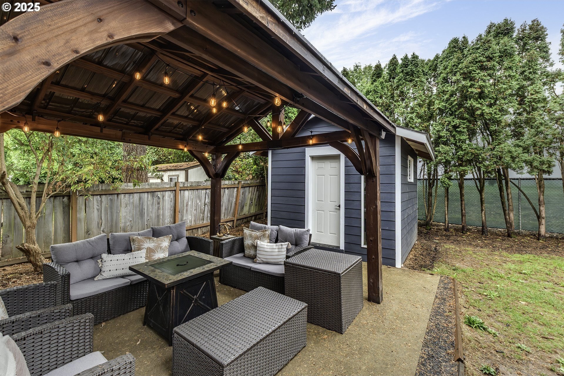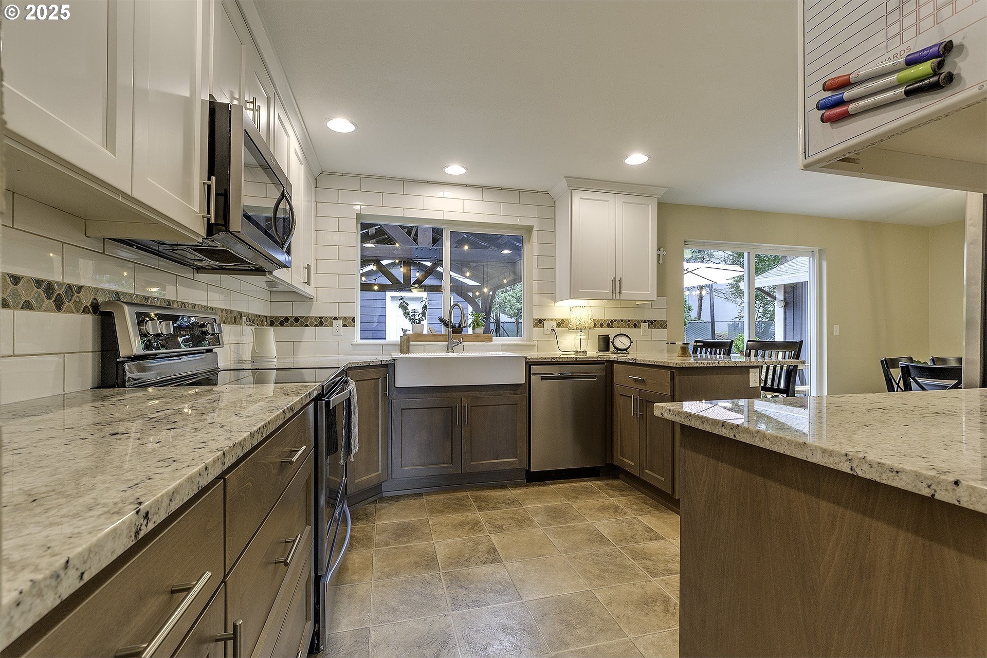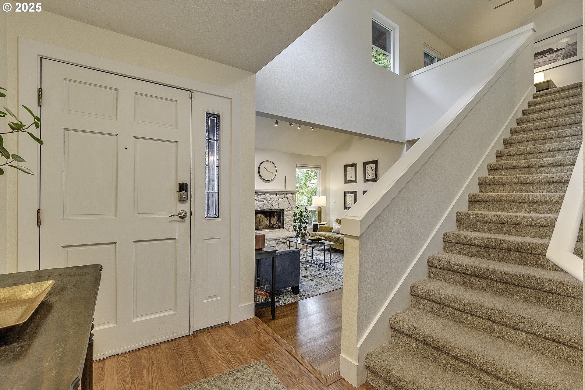 Charming Craftsman-style home on a quiet cul-de-sac in Hillsboro! This bright and inviting home features a main-level living room with a stone surround wall, pre-framed for a future gas fireplace, creating the perfect focal point for cozy gatherings. The open kitchen boasts quartz countertops, full tile backsplash, stainless steel appliances, flowing seamlessly to the dining area with a slider to a deck and fully fenced backyard. Main-level living includes 3 bedrooms, highlighted by a primary suite with remodeled ensuite bath and direct backyard access—perfect for multigenerational living. A convenient main-level laundry area adds everyday functionality. Upstairs, a vaulted second primary suite with walk-in closet and full bath offers privacy, while a versatile loft is ideal as an office, studio, or play space. Enjoy your private backyard retreat with a fully furnished gazebo, fire table, and lush tree-lined views. Additional storage is available in the backyard shed. Set in a prime Hillsboro location, enjoy nearby parks and trails, including Century Oaks Park, Frances Street Park, and Jackson Bottom Wetlands Preserve, along with quick access to shopping, dining, food trucks, and seasonal events at Orenco Station, Tanasbourne, and Hillsboro Promenade. Commuters will appreciate proximity to Nike, Intel, the Tanasbourne tech corridor, and easy access to Highway 8 and TV Highway. Modern updates, versatile living spaces, and a serene backyard make this home ideal for families or professionals seeking a blend of comfort, convenience, and style. Don’t miss the opportunity to make this exceptional Hillsboro property your new home! [Home Energy Score = 2. HES Report at https://rpt.greenbuildingregistry.com/hes/OR10227194]