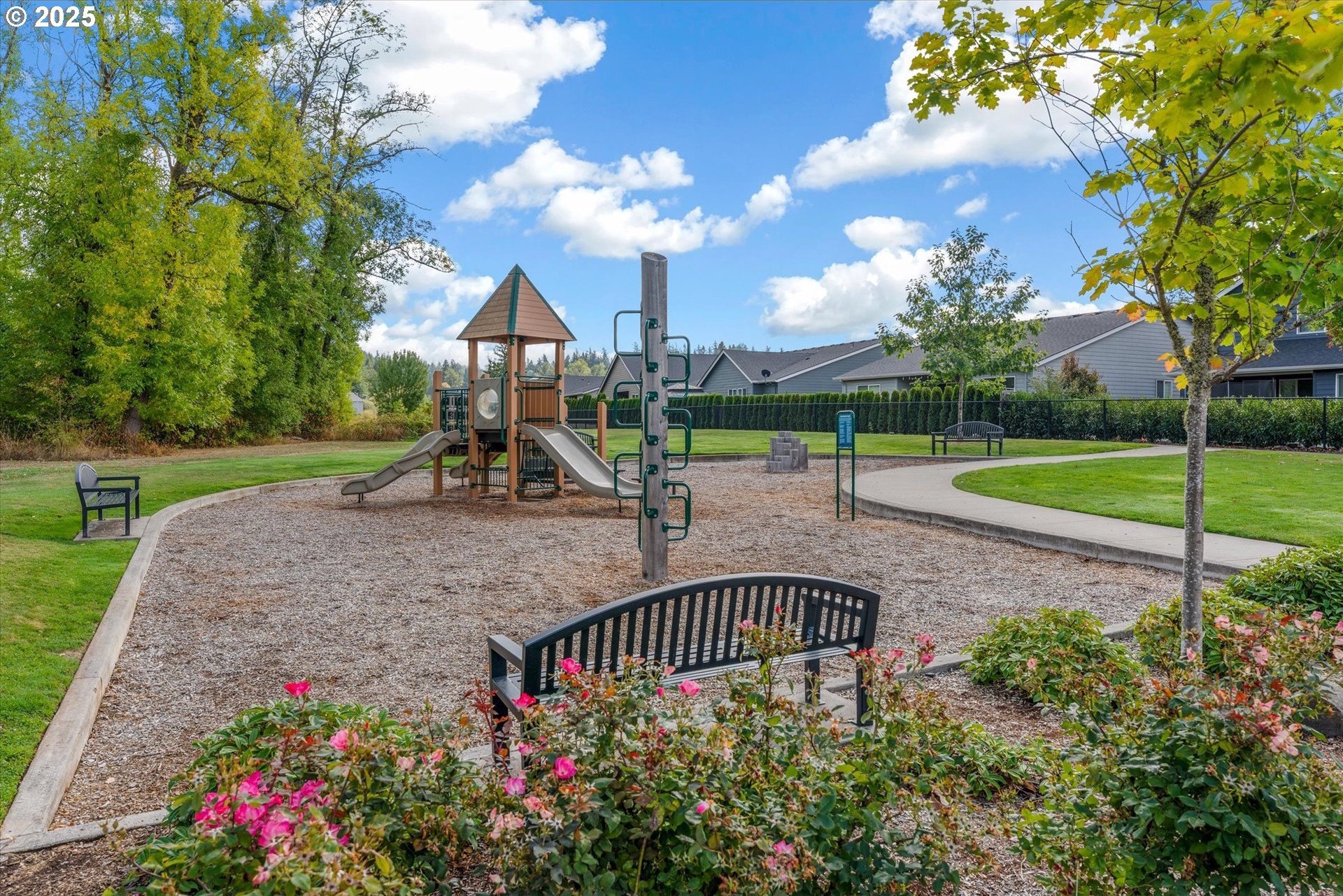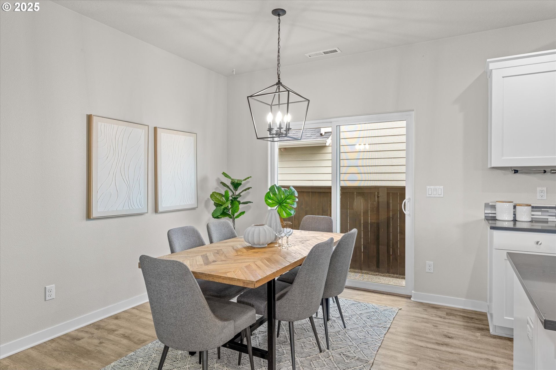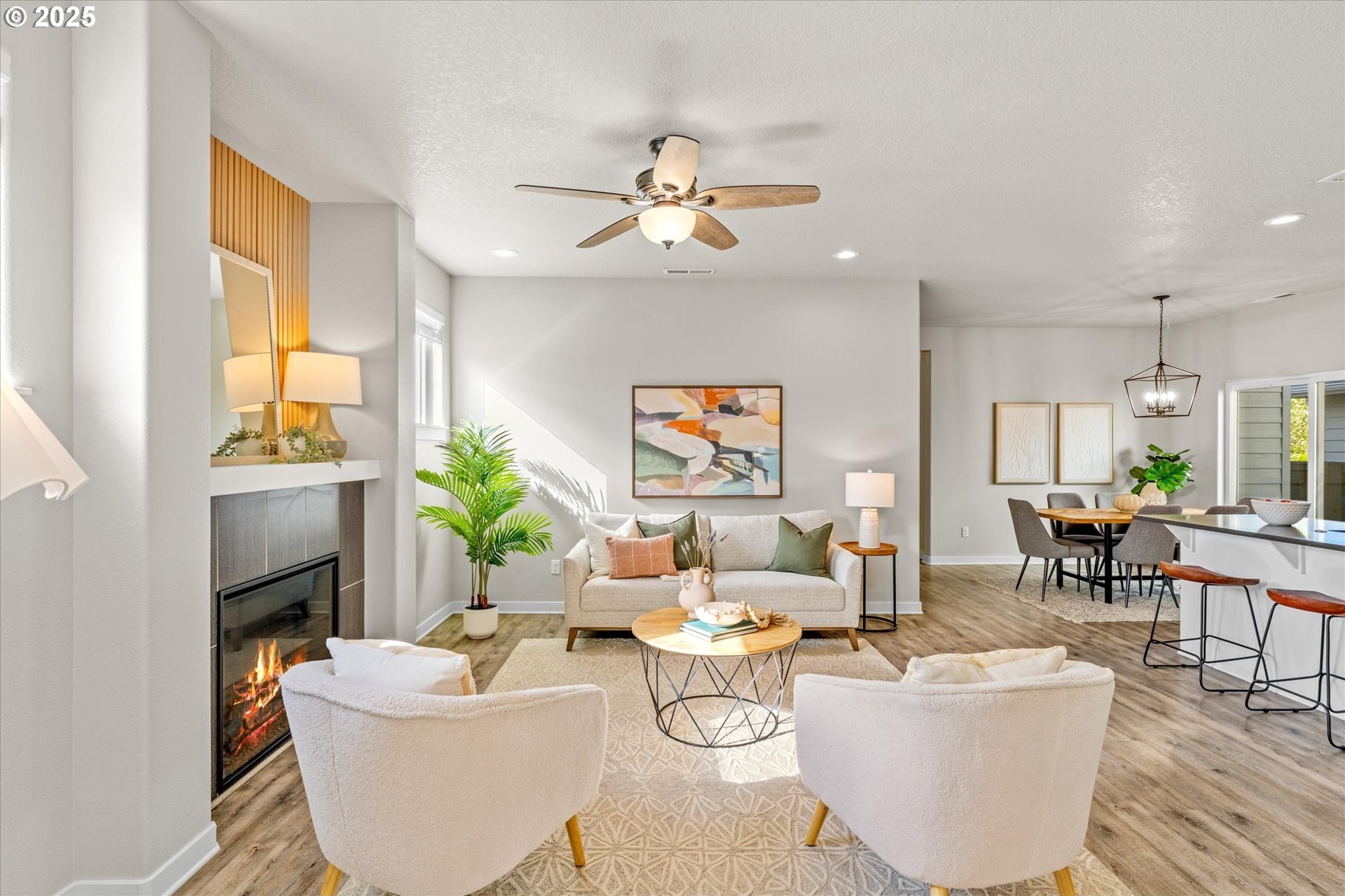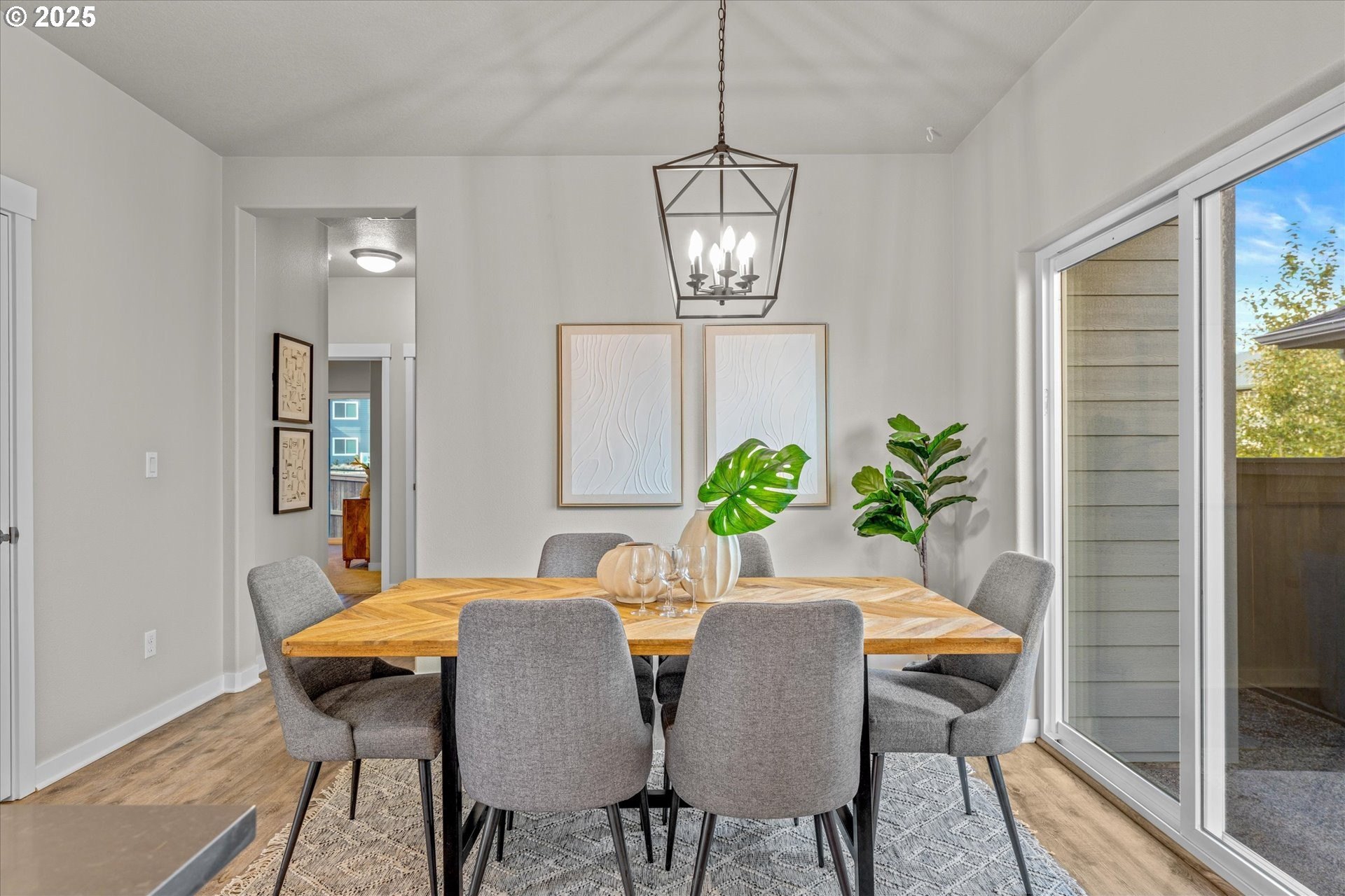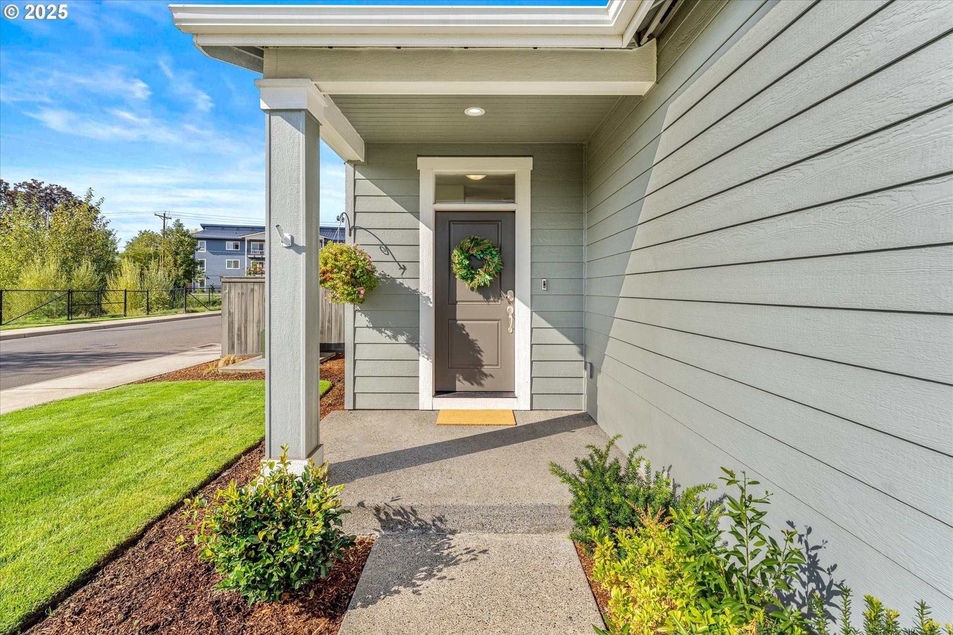 Welcome to this beautifully maintained newer construction home offering the perfect single-level layout on a desirable corner lot. Step inside to an open-concept floor plan filled with natural light, high ceilings, and stylish LVP flooring throughout the main living areas. The spacious kitchen is a true highlight—featuring a large island, stainless steel appliances, and a dedicated dining area that flows seamlessly to the backyard through a sliding glass door. Enjoy cozy evenings by the elegant gas fireplace or morning coffee on your private patio. The primary suite is a peaceful retreat with dual sinks, a walk-in closet, and a standing shower. Two additional bedrooms are conveniently located near a dedicated indoor laundry space for easy everyday living. You’ll appreciate the oversized garage with ample room for parking and storage. Located in the sought-after Campanella Estates community, this neighborhood is known for its welcoming atmosphere and close-knit feel. Enjoy nearby Wade Creek Park and its splash pad, Timber Park for water activities, the new community center, and local library. Explore neighborhood ponds, riding trails, and miles of paved walking and biking paths—everything you need is right at your doorstep! A perfect blend of comfort, style, and convenience—don’t miss your chance to call this stunning home your own!