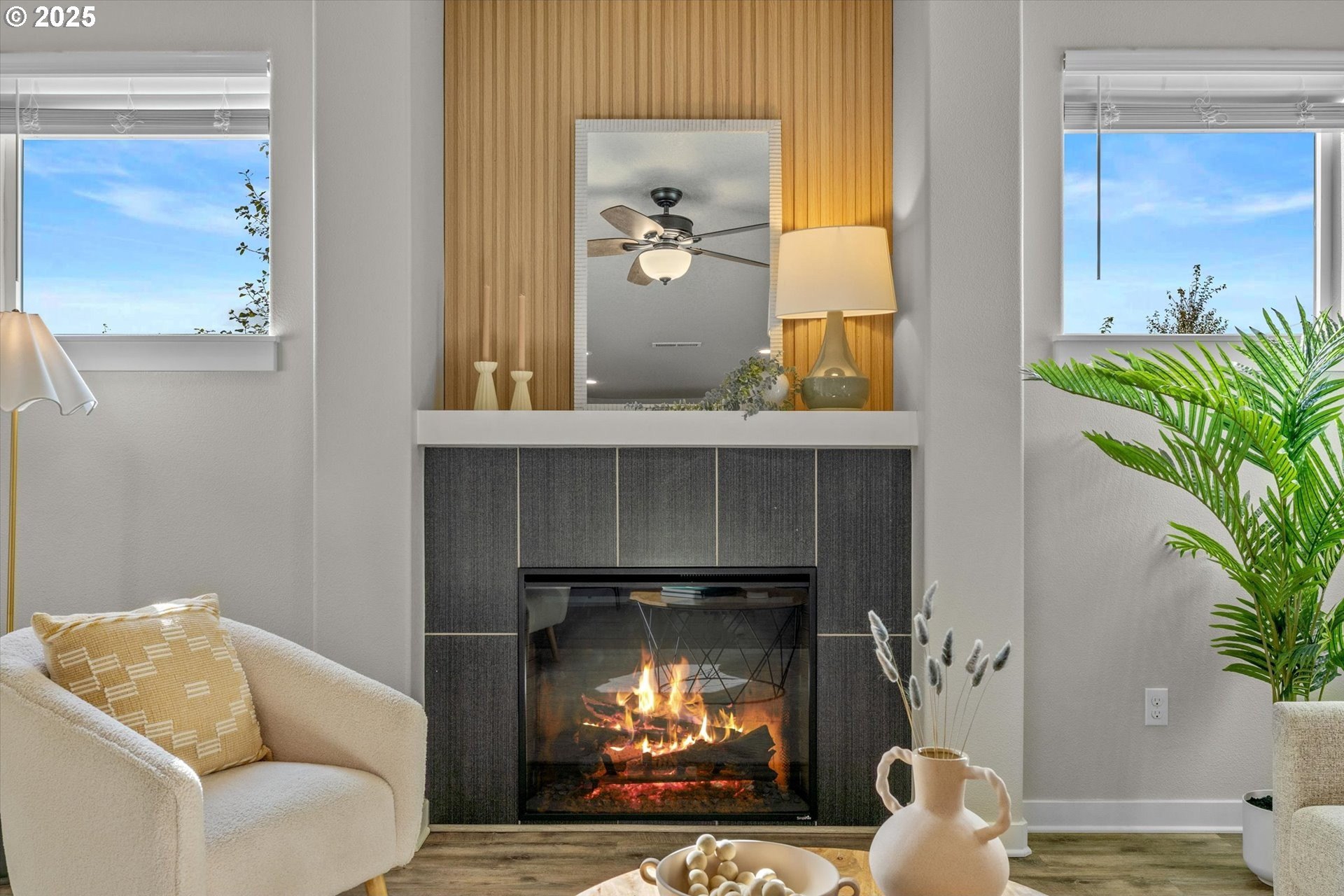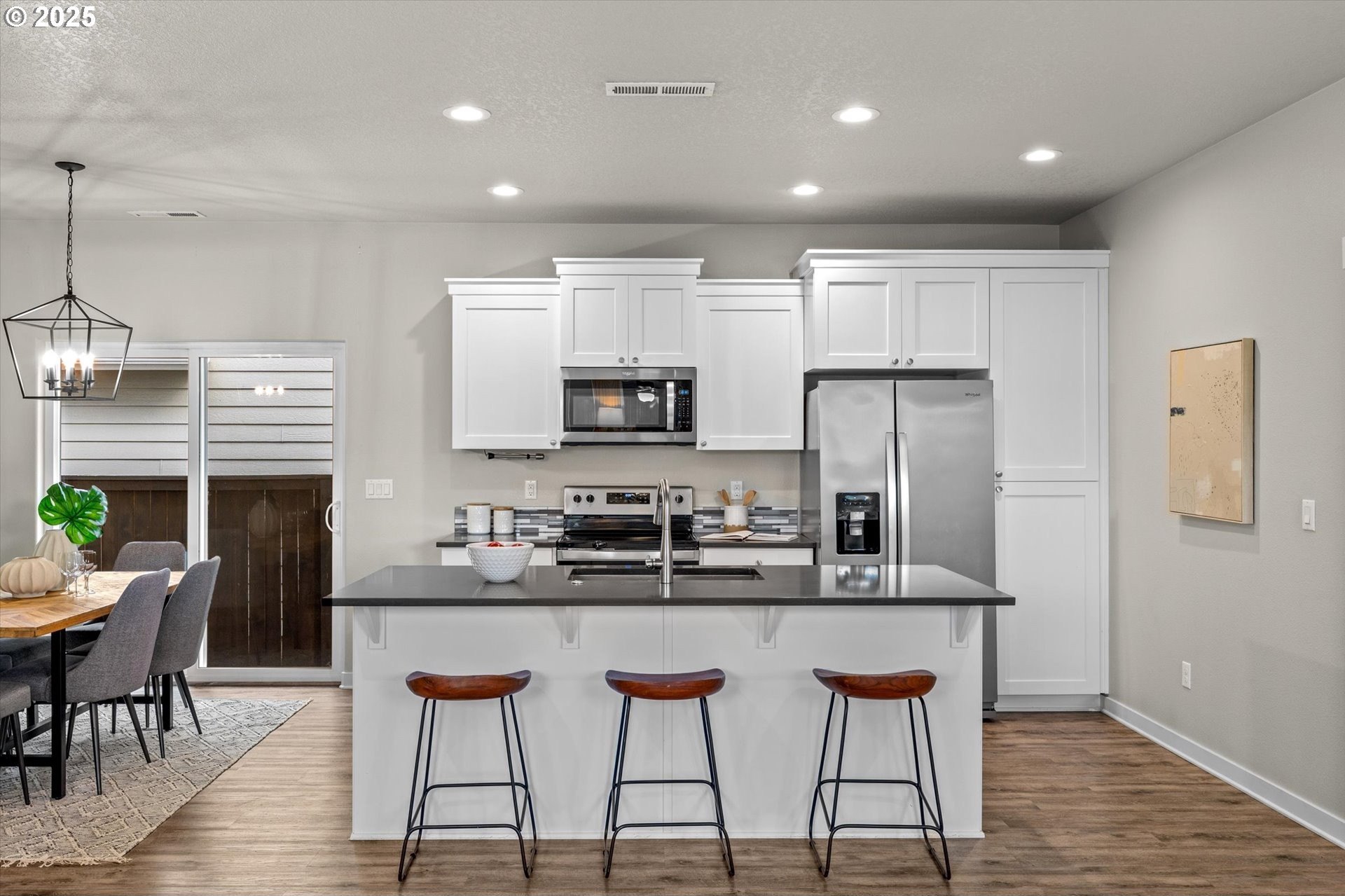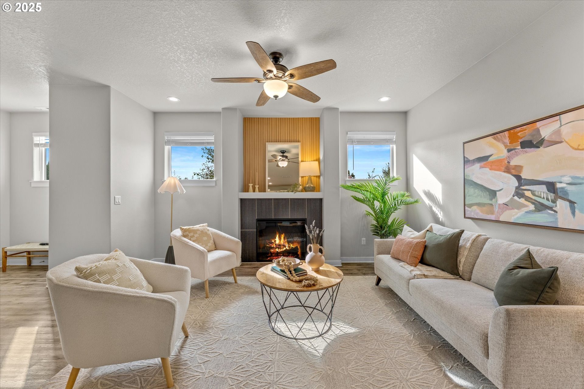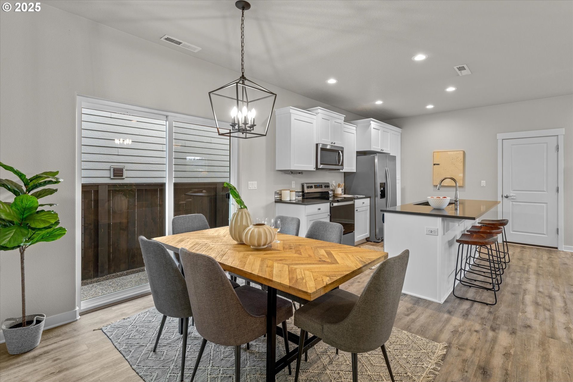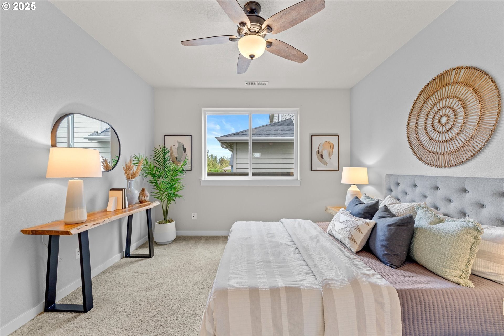 Welcome to this beautifully maintained newer construction home offering the perfect single-level layout on a desirable corner lot. Step inside to an open-concept floor plan filled with natural light, high ceilings, and stylish LVP flooring throughout the main living areas. The spacious kitchen is a true highlight—featuring a large island, stainless steel appliances, and a dedicated dining area that flows seamlessly to the backyard through a sliding glass door. Enjoy cozy evenings by the elegant gas fireplace or morning coffee on your private patio. The primary suite is a peaceful retreat with dual sinks, a walk-in closet, and a standing shower. Two additional bedrooms are conveniently located near a dedicated indoor laundry space for easy everyday living. You’ll appreciate the oversized garage with ample room for parking and storage. Located in the sought-after Campanella Estates community, this neighborhood is known for its welcoming atmosphere and close-knit feel. Enjoy nearby Wade Creek Park and its splash pad, Timber Park for water activities, the new community center, and local library. Explore neighborhood ponds, riding trails, and miles of paved walking and biking paths—everything you need is right at your doorstep! A perfect blend of comfort, style, and convenience—don’t miss your chance to call this stunning home your own!