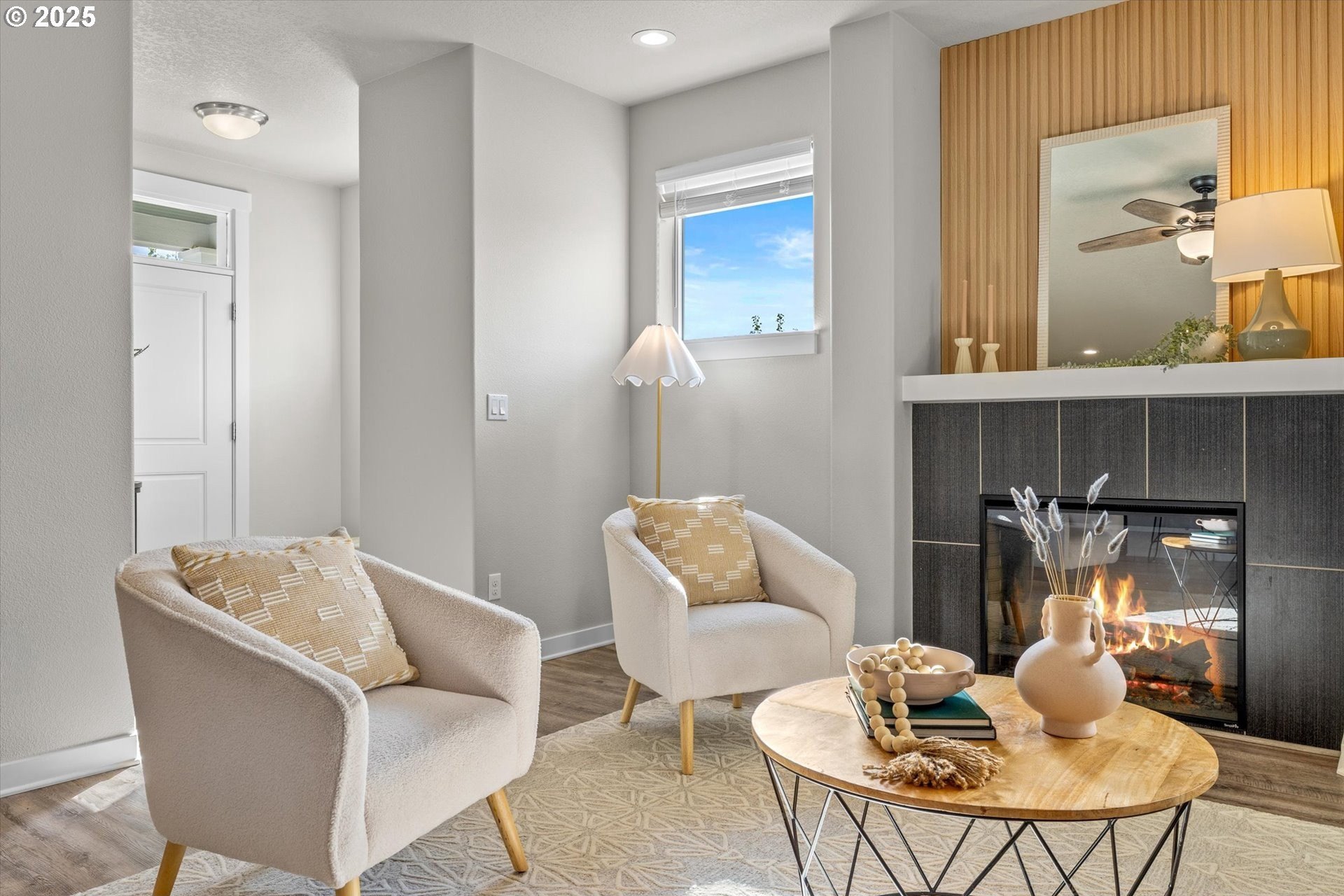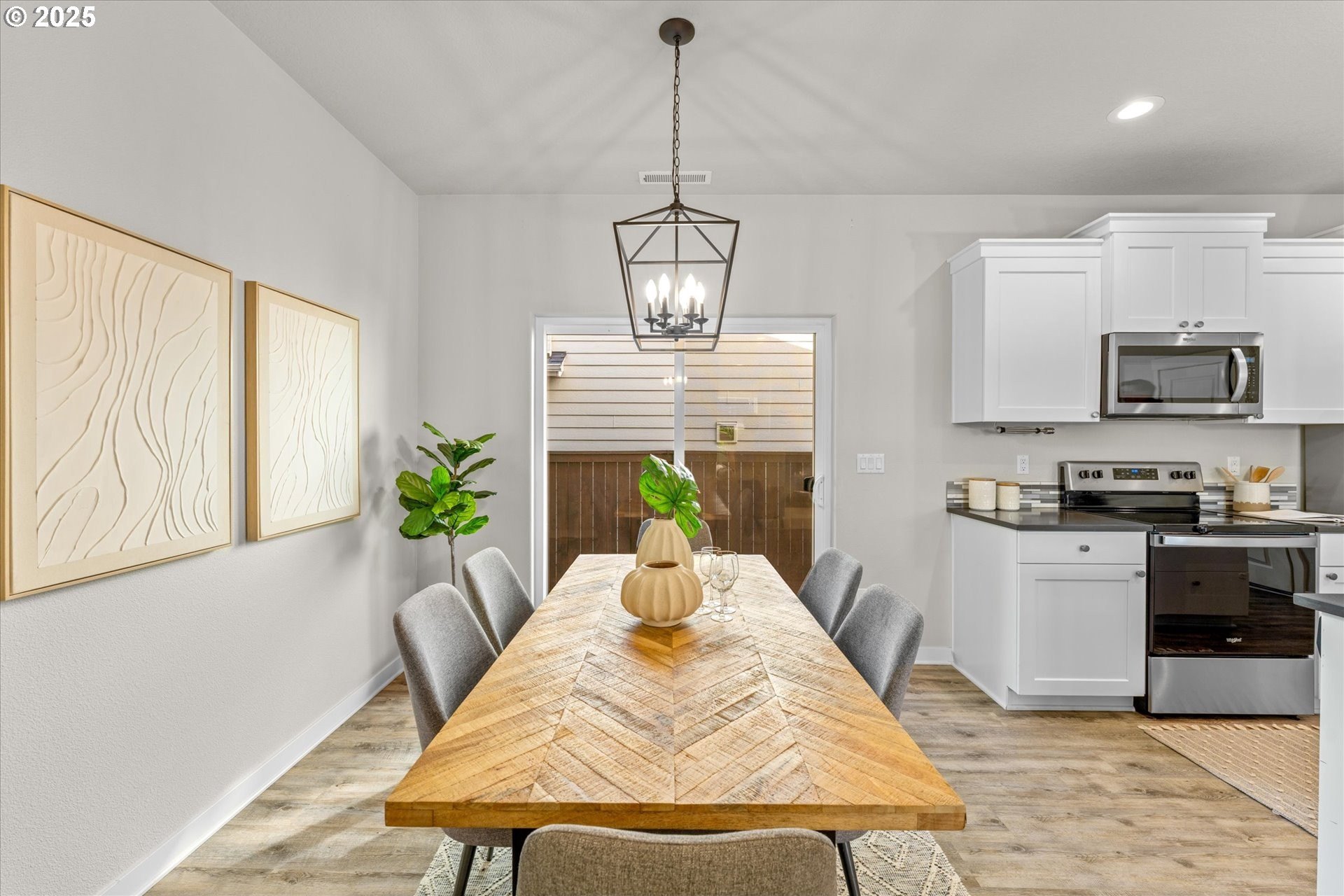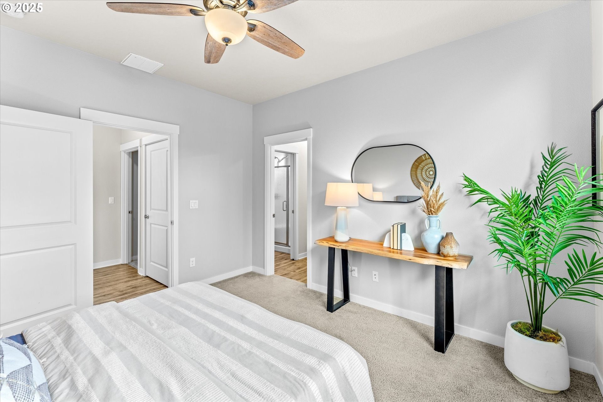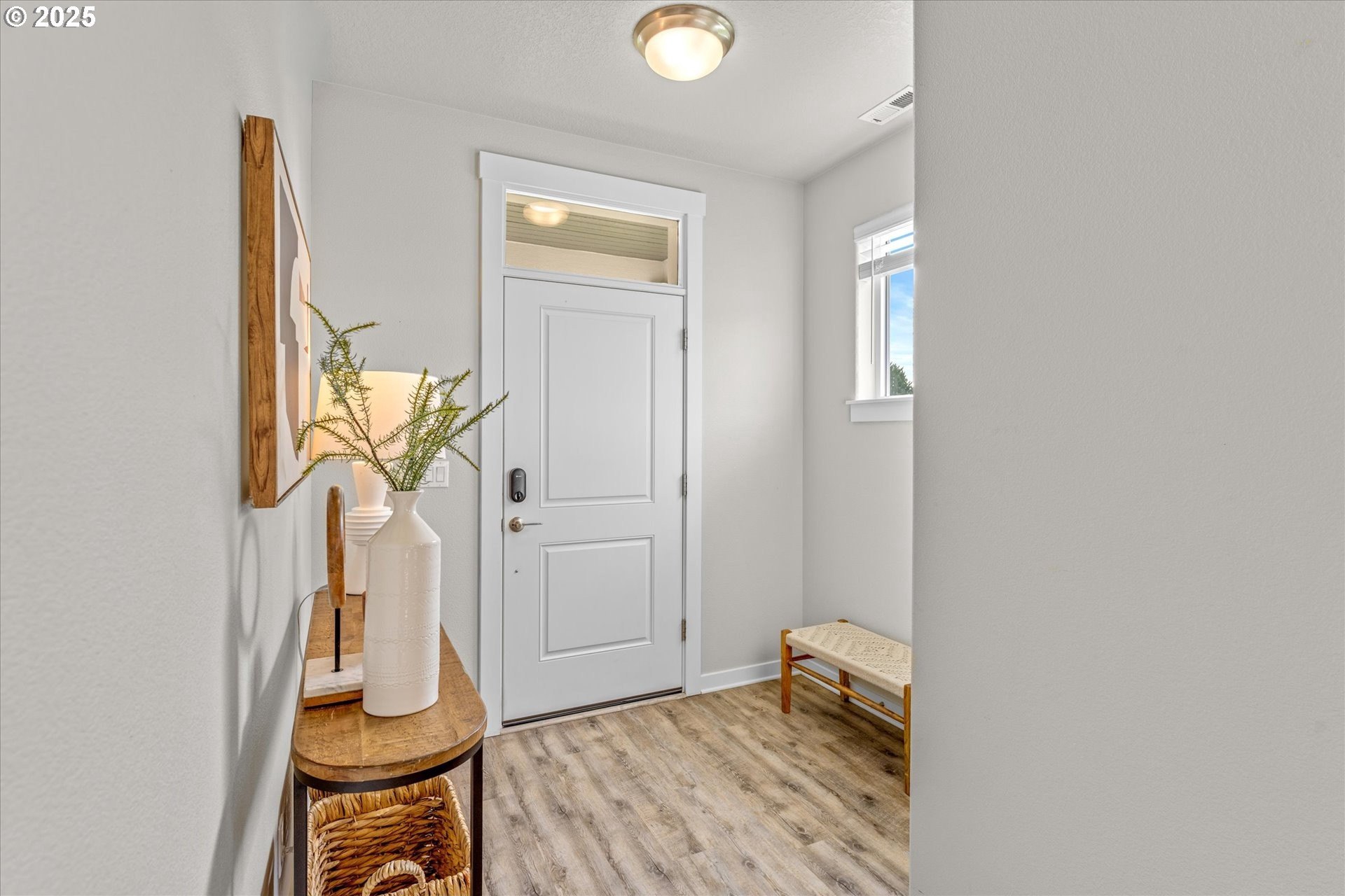 Welcome to this beautifully maintained newer construction home offering the perfect single-level layout on a desirable corner lot. Step inside to an open-concept floor plan filled with natural light, high ceilings, and stylish LVP flooring throughout the main living areas. The spacious kitchen is a true highlight—featuring a large island, stainless steel appliances, and a dedicated dining area that flows seamlessly to the backyard through a sliding glass door. Enjoy cozy evenings by the elegant gas fireplace or morning coffee on your private patio. The primary suite is a peaceful retreat with dual sinks, a walk-in closet, and a standing shower. Two additional bedrooms are conveniently located near a dedicated indoor laundry space for easy everyday living. You’ll appreciate the oversized garage with ample room for parking and storage. Located in the sought-after Campanella Estates community, this neighborhood is known for its welcoming atmosphere and close-knit feel. Enjoy nearby Wade Creek Park and its splash pad, Timber Park for water activities, the new community center, and local library. Explore neighborhood ponds, riding trails, and miles of paved walking and biking paths—everything you need is right at your doorstep! A perfect blend of comfort, style, and convenience—don’t miss your chance to call this stunning home your own!