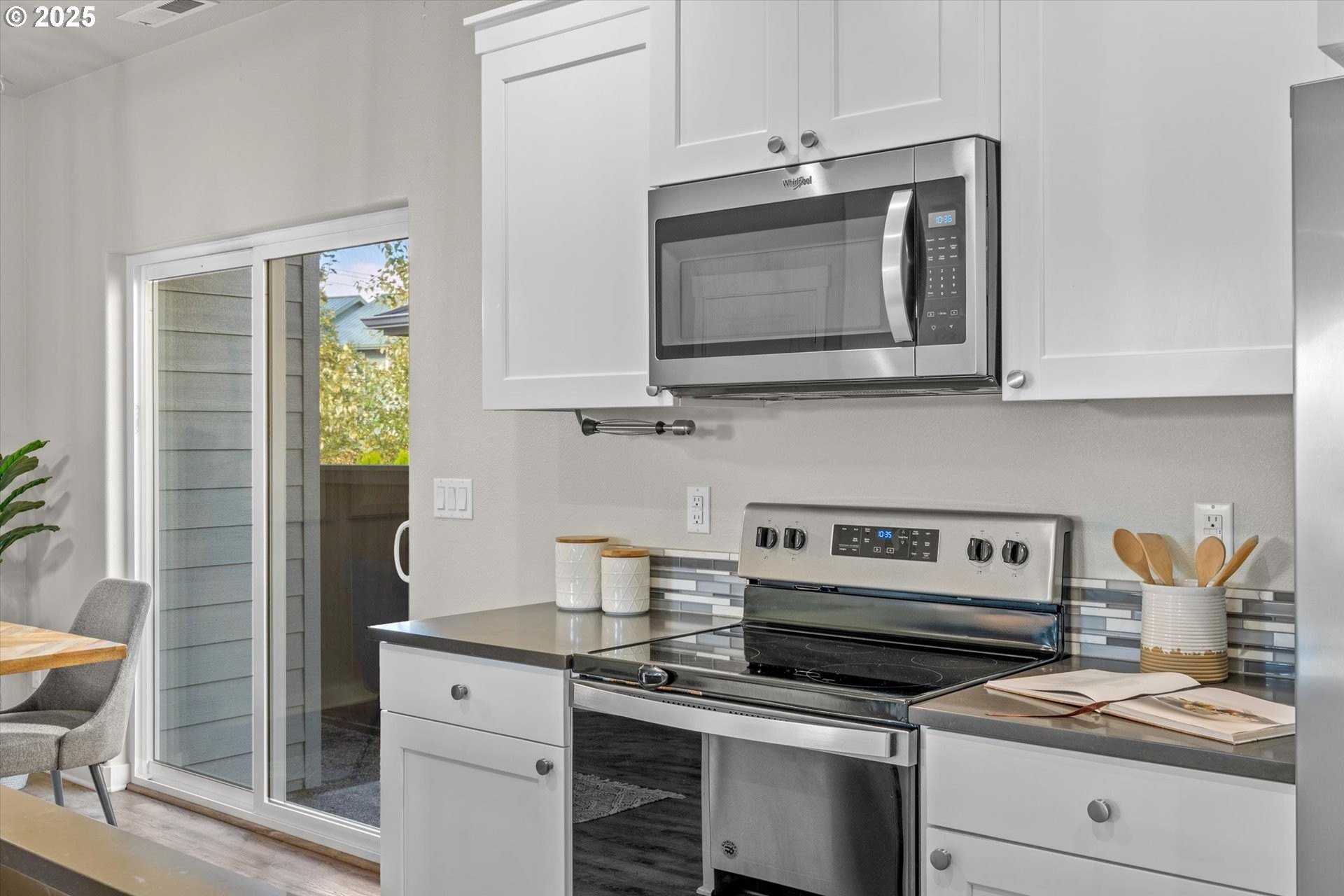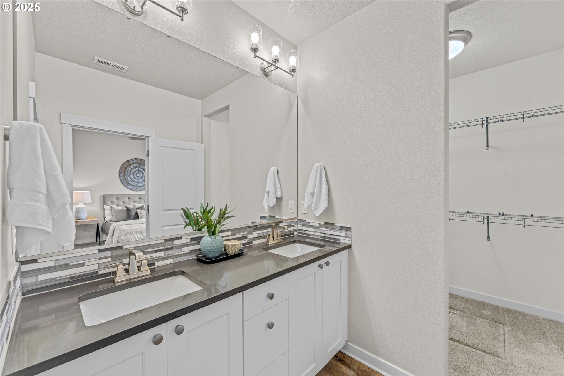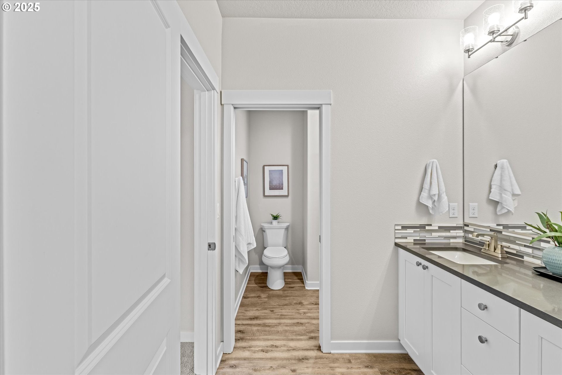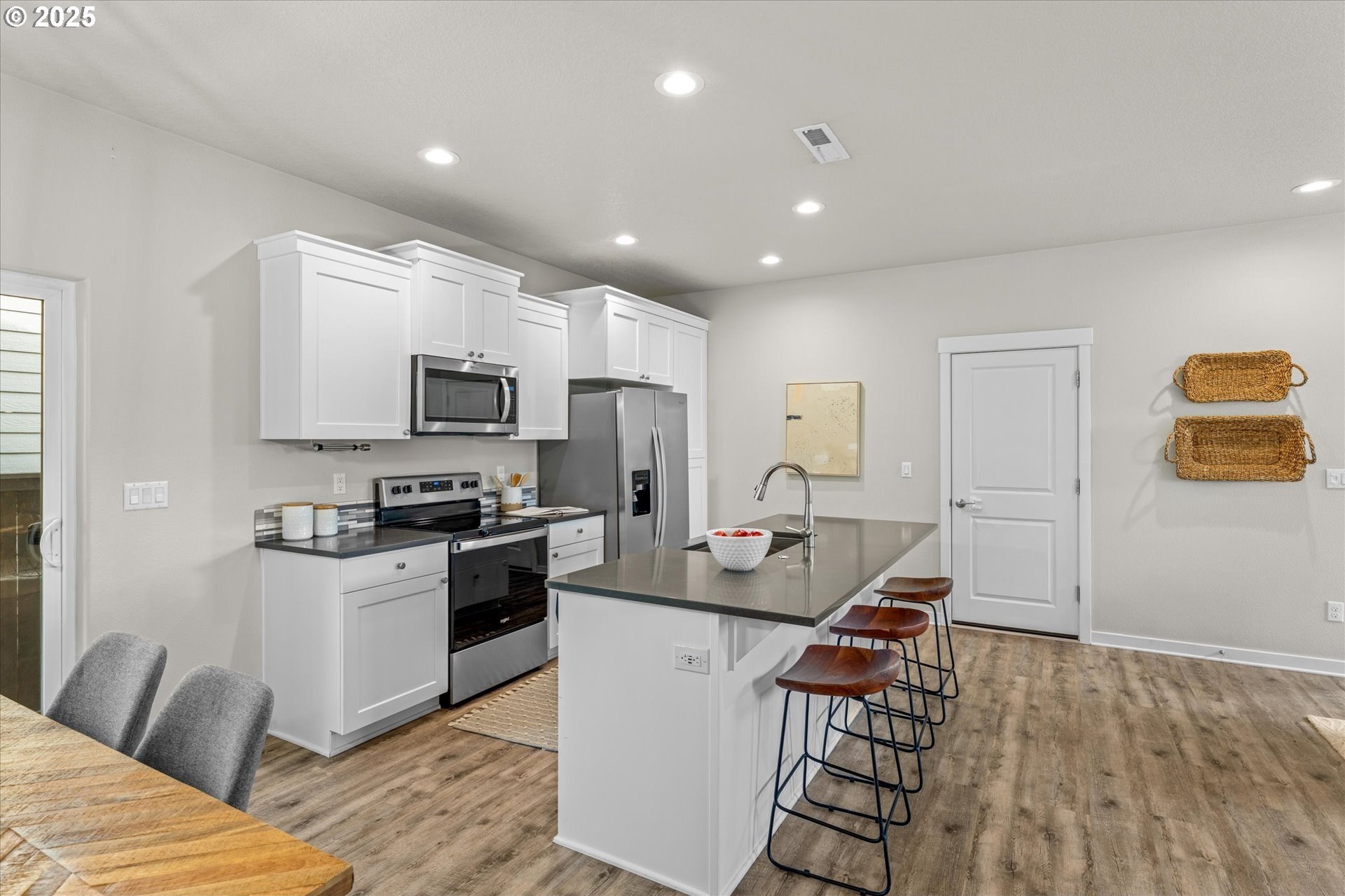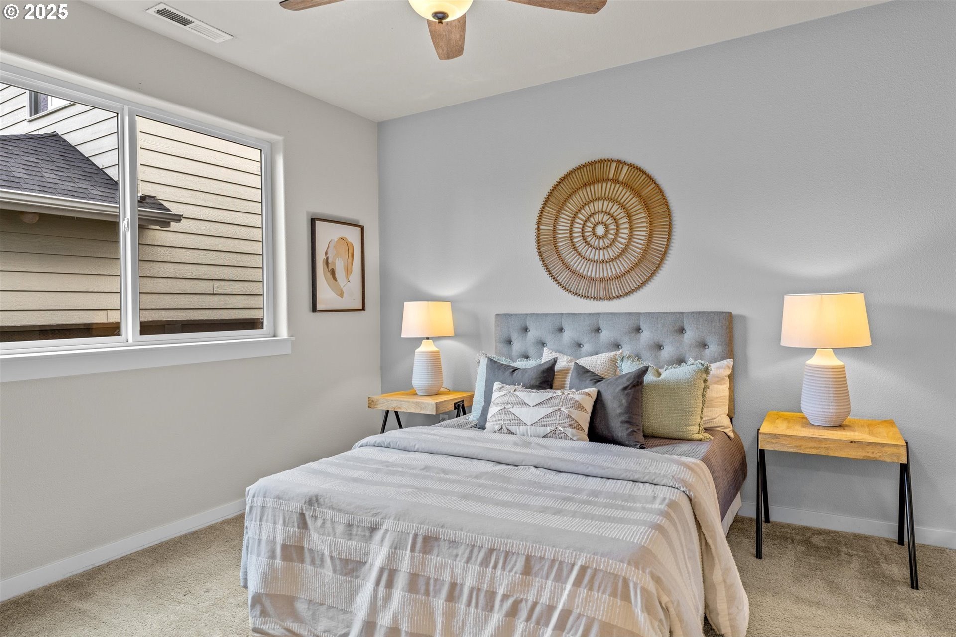 Welcome to this beautifully maintained newer construction home offering the perfect single-level layout on a desirable corner lot. Step inside to an open-concept floor plan filled with natural light, high ceilings, and stylish LVP flooring throughout the main living areas. The spacious kitchen is a true highlight—featuring a large island, stainless steel appliances, and a dedicated dining area that flows seamlessly to the backyard through a sliding glass door. Enjoy cozy evenings by the elegant gas fireplace or morning coffee on your private patio. The primary suite is a peaceful retreat with dual sinks, a walk-in closet, and a standing shower. Two additional bedrooms are conveniently located near a dedicated indoor laundry space for easy everyday living. You’ll appreciate the oversized garage with ample room for parking and storage. Located in the sought-after Campanella Estates community, this neighborhood is known for its welcoming atmosphere and close-knit feel. Enjoy nearby Wade Creek Park and its splash pad, Timber Park for water activities, the new community center, and local library. Explore neighborhood ponds, riding trails, and miles of paved walking and biking paths—everything you need is right at your doorstep! A perfect blend of comfort, style, and convenience—don’t miss your chance to call this stunning home your own!