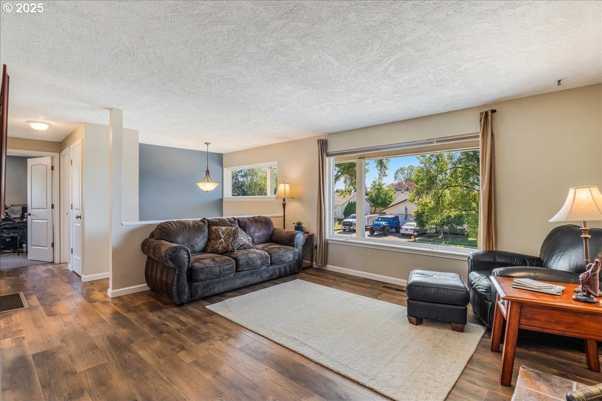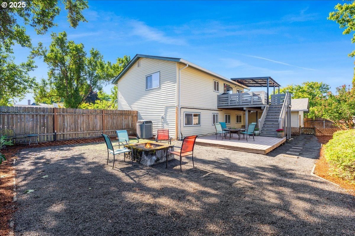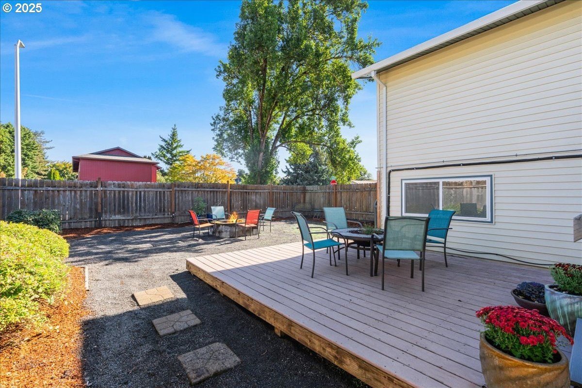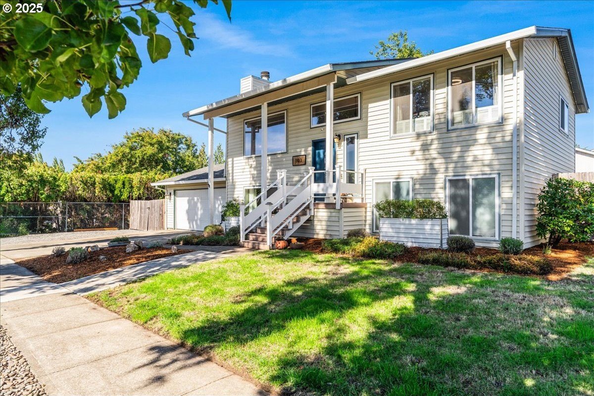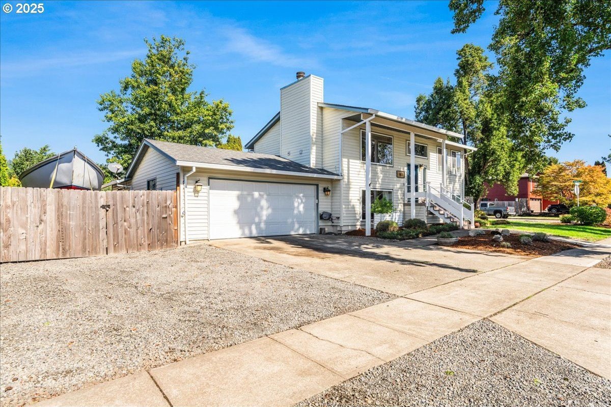 Open Saturday 12:00-3:00! Situated on a corner lot, this 3 bed/2 bath home with a remodeled kitchen and two separate living spaces has a fully fenced backyard, large attached two car garage, additional shop space and plenty of room to park an RV or boat all on the north side of Newberg with no HOA and in close proximity to schools and parks. This split-level home has been completely updated with LVT flooring throughout the main living areas, vinyl windows, a roof that’s less than 10 years old, newer water heater and has the option to come with all the appliances. The downstairs contains a large primary suite with a full bath and huge walk-in closet. Just off the primary is a living and office area along with the separate laundry room, extra closet for storage along with access to the garage and 15’x18’ finished shop/flex space. Upstairs has two additional bedrooms, a full bathroom, wood burning fireplace and kitchen with quartz countertops and stainless steel appliances. Just off the kitchen is a slider that leads to a covered deck which has stairs down to a lower deck, fire pit and big backyard. With both communal and distinct spaces in this home and with the possibility of turning the shop room into an ADU, this property is well suited for multigenerational living, hosting/entertaining or for anyone who just appreciates having a home with different functional areas. Schedule a tour of this home and see all of its possibilities!