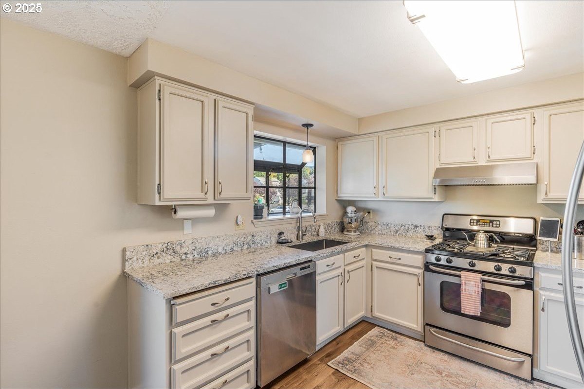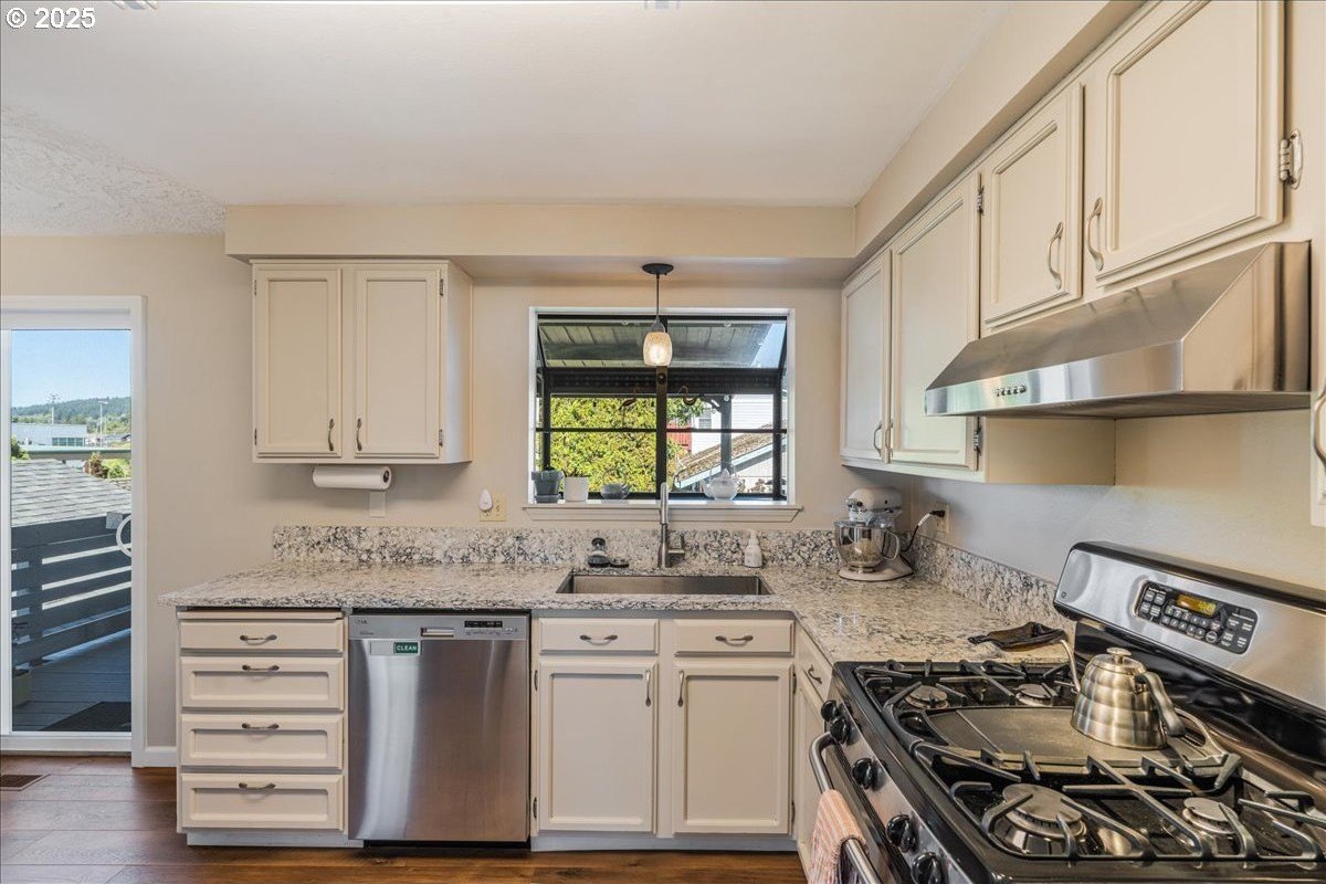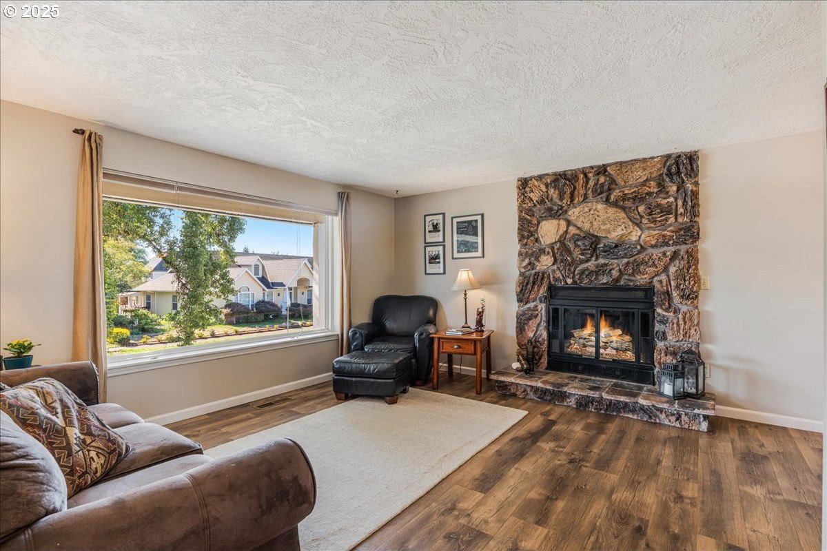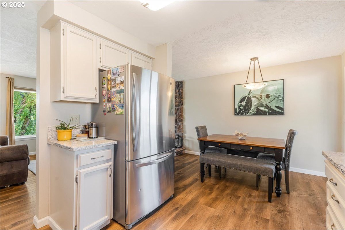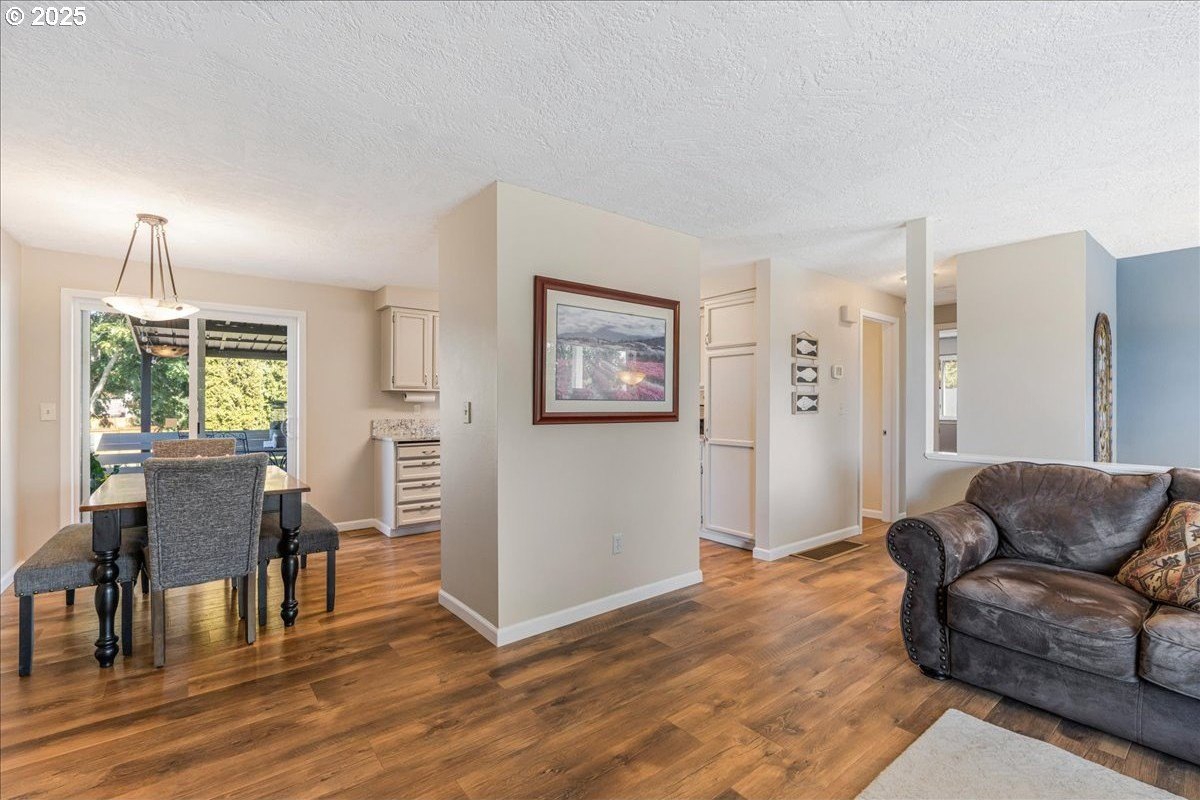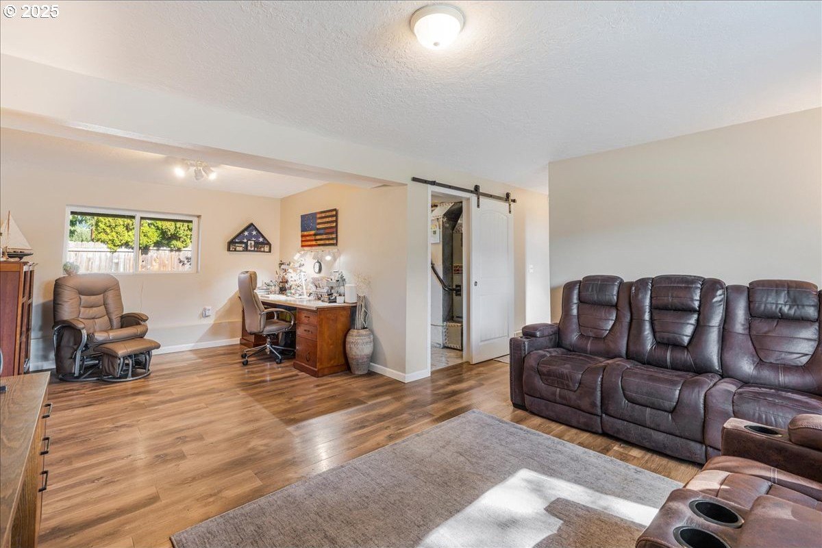 Open Saturday 12:00-3:00! Situated on a corner lot, this 3 bed/2 bath home with a remodeled kitchen and two separate living spaces has a fully fenced backyard, large attached two car garage, additional shop space and plenty of room to park an RV or boat all on the north side of Newberg with no HOA and in close proximity to schools and parks. This split-level home has been completely updated with LVT flooring throughout the main living areas, vinyl windows, a roof that’s less than 10 years old, newer water heater and has the option to come with all the appliances. The downstairs contains a large primary suite with a full bath and huge walk-in closet. Just off the primary is a living and office area along with the separate laundry room, extra closet for storage along with access to the garage and 15’x18’ finished shop/flex space. Upstairs has two additional bedrooms, a full bathroom, wood burning fireplace and kitchen with quartz countertops and stainless steel appliances. Just off the kitchen is a slider that leads to a covered deck which has stairs down to a lower deck, fire pit and big backyard. With both communal and distinct spaces in this home and with the possibility of turning the shop room into an ADU, this property is well suited for multigenerational living, hosting/entertaining or for anyone who just appreciates having a home with different functional areas. Schedule a tour of this home and see all of its possibilities!