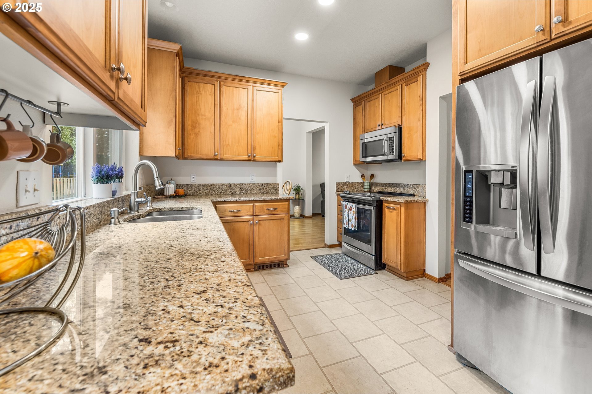 Nestled on an exceptionally private lot that backs directly to Jaquith Park, this beautifully maintained home offers rare seclusion in a prime Newberg location. Surrounded by mature trees and lush landscaping, the wooded backyard features two spacious decks—perfect for relaxing or entertaining in nature’s serenity.Inside, abundant natural light fills an inviting open floor plan. The updated kitchen with granite countertops, modern fixtures, and a new sliding glass door connects seamlessly to the outdoors. The spacious family room centers around a cozy wood-burning fireplace, while the oversized fourth bedroom offers flexible use as a media room, playroom, or home office.Fresh interior paint, newer flooring, and refreshed finishes make this home move-in ready. The mature landscaping enhances both privacy and functionality. Backing to Jaquith Park—with trails, sports fields, and playgrounds right behind the home—this property delivers a perfect balance of tranquility and convenience, just minutes from shopping, schools, and George Fox University.Bonus: Seller is offering a transferable Home Warranty for added peace of mind.