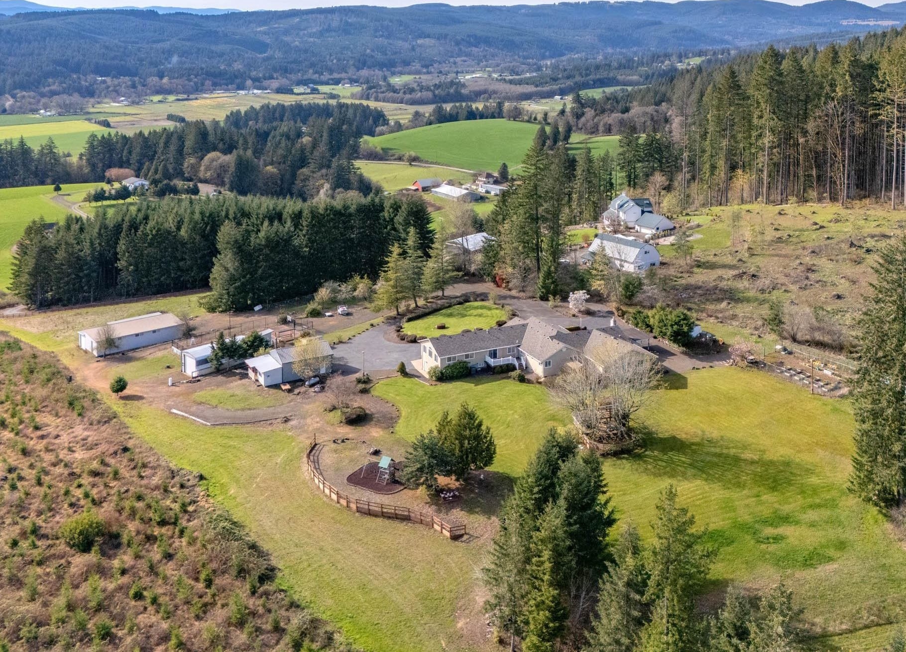 Bring all of your toys! This incredible 10.17-acre property offers a sprawling 4700sqft home with an attached 3-car garage plus multiple outbuildings, including a 36X60 shop, 18X40 enclosed RV storage, 24X40 hobby building, and a sports court with a 1/2 bathroom. As you approach the home up the paved, gated drive, you are greeted by large parking areas ideal for trailers, equipment, and large gatherings. The home has been well-maintained and custom-built by the current owner, taking into account the ease of single-level living, large family gathering areas, wide hallways, and large windows accentuating the amazing valley views and the peaceful setting. You will find quality materials such as hardwood floors and a professional gas Viking range plus a 3-zone heat system that assures even temperature control throughout the house. The outside space is so beautiful with lush lawns, expansive garden areas, entertaining space, plus nature trails, ATV trails and a target range. The owner has made sure there is an adequate water supply by drilling 2 wells, one with high-quality water for the house, and one for the landscaping and backup for the house. This tranquil property is located in the friendly, rural community of Mountaindale just a few miles from Hwy 26, the renowned Pumpkin Ridge Golf Course and the charming town of North Plains.