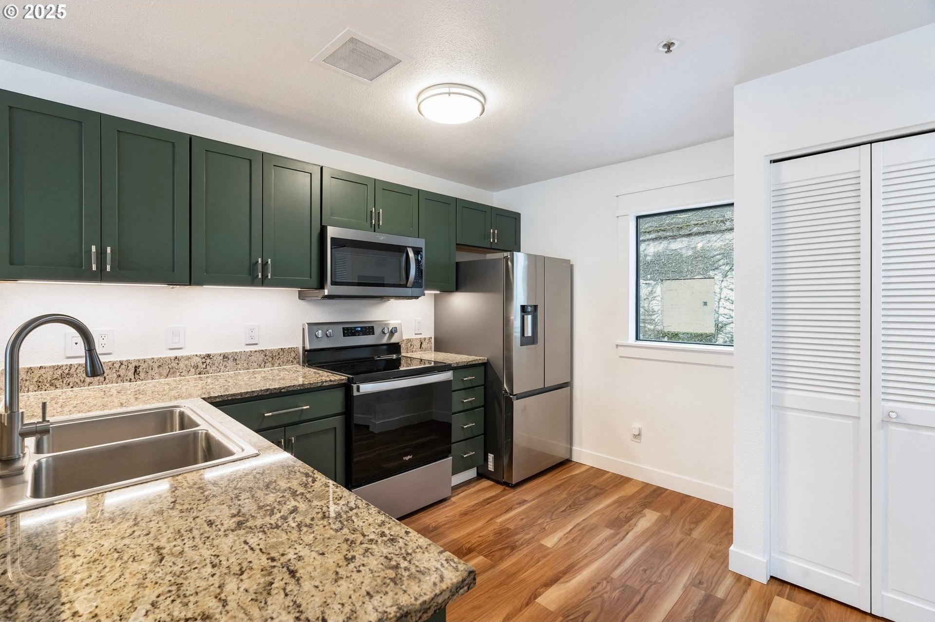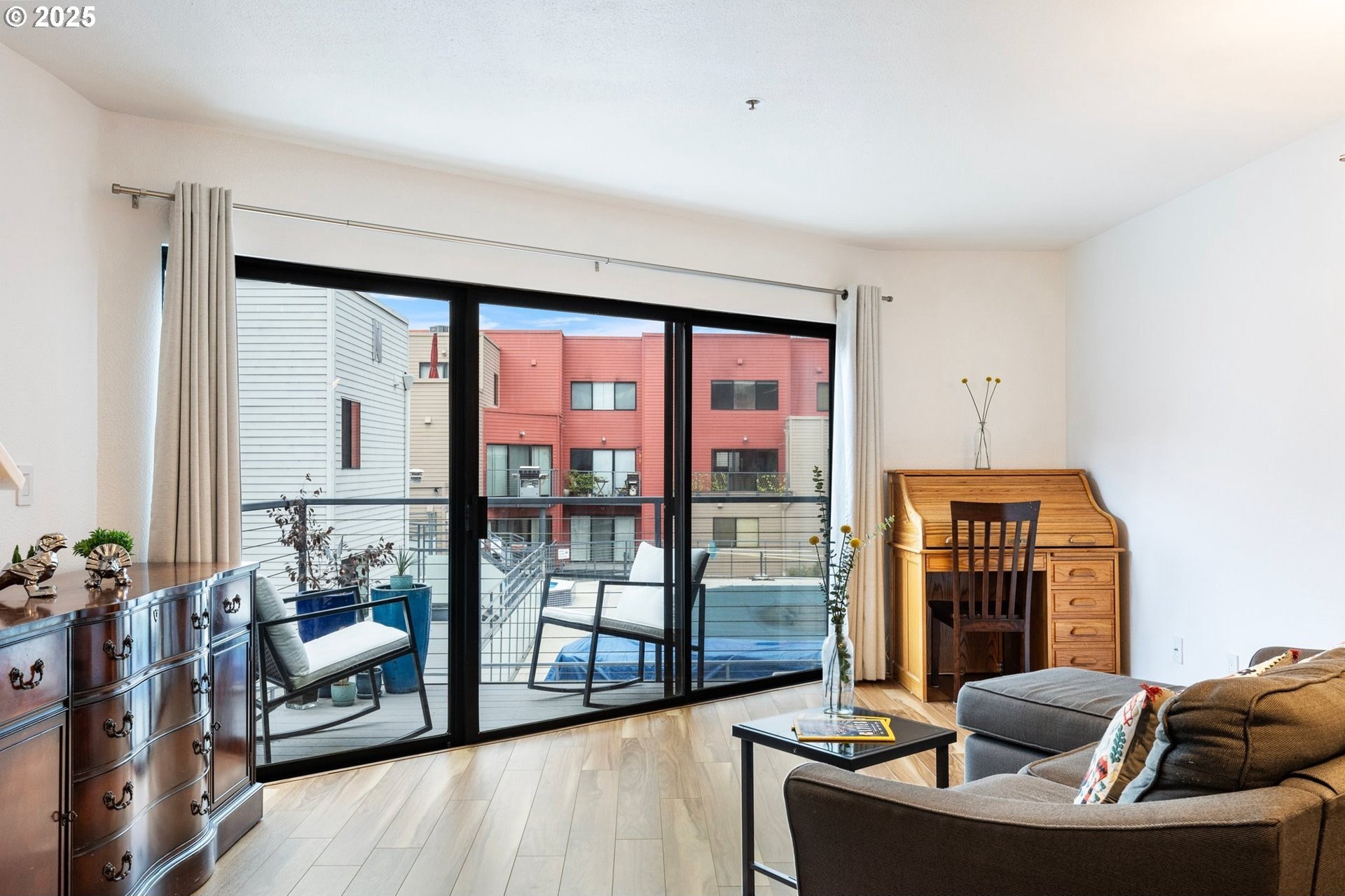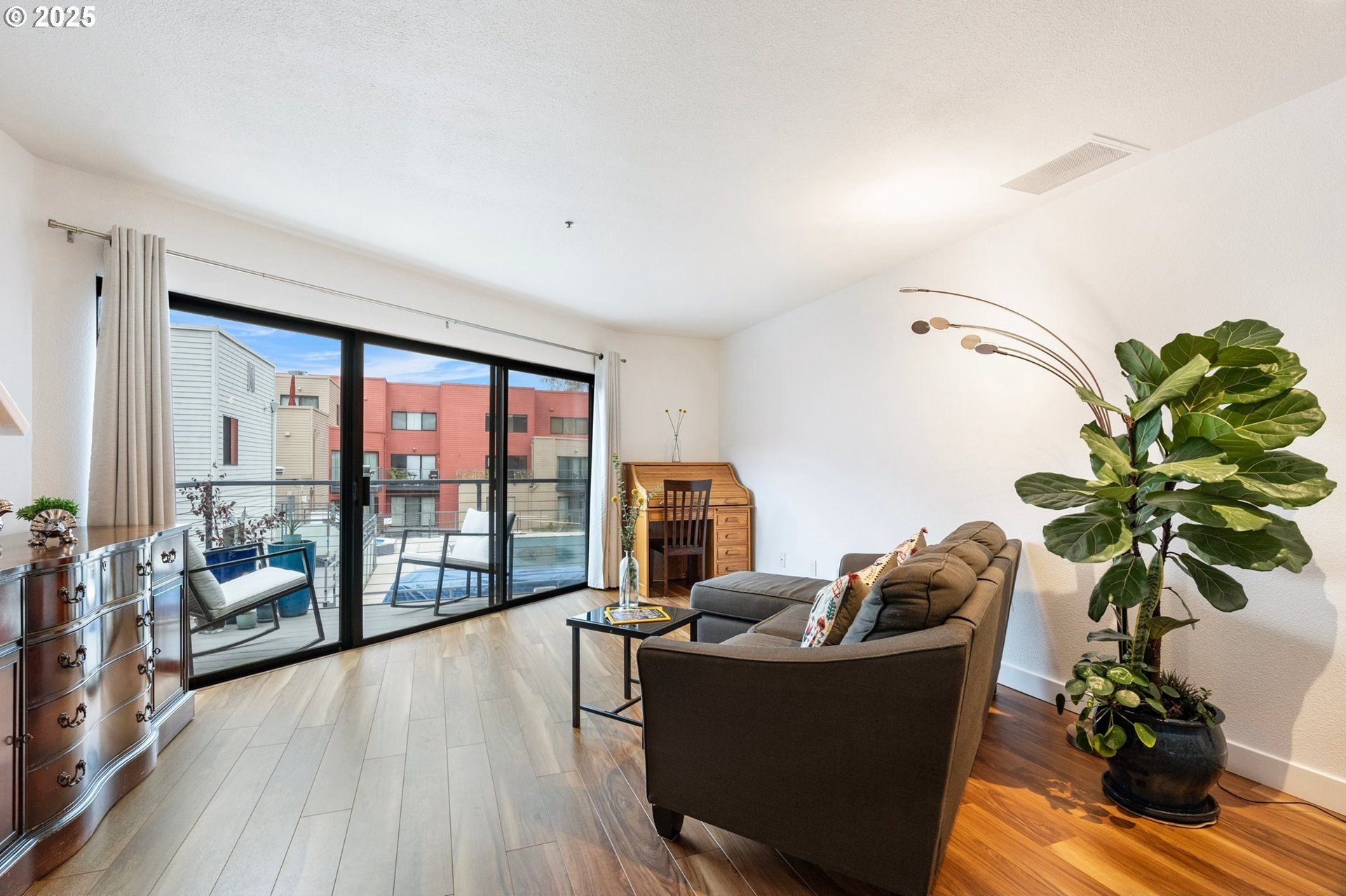 South facing second story condo with lots of natural light! The condo has recently been completely remodeled, with central AC/heat. The upgraded kitchen boasts a huge built-in pantry with ample storage, freshly painted cabinetry, granite counter tops, eating bar, and new stainless steel appliances. New vinyl hardwood floors throughout the entire unit. Patio off the living room overlooks the quiet community pool, which includes a hot tub open year-round. Upstairs you'll find newer full size in unit washer/dryer, updated bathroom and large bedroom. Deeded, off street parking included. Convenient to bus lines, light rail, shopping, restaurants, bike paths, and the river. HOA includes exterior maintenance, pool and hot tub, community grills, water, hot water, sewer, trash, onsite overnight security 6pm to 6am seven days a week, and on call security24/7. Investors: no rental cap, can be rented with 30 day minimum rental, buyer due diligence.