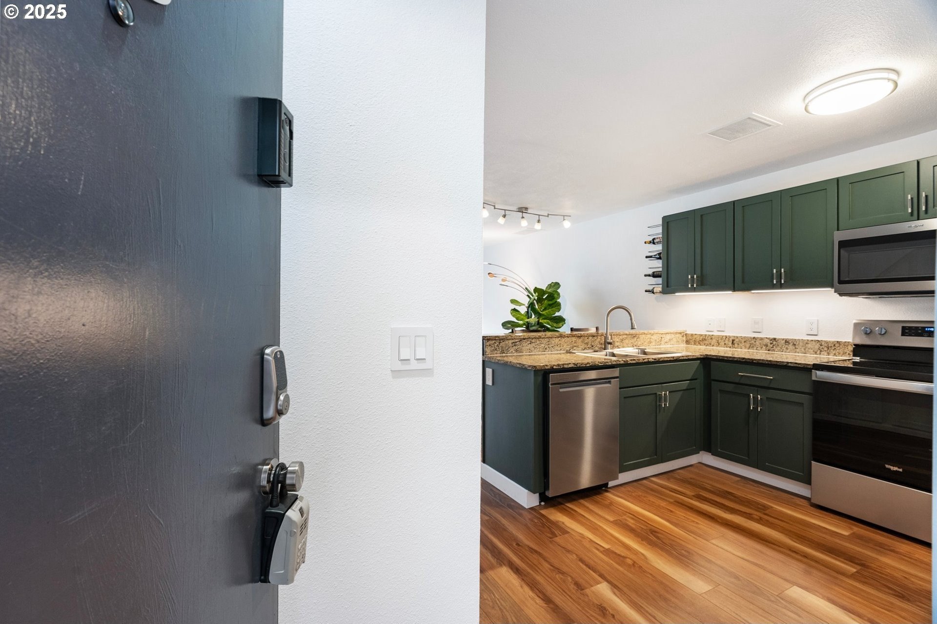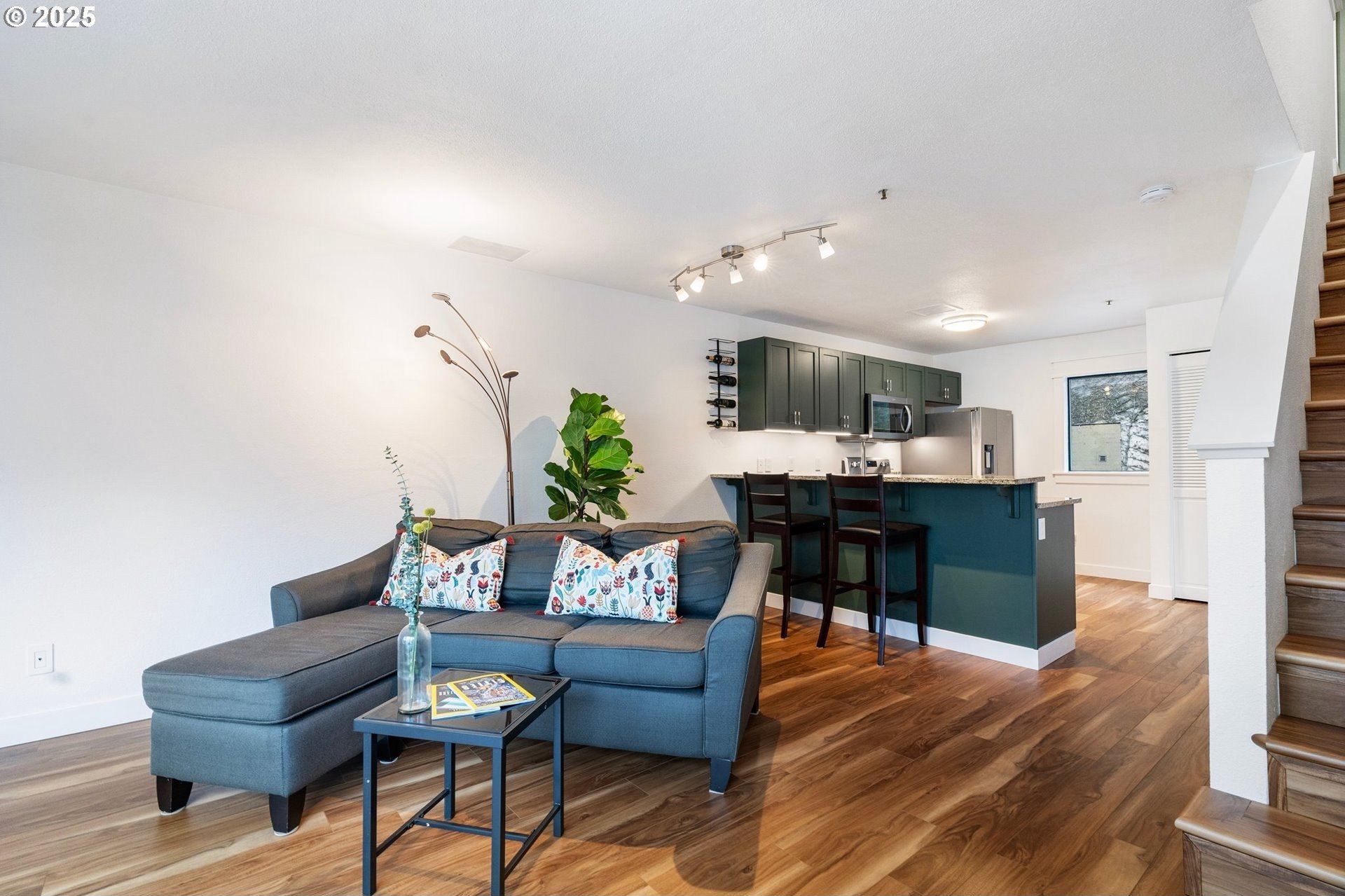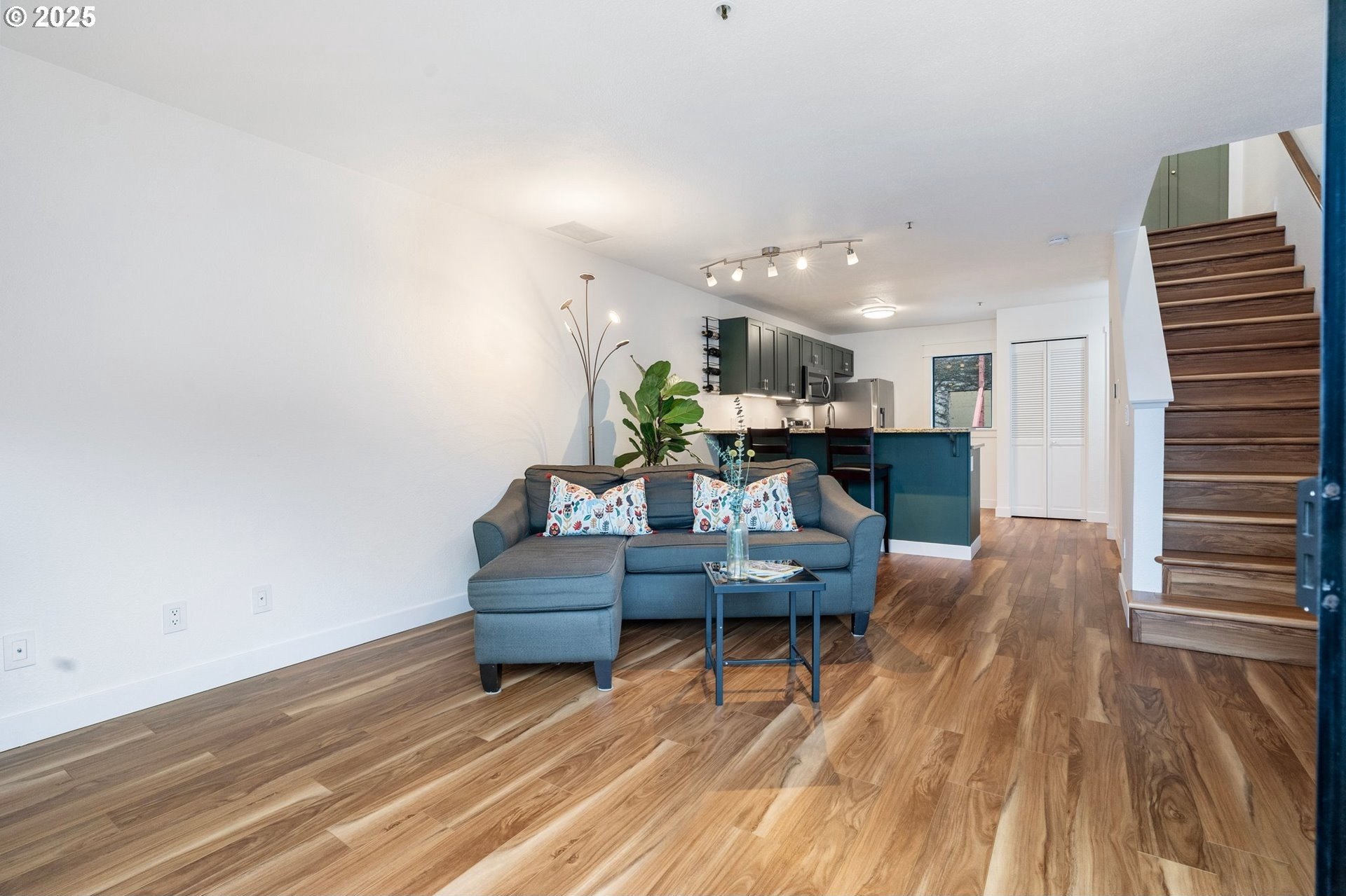 South facing second story condo with lots of natural light! The condo has recently been completely remodeled, with central AC/heat. The upgraded kitchen boasts a huge built-in pantry with ample storage, freshly painted cabinetry, granite counter tops, eating bar, and new stainless steel appliances. New vinyl hardwood floors throughout the entire unit. Patio off the living room overlooks the quiet community pool, which includes a hot tub open year-round. Upstairs you'll find newer full size in unit washer/dryer, updated bathroom and large bedroom. Deeded, off street parking included. Convenient to bus lines, light rail, shopping, restaurants, bike paths, and the river. HOA includes exterior maintenance, pool and hot tub, community grills, water, hot water, sewer, trash, onsite overnight security 6pm to 6am seven days a week, and on call security24/7. Investors: no rental cap, can be rented with 30 day minimum rental, buyer due diligence.