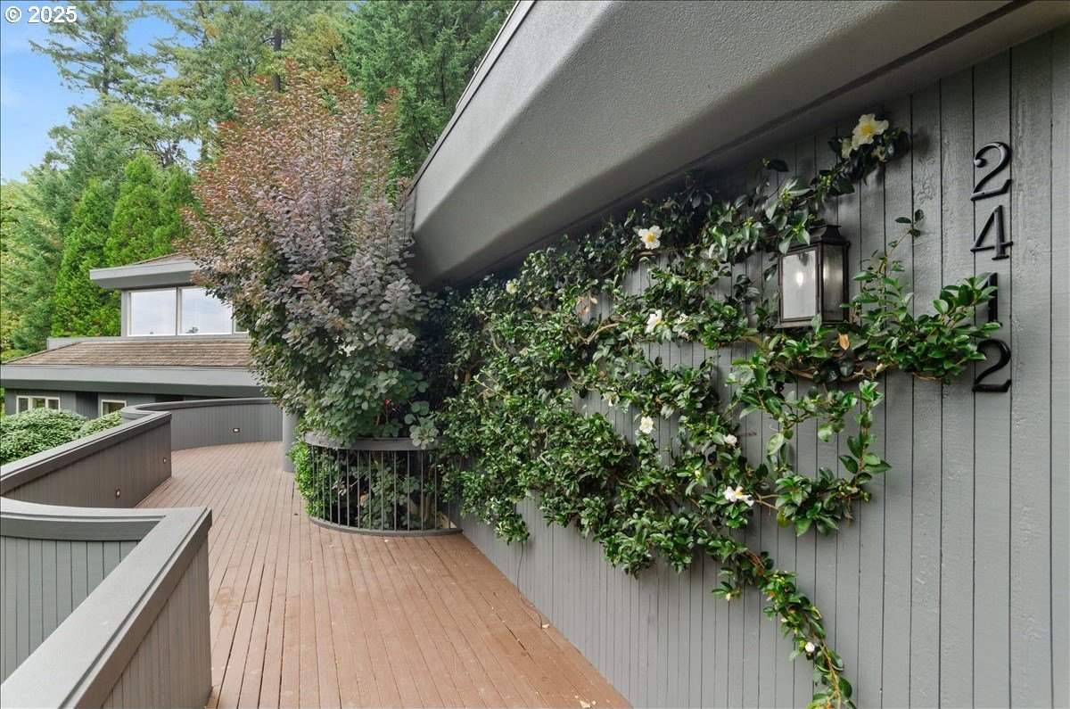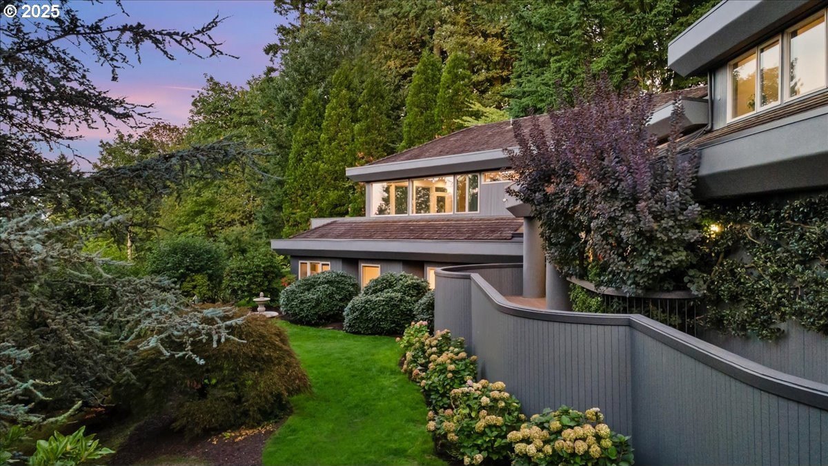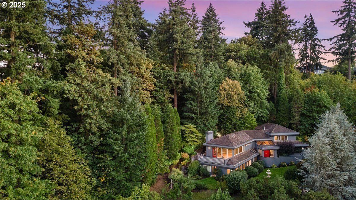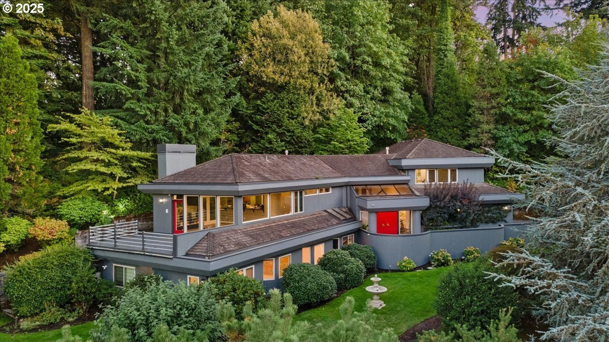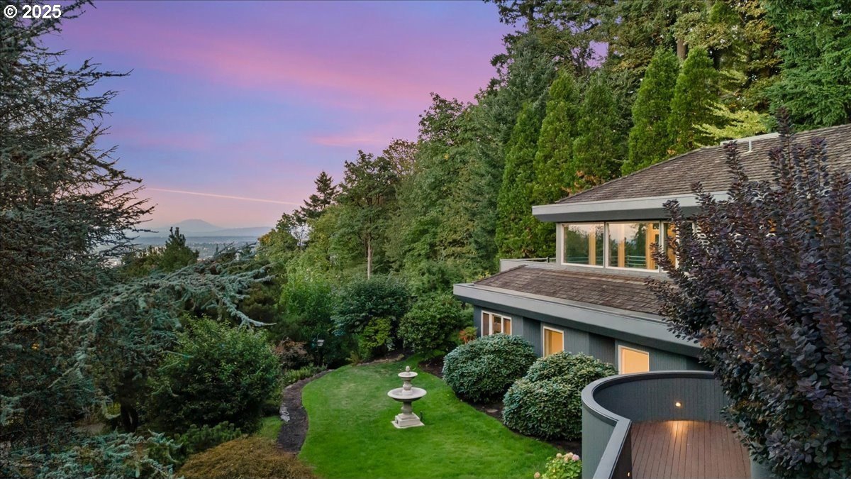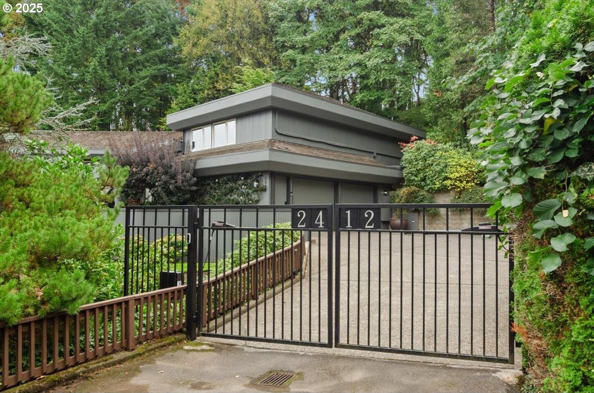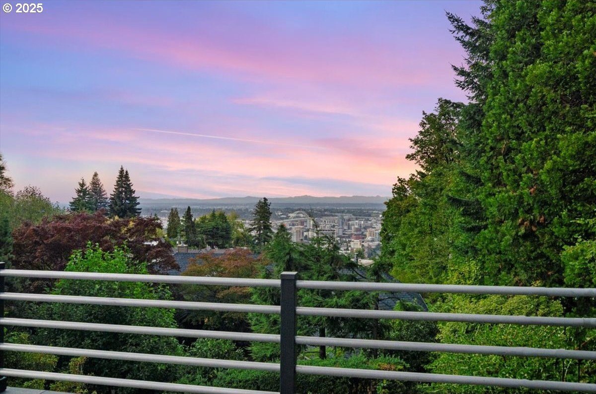 Live effortlessly in this one-of-a-kind Portland Heights residence, a home that blends contemporary urban design with natural serenity. Thoughtfully planned and superbly executed by renowned Oregon designer Steve Van Sant, this property showcases generous rooms, handsome built-ins, and walls of windows framing breathtaking views of the city and mountains. Perfectly positioned at the end of a private drive and bordering protected woodlands, the home offers rare privacy and elegance. The gated exterior offers a level lawn, expansive decks, and lush gardens—an ideal setting to enjoy the beauty of the natural surroundings. Distinguished by architectural detail, refined finishes, and seamless integration with its natural setting, this property offers both artistic sophistication and timeless comfort—while being only minutes from parks, trails, downtown, hospitals, schools, NW Portland, and the high-tech corridor. [Home Energy Score = 4. HES Report at https://rpt.greenbuildingregistry.com/hes/OR10026654]