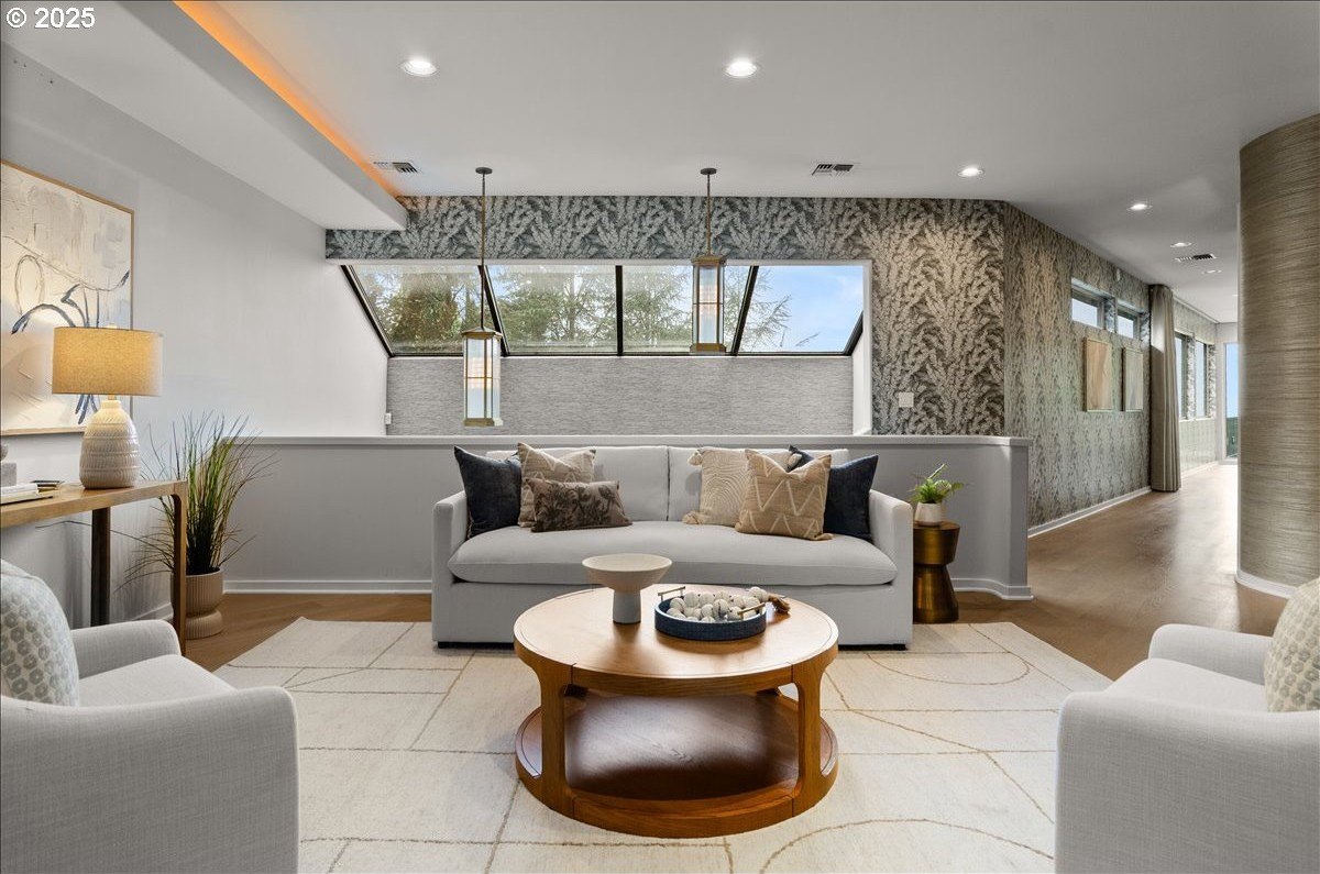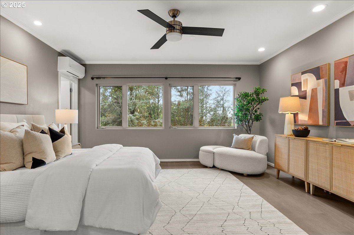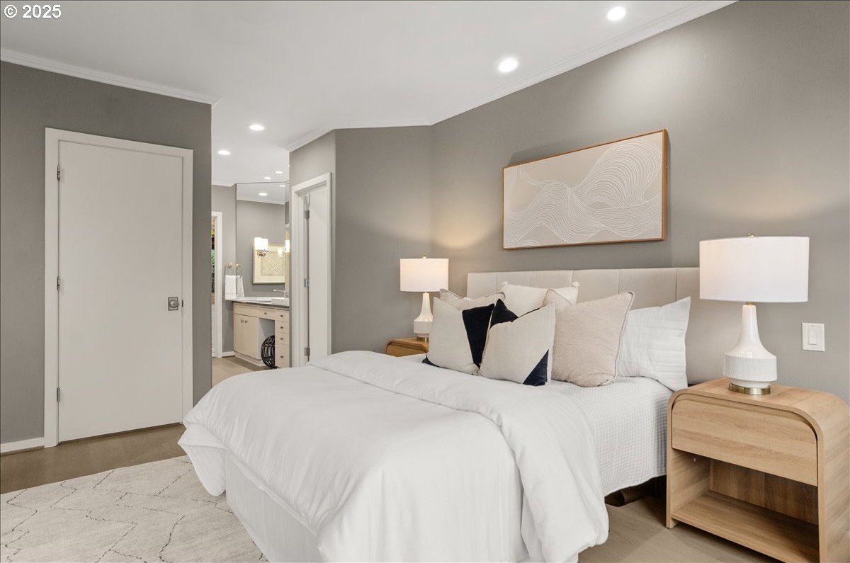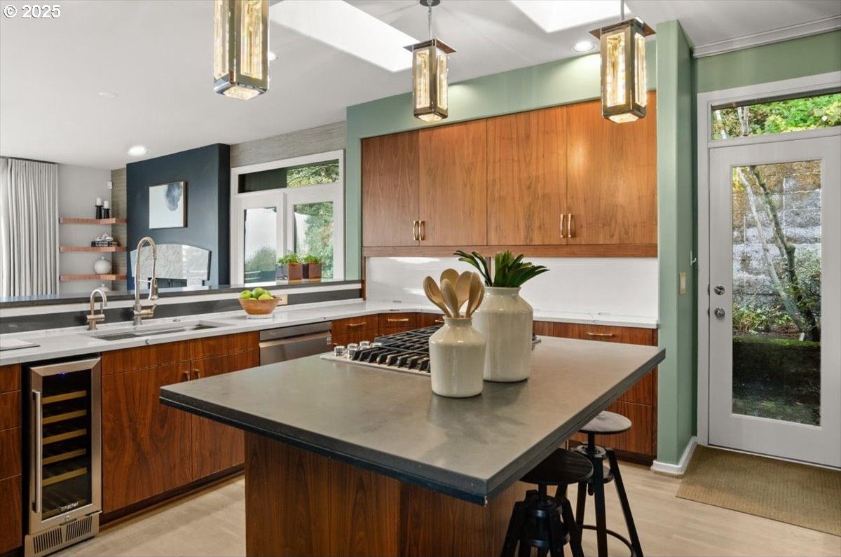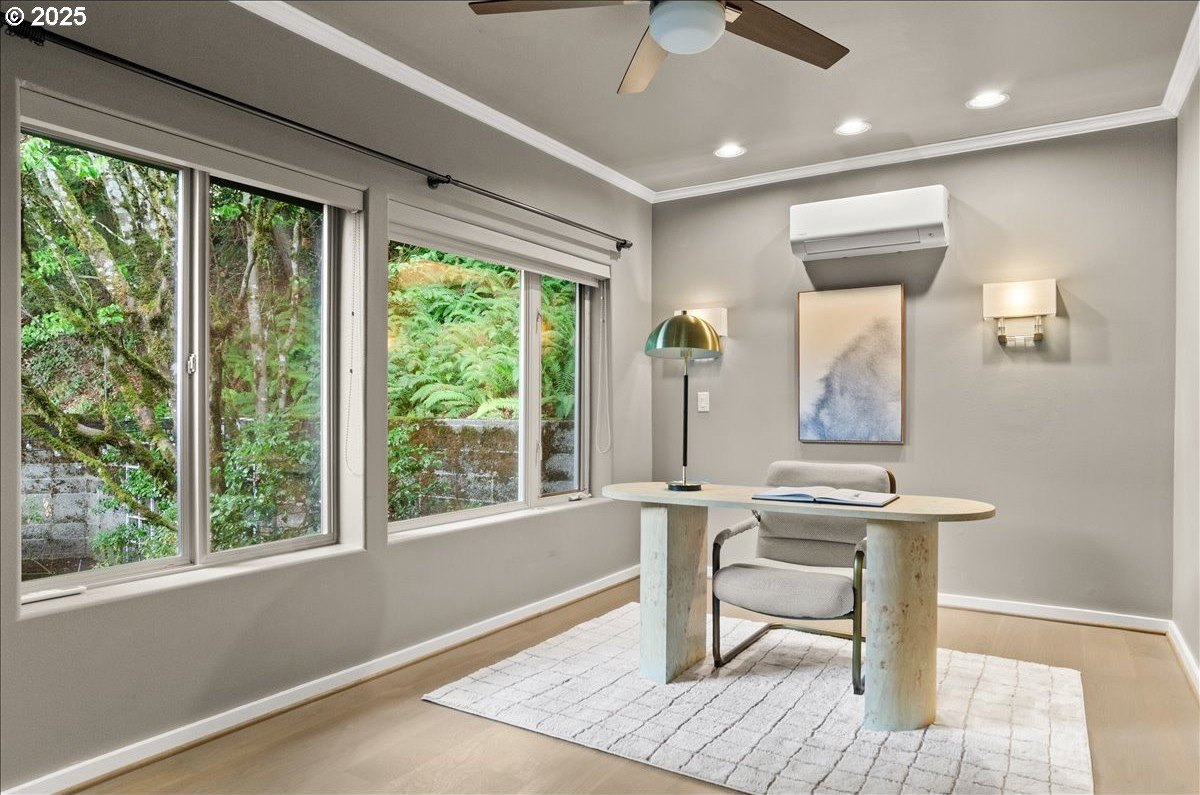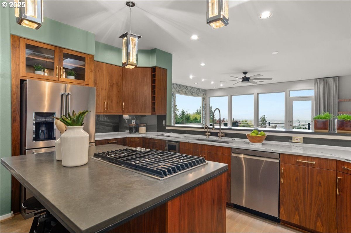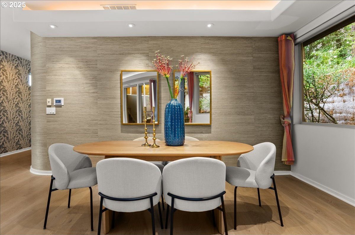 Live effortlessly in this one-of-a-kind Portland Heights residence, a home that blends contemporary urban design with natural serenity. Thoughtfully planned and superbly executed by renowned Oregon designer Steve Van Sant, this property showcases generous rooms, handsome built-ins, and walls of windows framing breathtaking views of the city and mountains. Perfectly positioned at the end of a private drive and bordering protected woodlands, the home offers rare privacy and elegance. The gated exterior offers a level lawn, expansive decks, and lush gardens—an ideal setting to enjoy the beauty of the natural surroundings. Distinguished by architectural detail, refined finishes, and seamless integration with its natural setting, this property offers both artistic sophistication and timeless comfort—while being only minutes from parks, trails, downtown, hospitals, schools, NW Portland, and the high-tech corridor. [Home Energy Score = 4. HES Report at https://rpt.greenbuildingregistry.com/hes/OR10026654]
