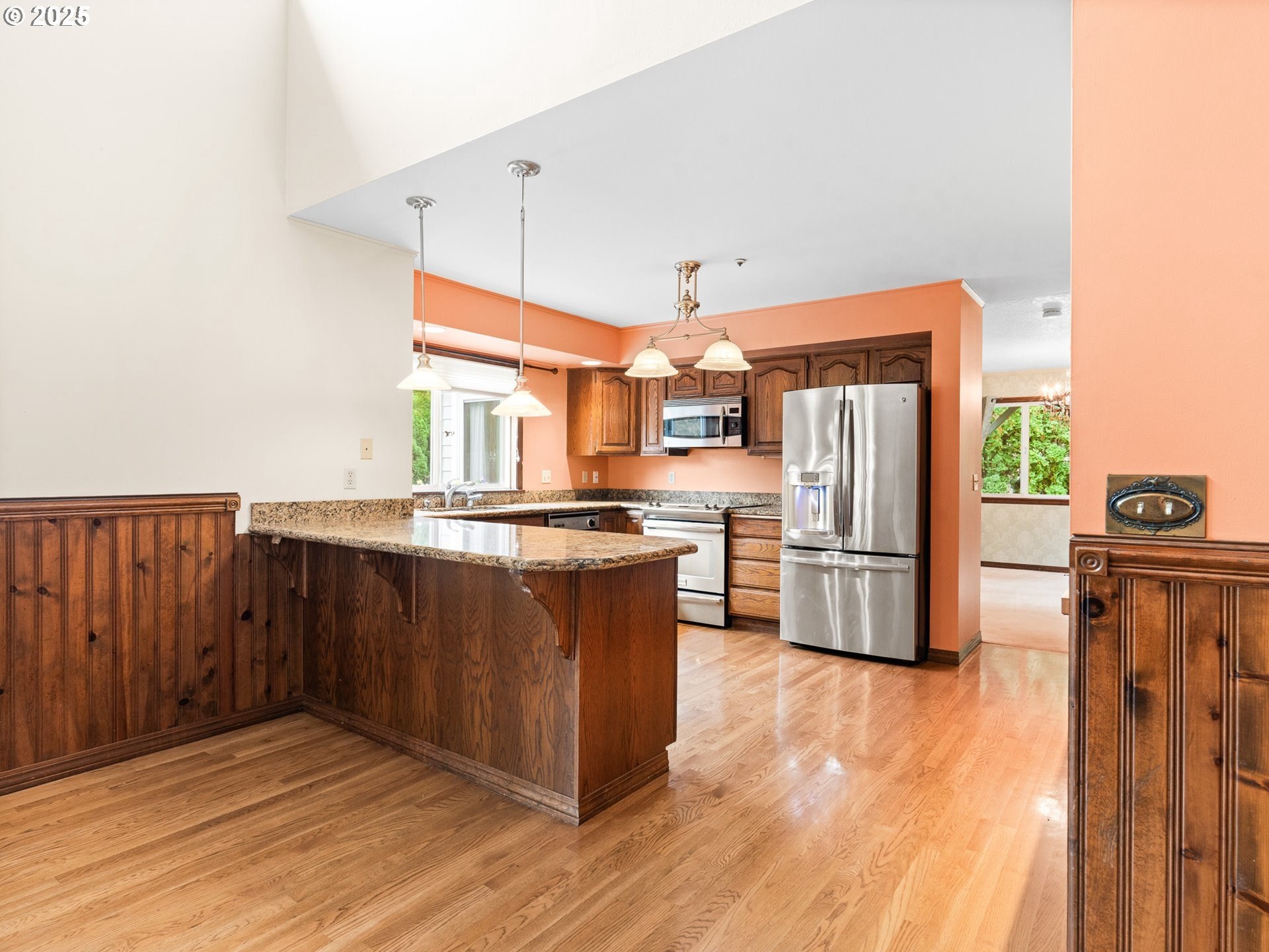 Welcome to Edgewater at Charbonneau—where timeless design meets modern comfort. This 2,598 sq. ft. home offers three bedrooms plus a den, two and a half baths, and sits on a beautifully landscaped, level .22-acre lot. The main floor features a wonderful balance of formal and informal spaces, ideal for today’s lifestyle. The great room showcases an inviting living area with vaulted ceilings, a cozy fireplace, and sliding doors that open to an expansive outdoor deck. The kitchen is a cook’s dream, with abundant cabinetry, solid-surface countertops, stainless steel appliances, and generous prep space. A formal living room and dining room with a wet bar and access to a private outdoor dining area provide perfect settings for entertaining. The main-level den, wrapped in rich wood paneling, offers a warm and sophisticated retreat for work or reading. Upstairs, the primary suite feels like a private sanctuary, complete with a balcony overlooking the manicured backyard, a luxurious ensuite bath with dual vanities, soaking tub, walk-in shower, and a spacious walk-in closet. Two additional bedrooms and a full bath complete the upper level. Enjoy outdoor living year-round with multiple spaces to relax or entertain—an inviting covered front porch, large back deck, and private dining patio surrounded by lush landscaping.Edgewater at Charbonneau residents enjoy access to a private pool, meeting room, and library. Nestled along the Willamette River, Charbonneau offers a resort-style lifestyle with golf, tennis, and walking paths—all just minutes from the shops, dining, and conveniences of Wilsonville.