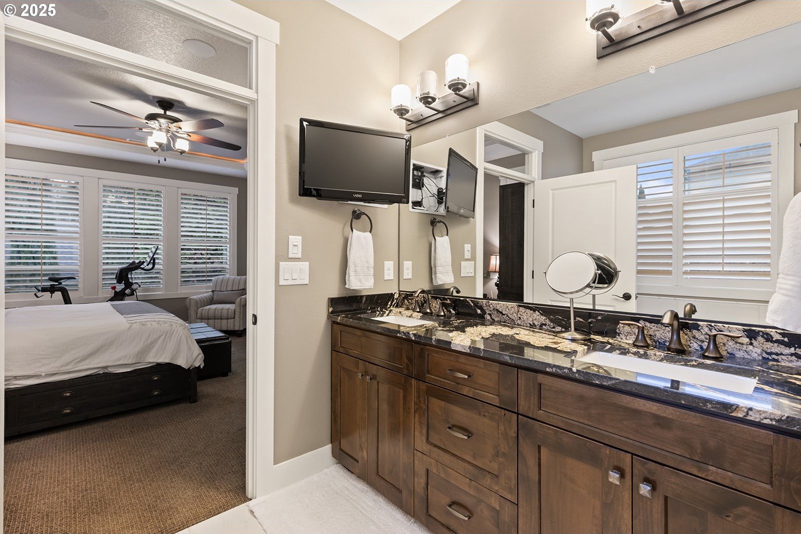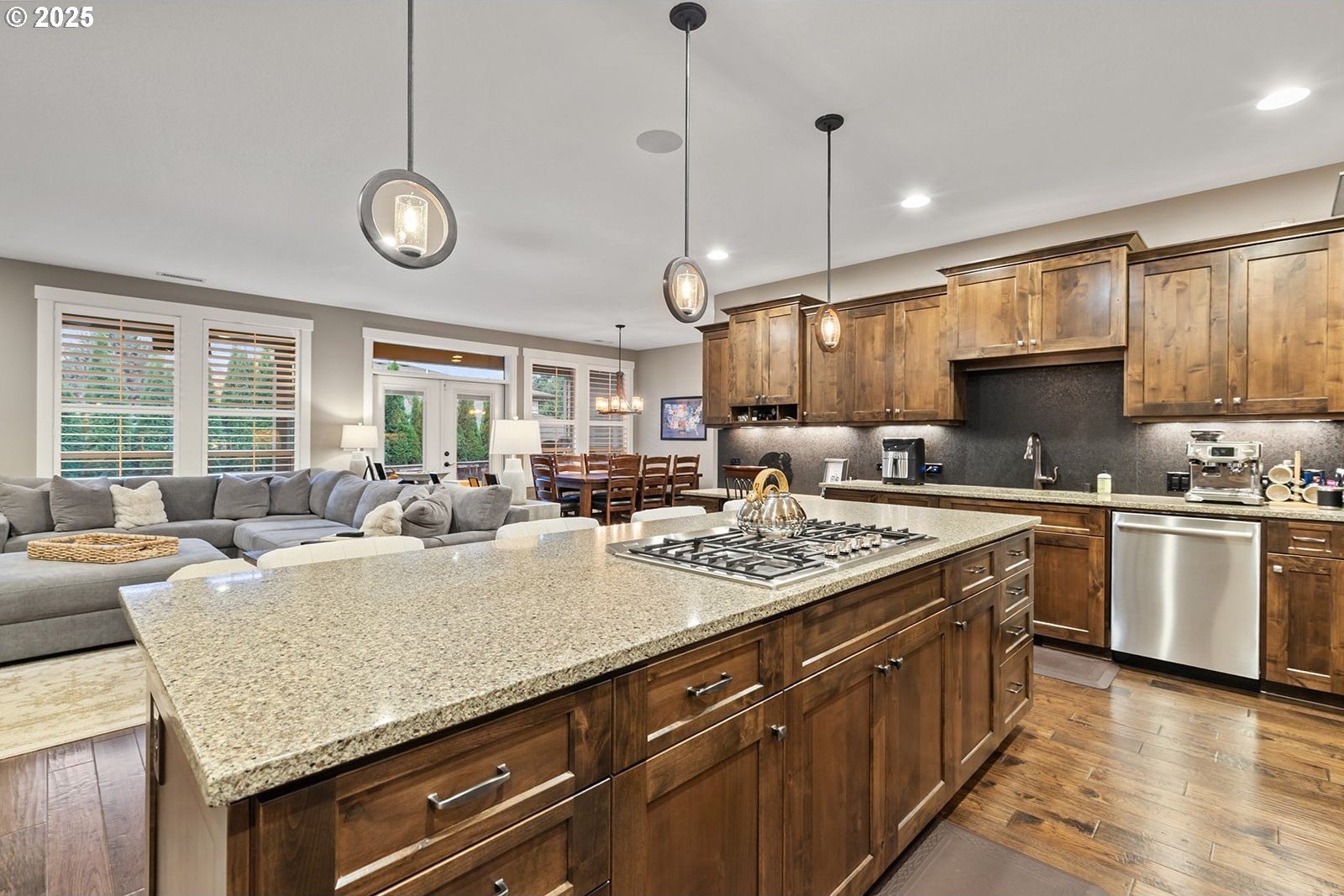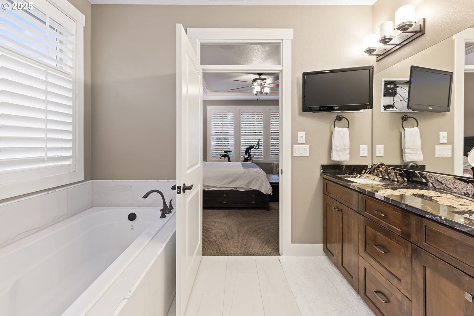 Lifestyle calls in this one of a kind Felida home! Main level living in this beautiful luxury home with an attached extra deep 3 bay garage and a detached 1456 sq ft luxury shop. Coveted Felida community, walk to parks, nearby local eateries, salon & Barre fitness! This home boasts 4 bedrooms on the main, plus an upper bonus room, including 2 bedrooms with attached bathrooms. Extras everywhere including built in vacuum, abundant windows with plantation shutters & 10' ceilings. Relaxing primary suite with a gas fireplace and private door to patio. Attached bathroom with soaking tub, 6ft tile shower and walk in closet. Gourmet Kitchen with butler's pantry with wine fridge, double oven, & eating island. Walk in pantry with extra refrigerator. Inviting great room with stone wall & custom built ins with a must have cozy gas fireplace! Upstairs enjoy a 425 sf bonus room with incredible reclaimed barnwood walls. A bar area with sink, mini fridge and microwave as well as bar counter seating for the ultimate entertaining. Hardwood floors complete the room perfectly! Outside enjoy an extra-large patio with covered area that includes lighting, heat, and a TV. Firepit & prewired for a hot tub! Fully fenced yard including side yard for games or adding a garden! The gem of this property is the 28'x 52' detached shop! Soaring ceilings, extra tall overhead door, bathroom with shower, hot water tank, floor drain, RV hook ups for power (50 amp) and sewer, shop has it's own 200 amp service, and custom storage. Home's exterior freshly painted! Ask to see the home's features list & watch the virtual tour for more photos!