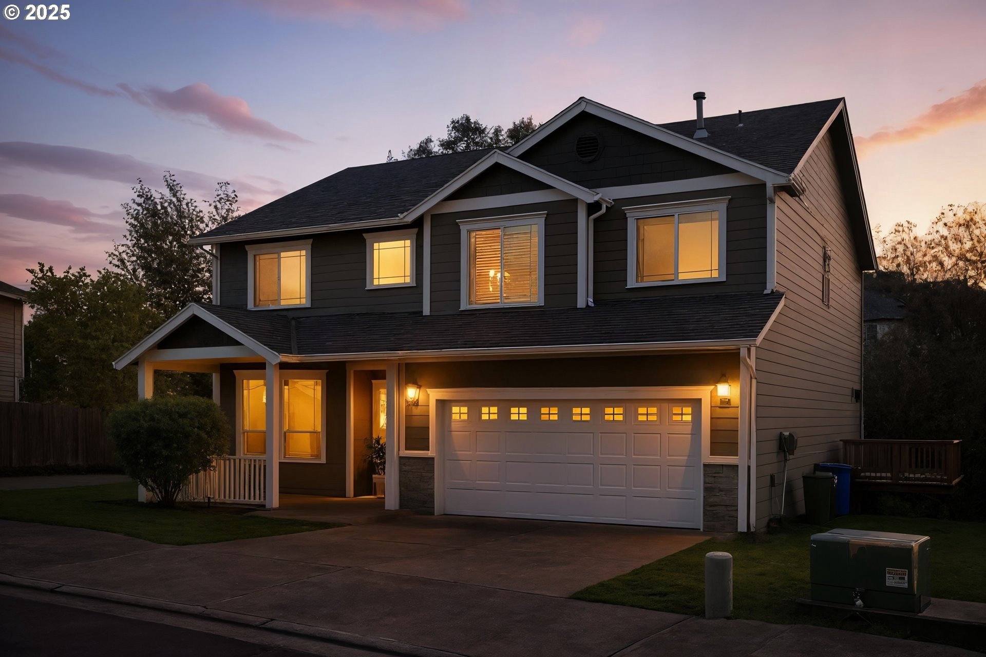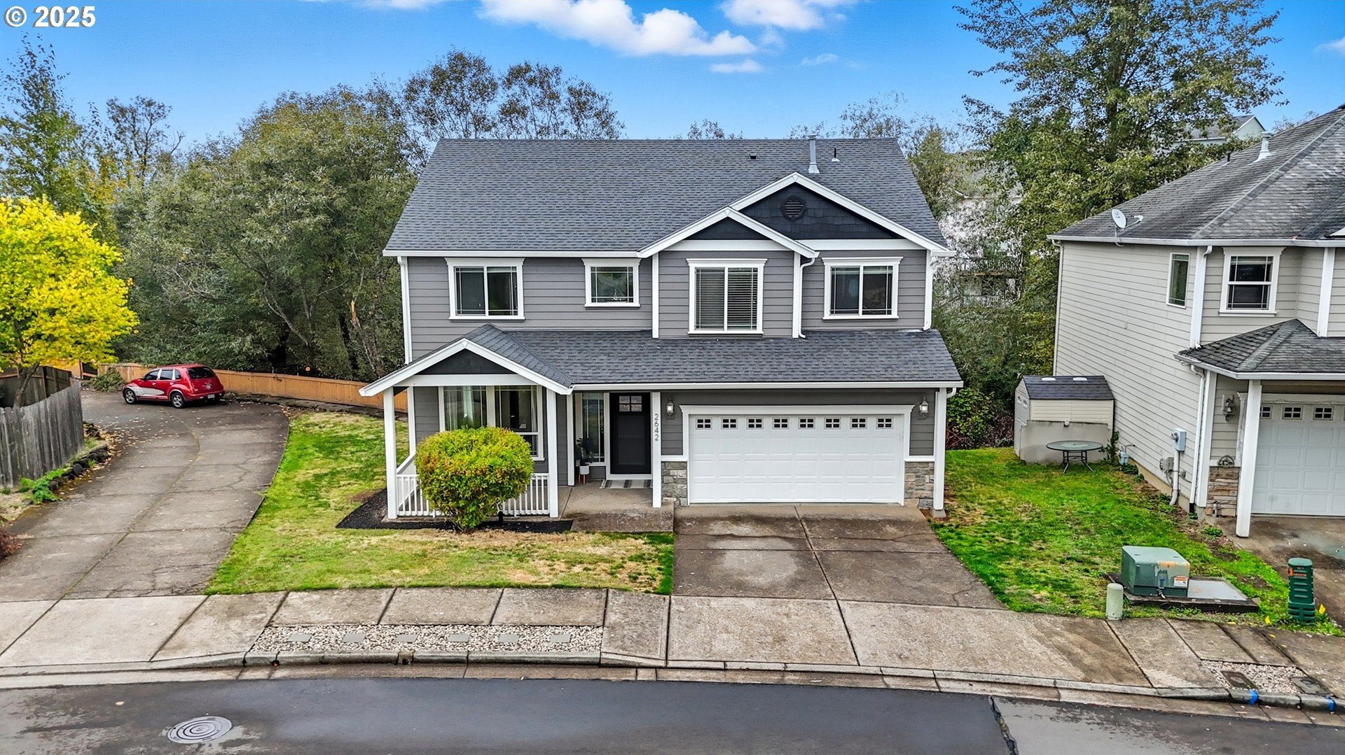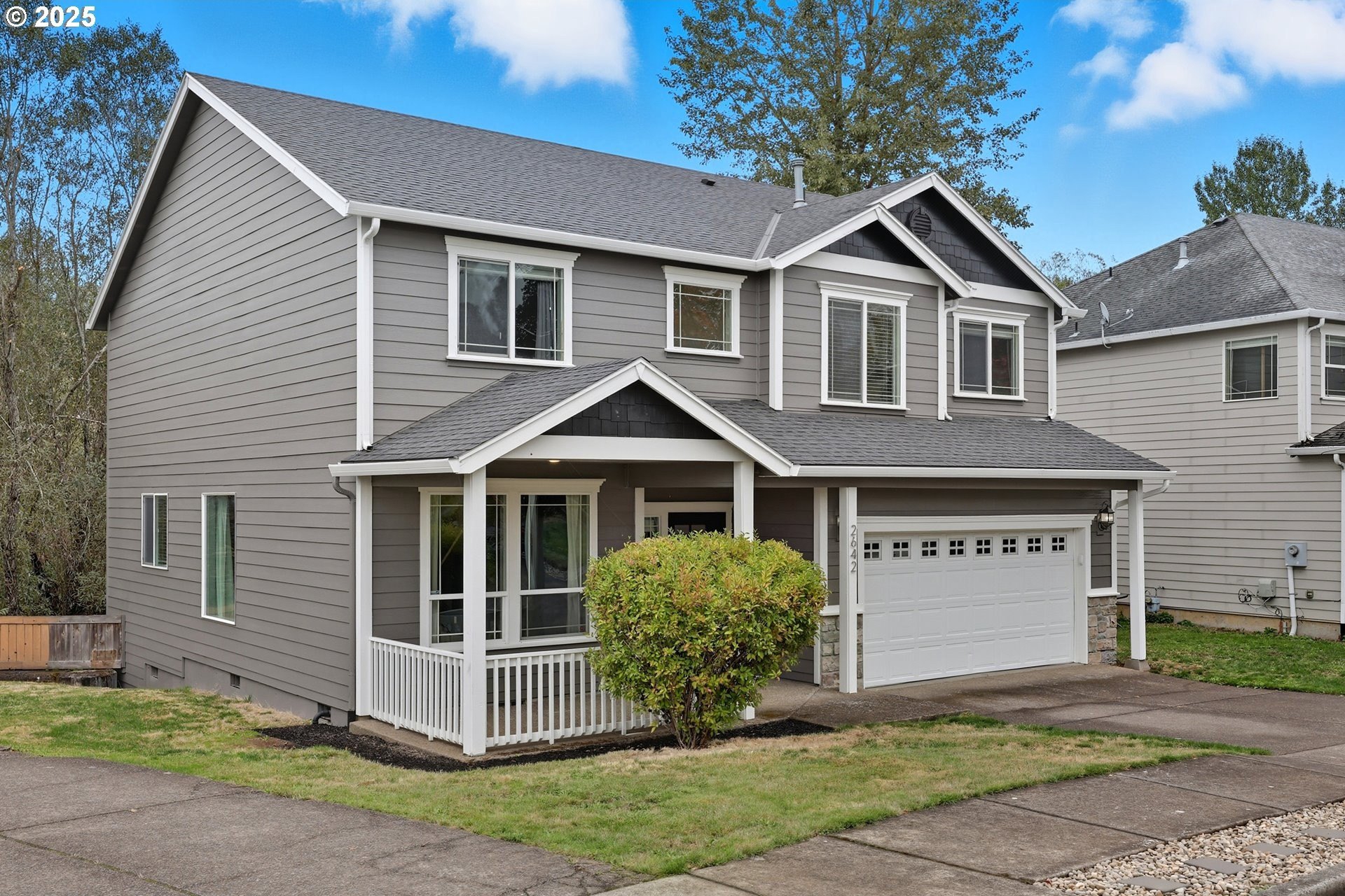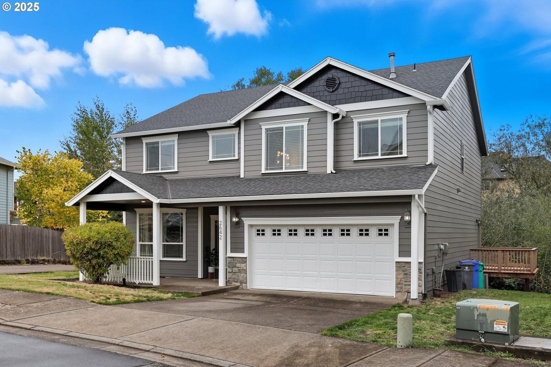 **OPEN HOUSE 10-18 1-3pm** This delightful 4 bed/2.5 bath home is the embodiment of smart design! The thoughtful & spacious floor plan simultaneously gives those cozy vibes while providing plenty of entertaining, office, and/or flex space. On the main floor you’ll find the formal dining room which flows directly into the dreamy kitchen/great room where you’ll be greeted by a truly spectacular floor to ceiling picture window that looks out onto the lush greenery of Kelly Creek providing a sense of serene enjoyment and privacy to boot! Gleaming bamboo flooring throughout, vaulted ceilings, beautiful cabinetry, plenty of counter space, a generously sized eat-in island w/storage, a breakfast nook & pantry, this kitchen is definitely the heart of the home! The kitchen flows directly into another charming gathering space made all the more cozy via the gas fireplace and elegant mantle- use it as a family room or formal living room as your needs dictate! A french door opens out onto the deck and further enjoyment of the greenspace. A half bath & entry to the garage rounds out the first floor. Up the architecturally pleasing open staircase & onto the 2nd floor you’ll find another flex/ gathering space which would function wonderfully as a 2nd family room, play space, office or workout space. You’ll find the primary, 3 additional bedrooms, a second full bath, & the conveniently located laundry room w/utility sink & storage on this floor. The primary bedroom feels like a true sanctuary. Enter through double doors into this airy space with its vaulted ceilings and tranquil views of the greenspace. You’ll be bathed in light in the spa-like ensuite featuring a skylight, a double vanity, a grand soaking tub & separate shower. With its close proximity to the Columbia River Gorge, Mt. Hood & Oxbow park, as well as everyday conveniences & a wonderful school district…this one has it all! Other features: New exterior paint 10/25, roof (2019), Covered front porch, Low maintenance yard.