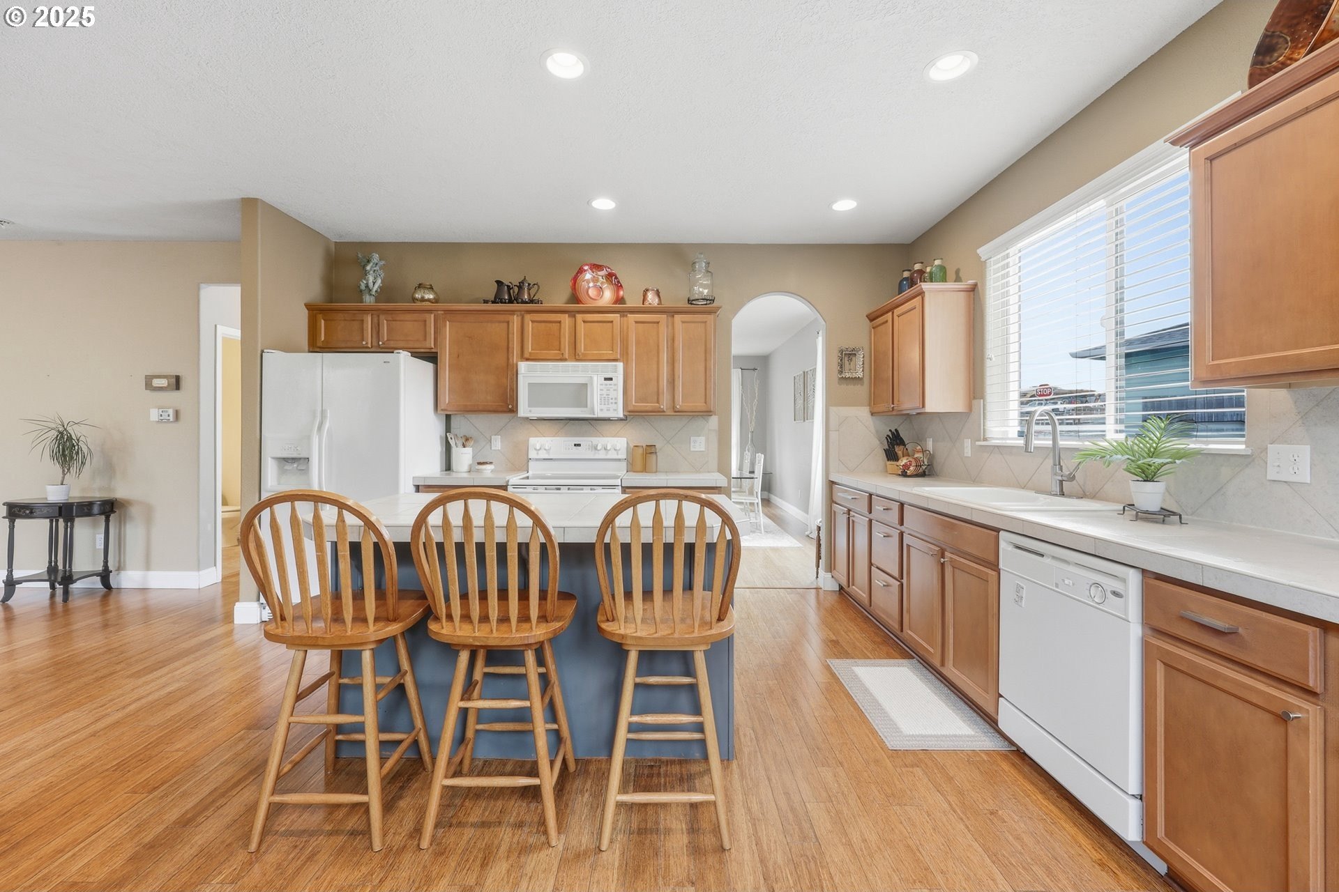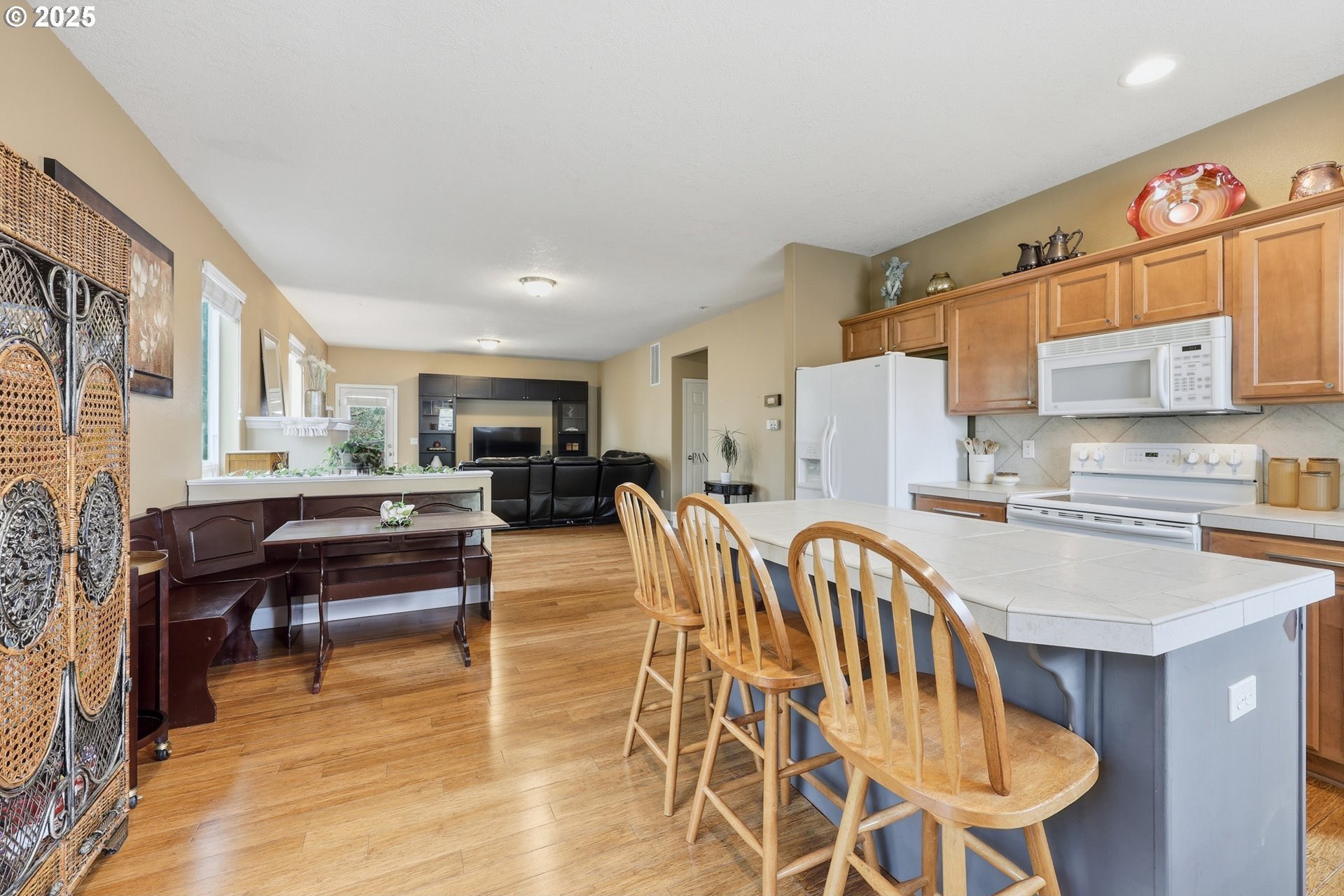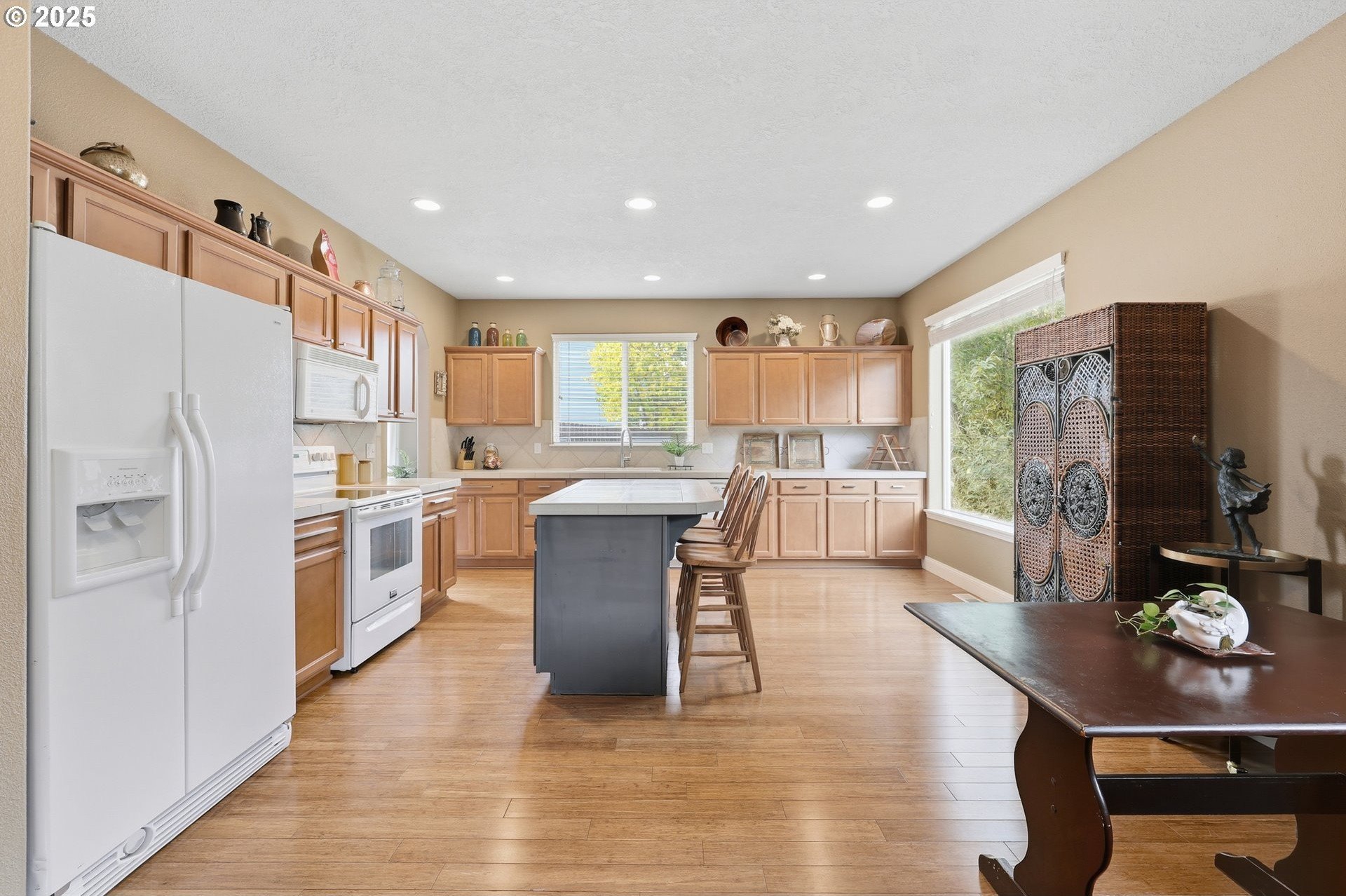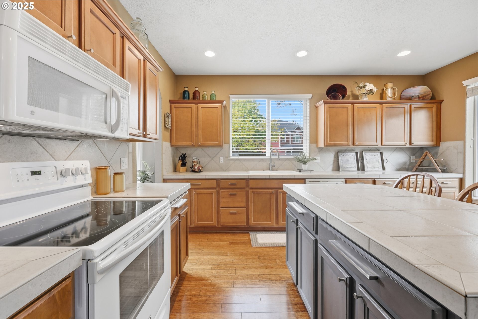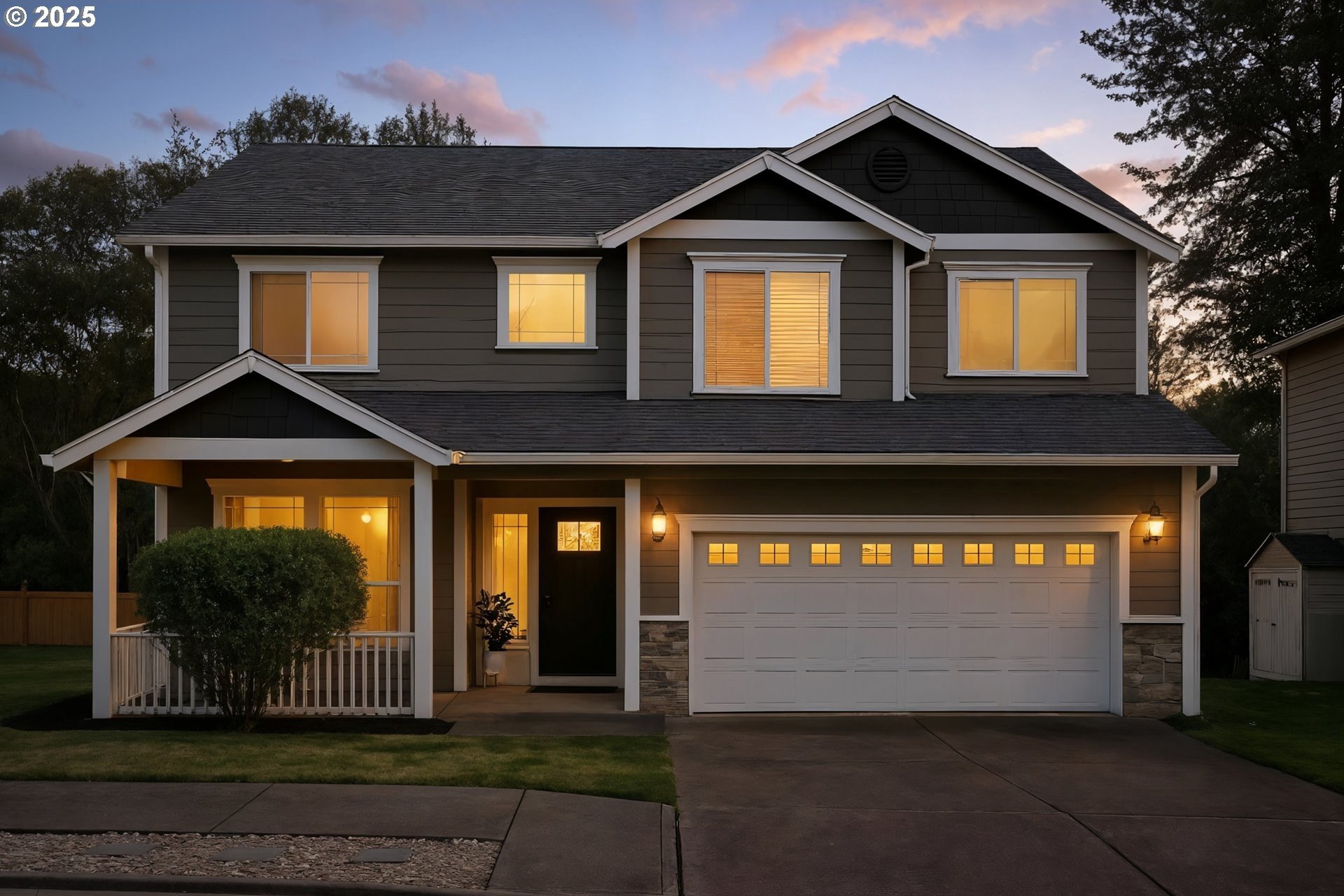 **OPEN HOUSE 10-18 1-3pm** This delightful 4 bed/2.5 bath home is the embodiment of smart design! The thoughtful & spacious floor plan simultaneously gives those cozy vibes while providing plenty of entertaining, office, and/or flex space. On the main floor you’ll find the formal dining room which flows directly into the dreamy kitchen/great room where you’ll be greeted by a truly spectacular floor to ceiling picture window that looks out onto the lush greenery of Kelly Creek providing a sense of serene enjoyment and privacy to boot! Gleaming bamboo flooring throughout, vaulted ceilings, beautiful cabinetry, plenty of counter space, a generously sized eat-in island w/storage, a breakfast nook & pantry, this kitchen is definitely the heart of the home! The kitchen flows directly into another charming gathering space made all the more cozy via the gas fireplace and elegant mantle- use it as a family room or formal living room as your needs dictate! A french door opens out onto the deck and further enjoyment of the greenspace. A half bath & entry to the garage rounds out the first floor. Up the architecturally pleasing open staircase & onto the 2nd floor you’ll find another flex/ gathering space which would function wonderfully as a 2nd family room, play space, office or workout space. You’ll find the primary, 3 additional bedrooms, a second full bath, & the conveniently located laundry room w/utility sink & storage on this floor. The primary bedroom feels like a true sanctuary. Enter through double doors into this airy space with its vaulted ceilings and tranquil views of the greenspace. You’ll be bathed in light in the spa-like ensuite featuring a skylight, a double vanity, a grand soaking tub & separate shower. With its close proximity to the Columbia River Gorge, Mt. Hood & Oxbow park, as well as everyday conveniences & a wonderful school district…this one has it all! Other features: New exterior paint 10/25, roof (2019), Covered front porch, Low maintenance yard.