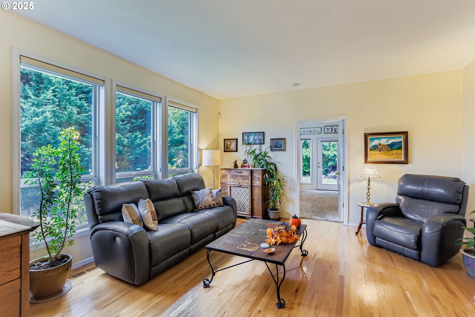 Beautifully crafted home in a highly sought after West Linn Neighborhood. Enjoy easy access to scenic walking trails along the Tualatin River and the convenience of a short walk to downtown shops and excellent dining. Built with quality and attention to detail, this spacious 3,700 sq. ft. home offers 5 bedrooms, 3.5 bathrooms, and a thoughtful layout perfect for entertaining.The main level features hardwood floors throughout, a formal dining room, and a bright kitchen with a cozy dining nook that flows seamlessly into a large family room—perfect for gatherings and everyday living. The main level also features a private suite with an ADA-accessible bathroom that opens to a separate living room with a gas fireplace—perfect for guests, multi-generational living, or a home office. Upstairs includes 4 bedrooms, including a primary suite with a large jacuzzi tub. The lower level provides abundant storage and an extra deep 3 car garage.Enjoy outdoor living with patios on both sides of the home showcasing beautiful views. Thoughtfully maintained with quality construction and a brand-new roof, this home is move-in ready and built to last.