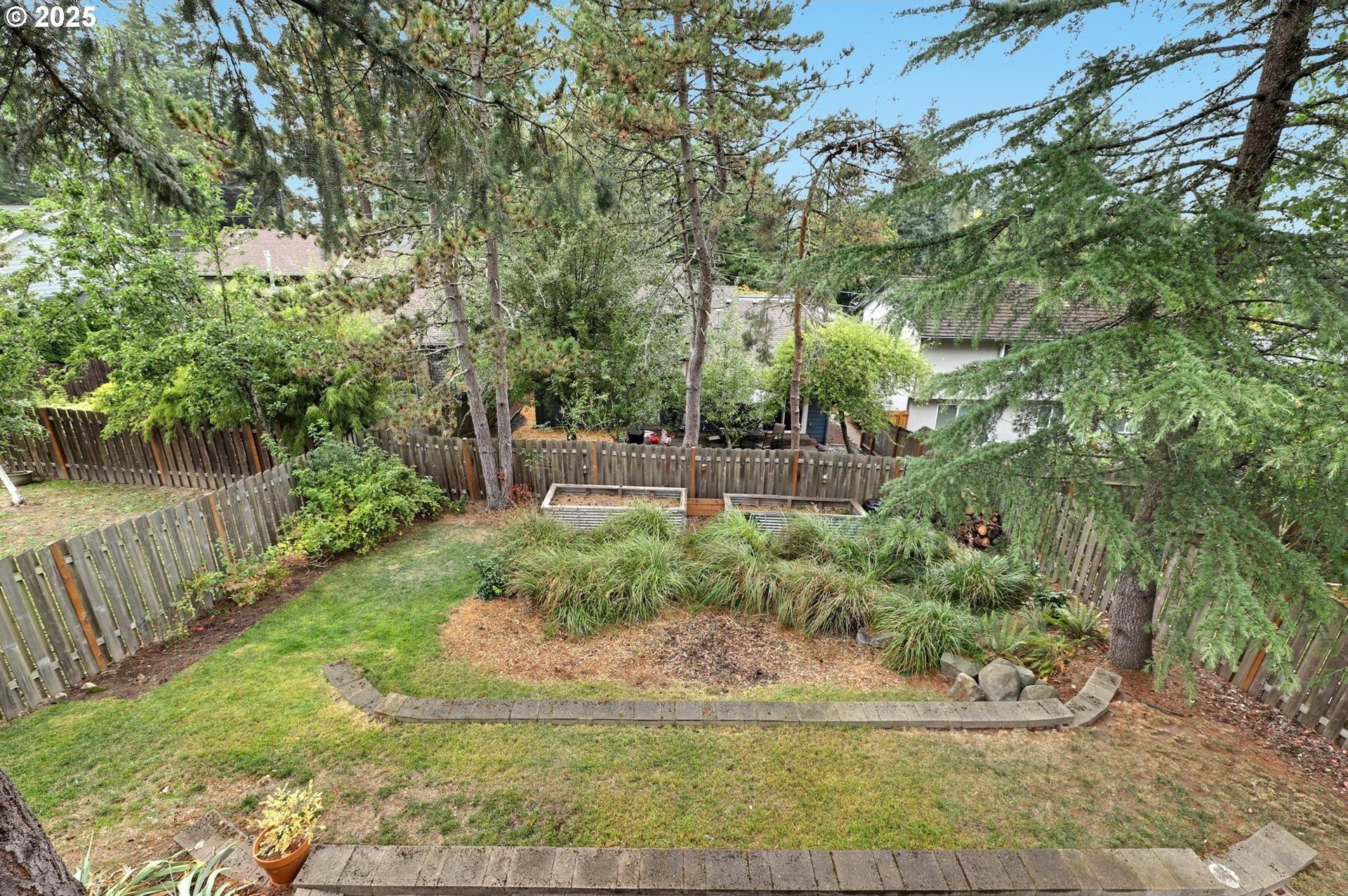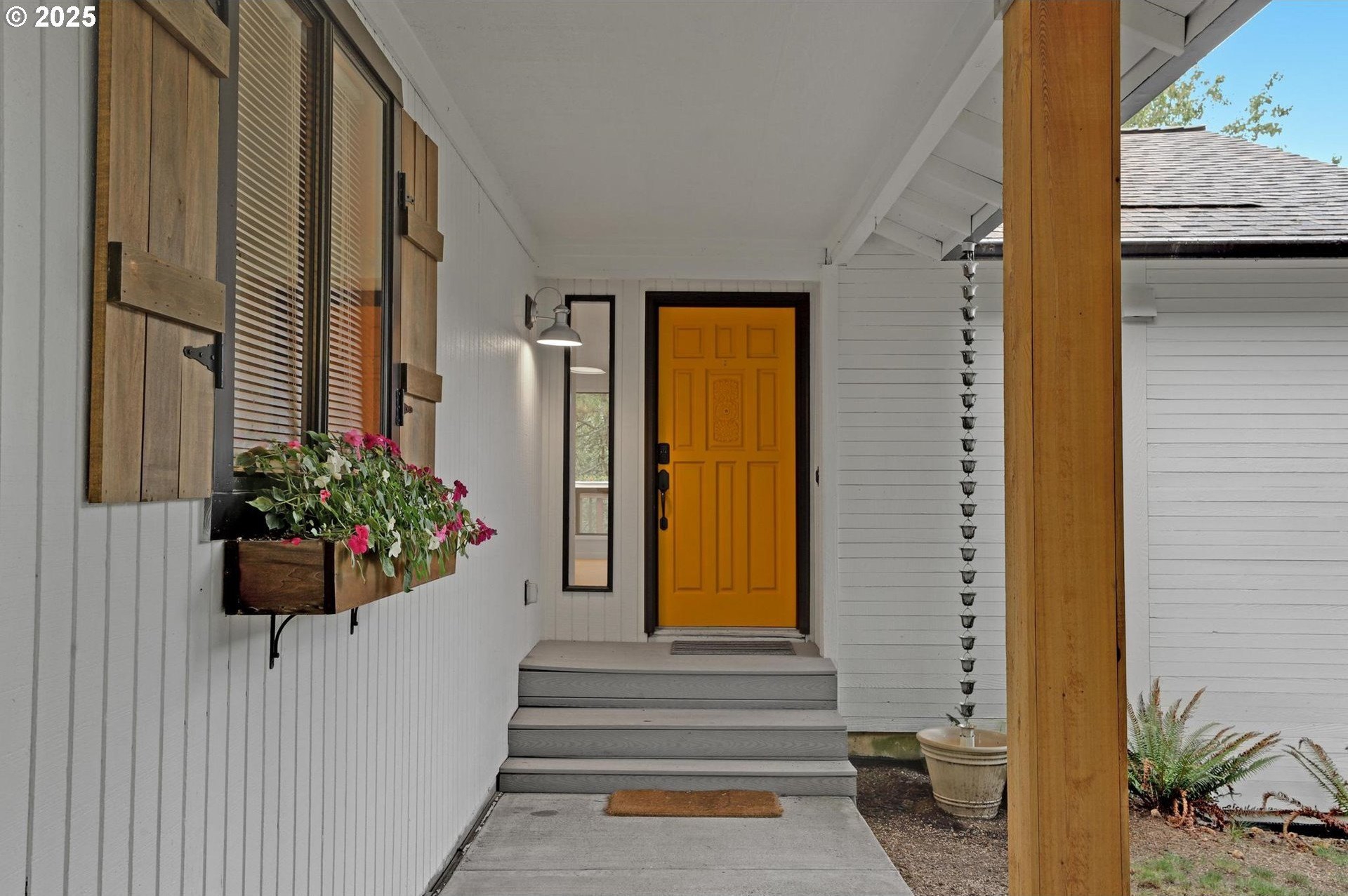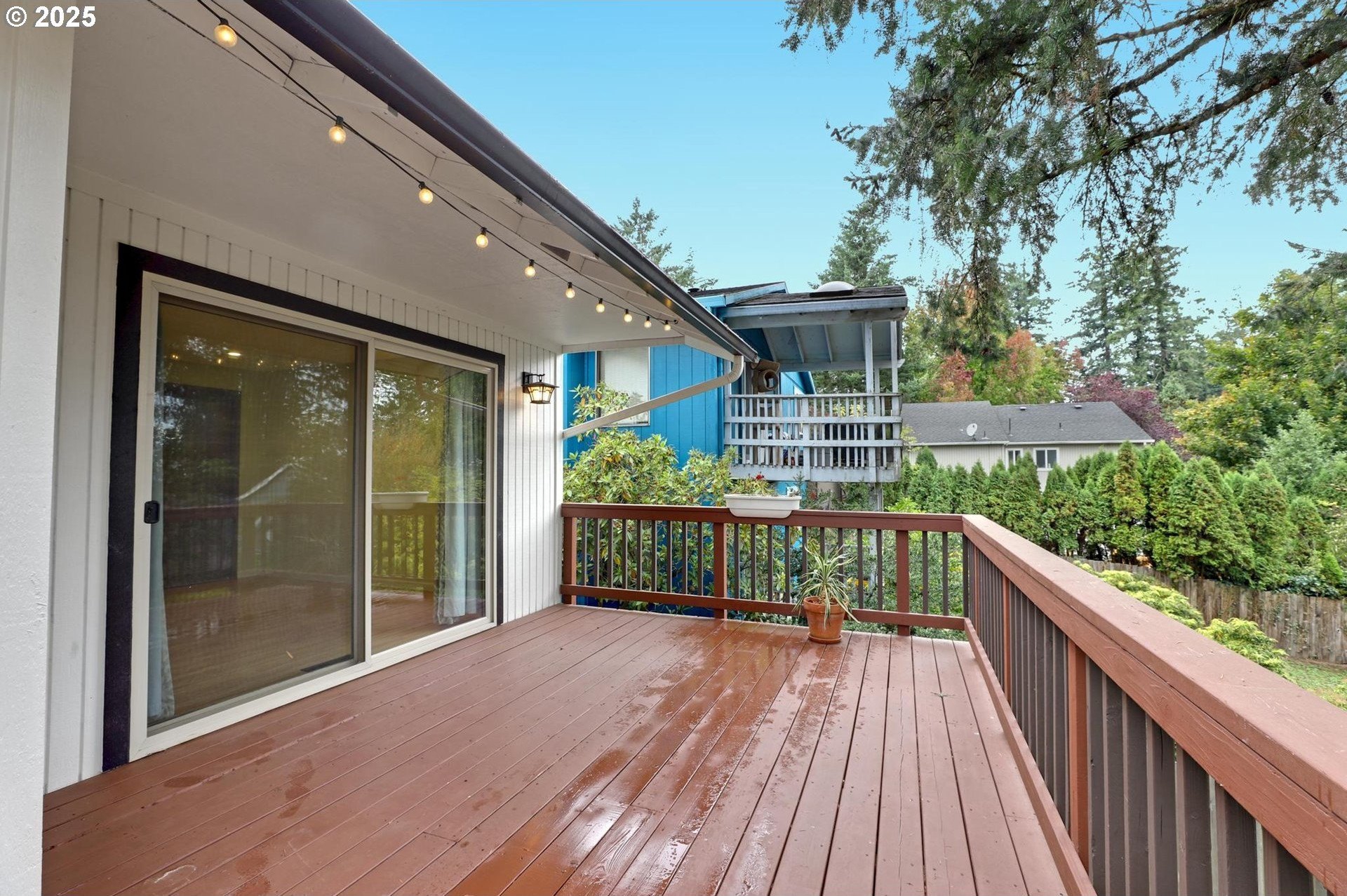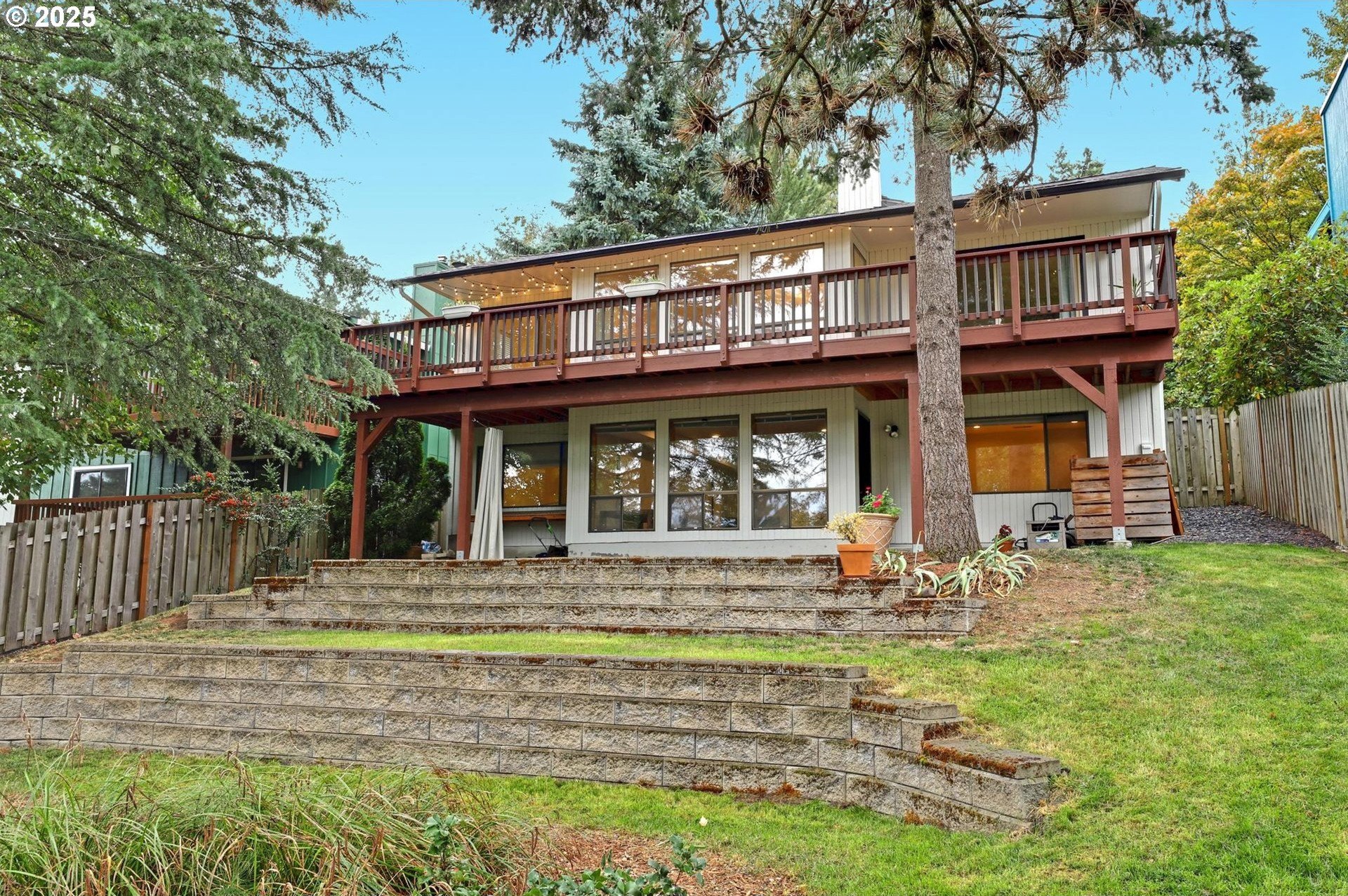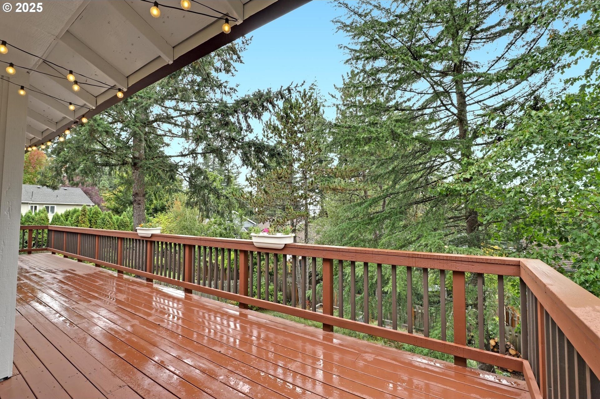 Tucked on a quiet street with no neighbors across, this light-filled Daylight Ranch feels like a private forest retreat just minutes from Portland’s urban edge. Expansive windows frame elevated territorial views, while a wood-burning fireplace anchors the open main level, creating a warm and inviting atmosphere. The home blends comfort with thoughtful design, featuring natural light, warm materials, and spaces that connect seamlessly to the outdoors. The primary suite opens to a spacious deck overlooking the treetops and features a bathroom with heated tile floors for an added touch of comfort. The lower level offers two bedrooms, a full bath, and a large family room with a bar—perfect for guests, hobbies, or movie nights. Outdoors, enjoy the partially covered deck and terraced garden beds surrounded by trees and birdsongs. The extra-deep garage provides ample storage space and room for a workbench or hobby area. This is a well maintained home with lots of thoughtful updates including: new roof (2022), water heater (2022), exterior paint (2023), attic insulation and sealing from a professional energy audit (2025), and more. Conveniently located with easy access to I-5 and Barbur Blvd, close to shopping, dining, parks, and community amenities. [Home Energy Score = 7. HES Report at https://rpt.greenbuildingregistry.com/hes/OR10242372]