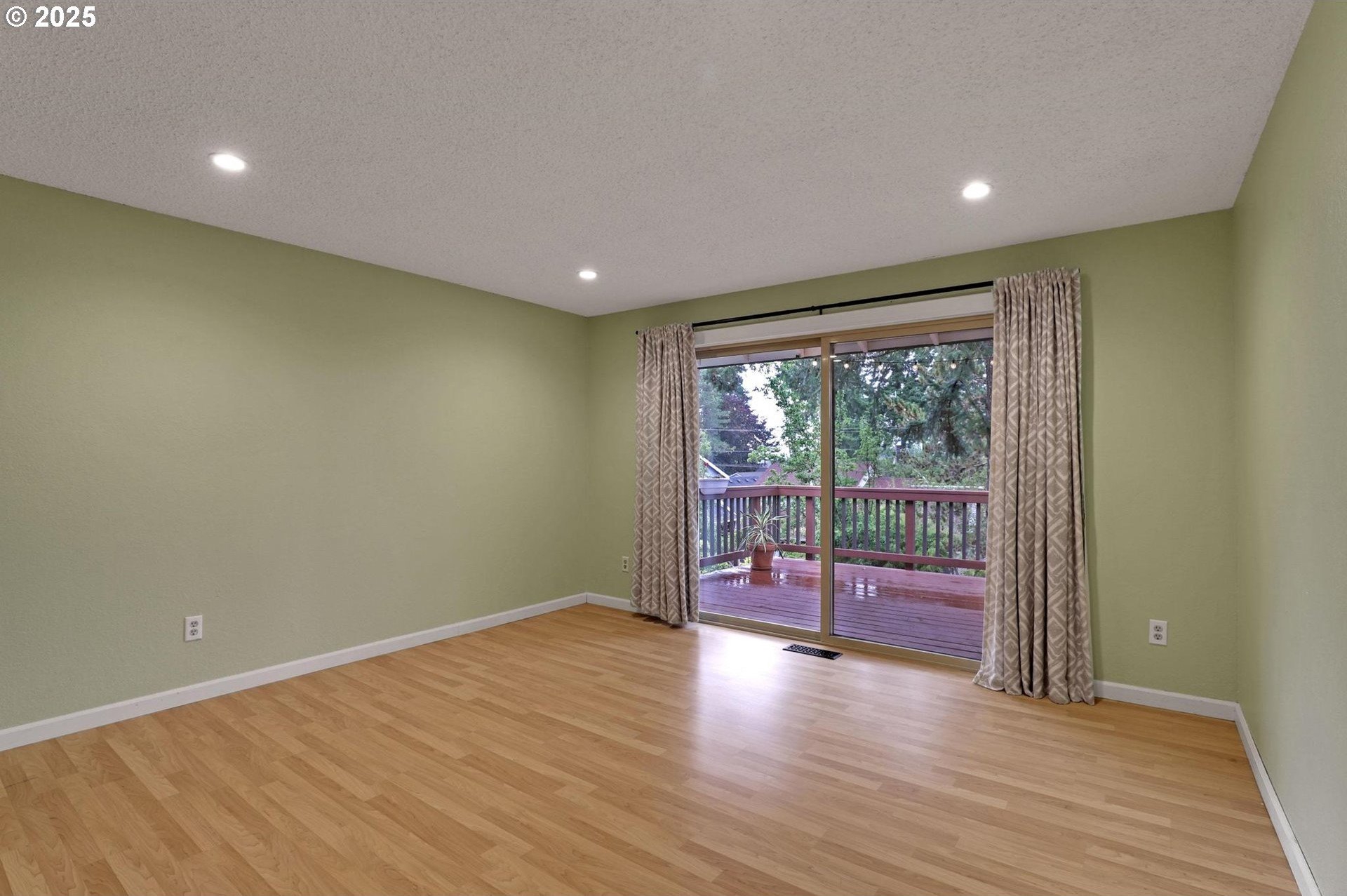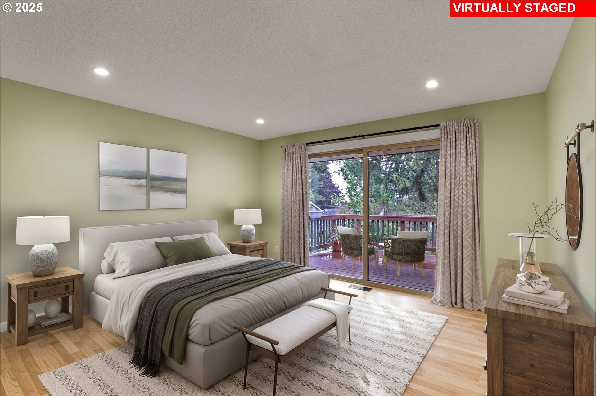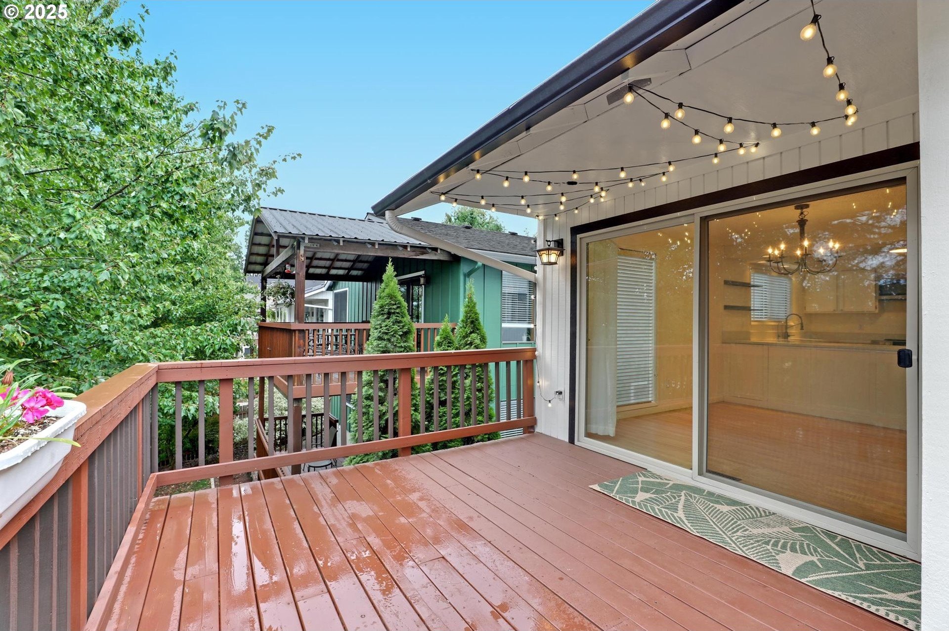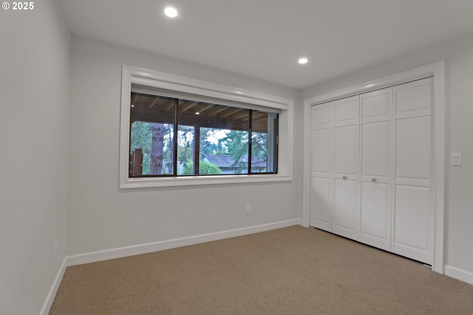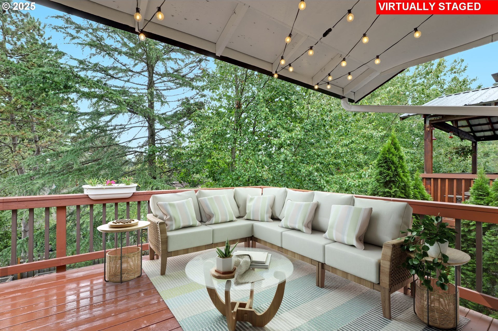 Tucked on a quiet street with no neighbors across, this light-filled Daylight Ranch feels like a private forest retreat just minutes from Portland’s urban edge. Expansive windows frame elevated territorial views, while a wood-burning fireplace anchors the open main level, creating a warm and inviting atmosphere. The home blends comfort with thoughtful design, featuring natural light, warm materials, and spaces that connect seamlessly to the outdoors. The primary suite opens to a spacious deck overlooking the treetops and features a bathroom with heated tile floors for an added touch of comfort. The lower level offers two bedrooms, a full bath, and a large family room with a bar—perfect for guests, hobbies, or movie nights. Outdoors, enjoy the partially covered deck and terraced garden beds surrounded by trees and birdsongs. The extra-deep garage provides ample storage space and room for a workbench or hobby area. This is a well maintained home with lots of thoughtful updates including: new roof (2022), water heater (2022), exterior paint (2023), attic insulation and sealing from a professional energy audit (2025), and more. Conveniently located with easy access to I-5 and Barbur Blvd, close to shopping, dining, parks, and community amenities. [Home Energy Score = 7. HES Report at https://rpt.greenbuildingregistry.com/hes/OR10242372]