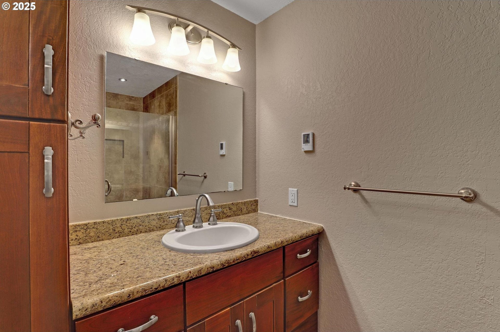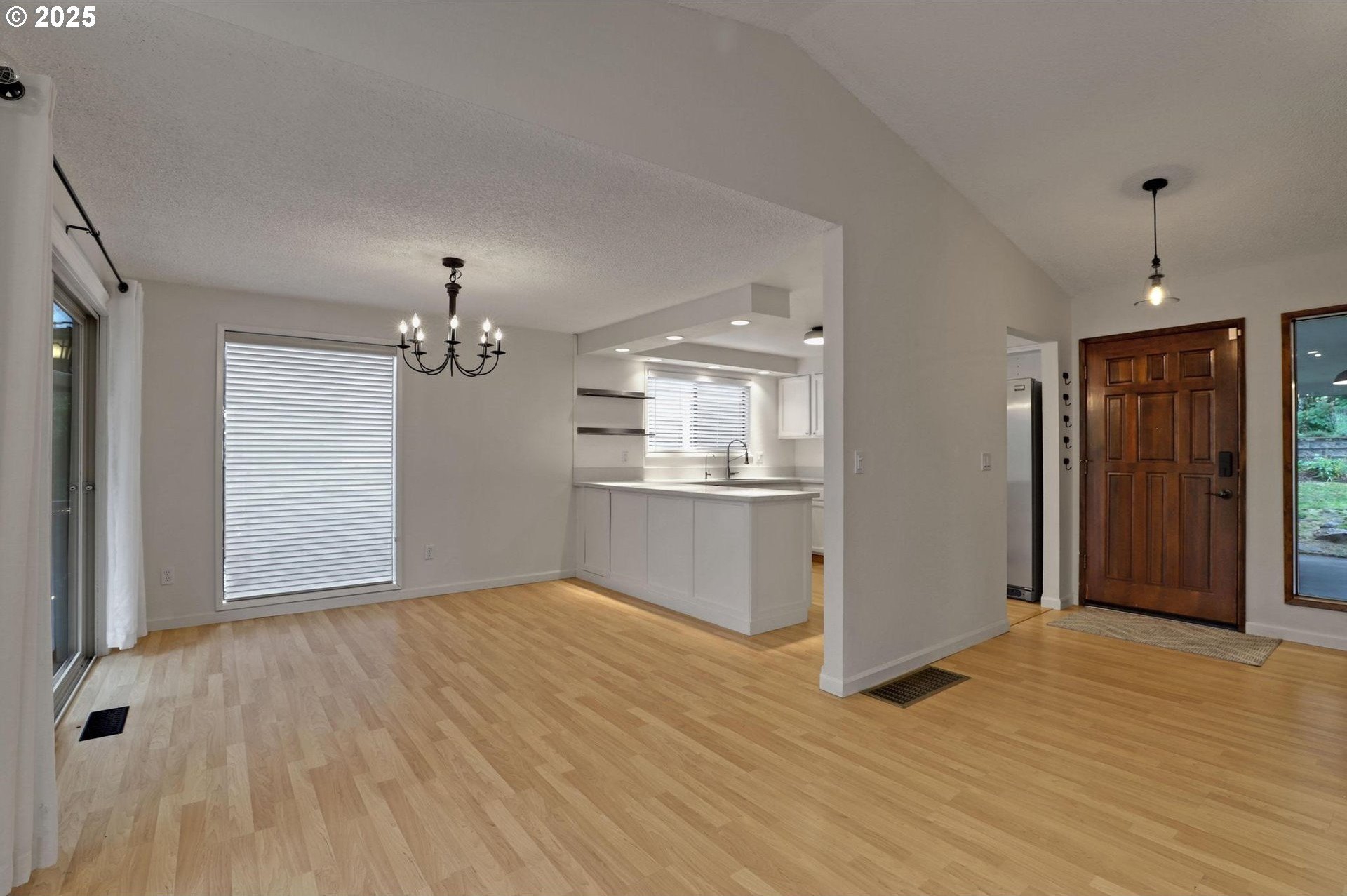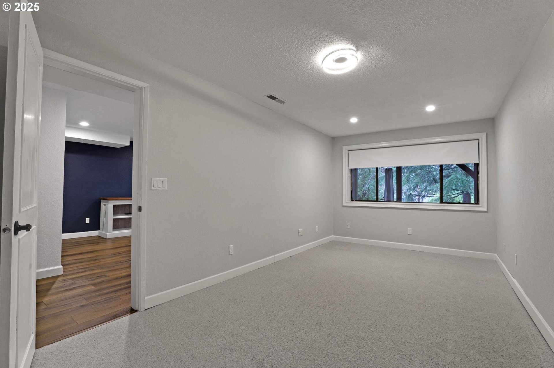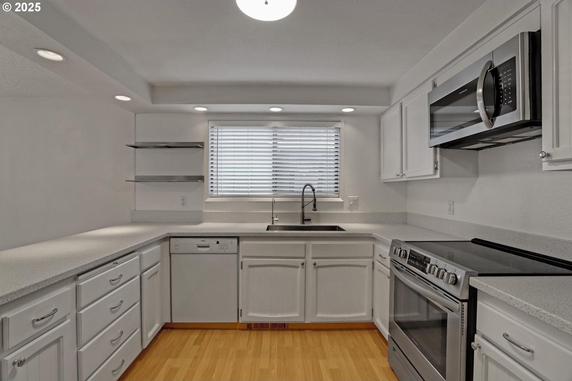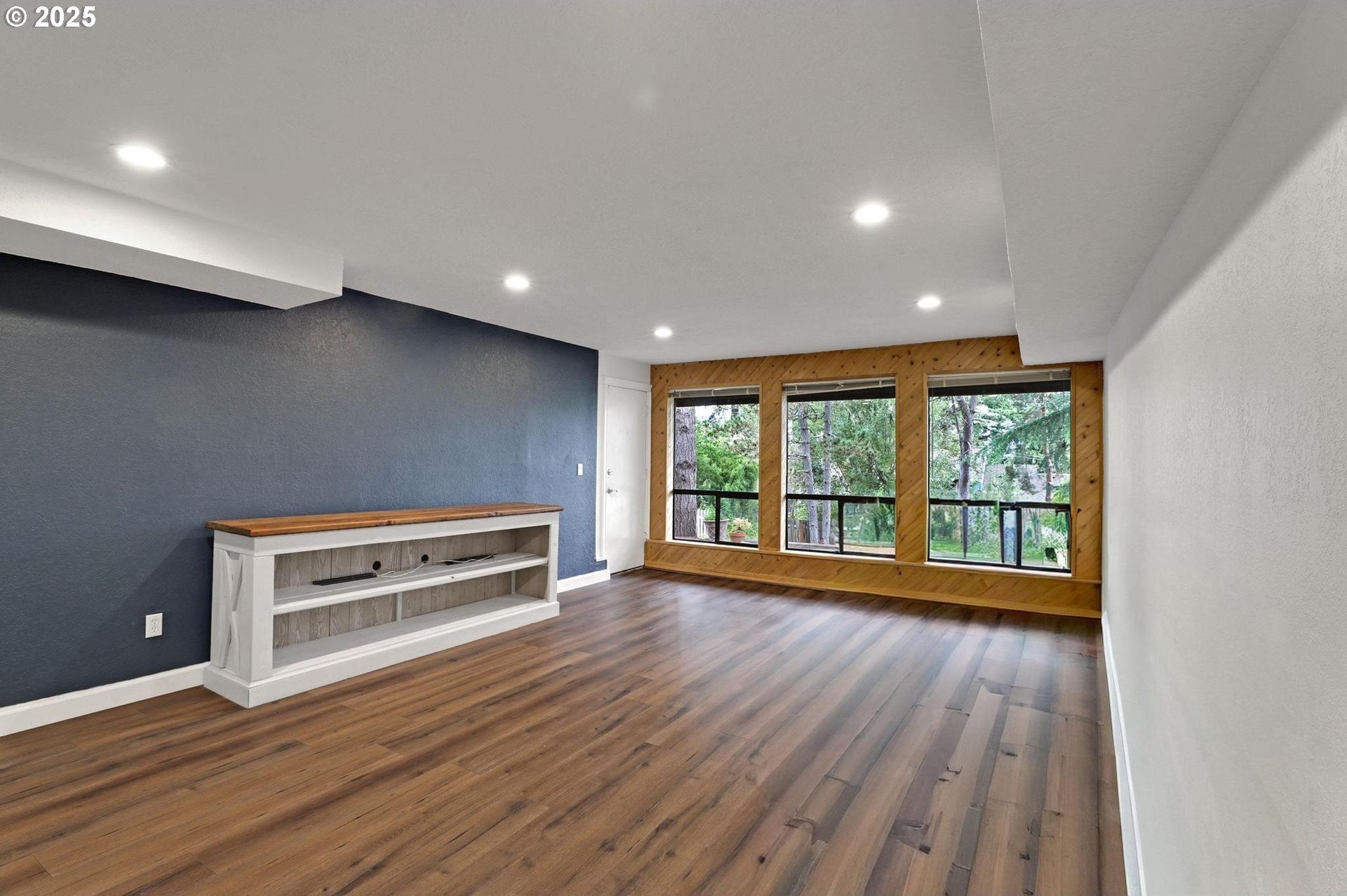Tucked on a quiet street with no neighbors across, this light-filled Daylight Ranch feels like a private forest retreat just minutes from Portland’s urban edge. Expansive windows frame elevated territorial views, while a wood-burning fireplace anchors the open main level, creating a warm and inviting atmosphere. The home blends comfort with thoughtful design, featuring natural light, warm materials, and spaces that connect seamlessly to the outdoors. The primary suite opens to a spacious deck overlooking the treetops and features a bathroom with heated tile floors for an added touch of comfort. The lower level offers two bedrooms, a full bath, and a large family room with a bar—perfect for guests, hobbies, or movie nights. Outdoors, enjoy the partially covered deck and terraced garden beds surrounded by trees and birdsongs. The extra-deep garage provides ample storage space and room for a workbench or hobby area. This is a well maintained home with lots of thoughtful updates including: new roof (2022), water heater (2022), exterior paint (2023), attic insulation and sealing from a professional energy audit (2025), and more. Conveniently located with easy access to I-5 and Barbur Blvd, close to shopping, dining, parks, and community amenities. [Home Energy Score = 7. HES Report at https://rpt.greenbuildingregistry.com/hes/OR10242372]