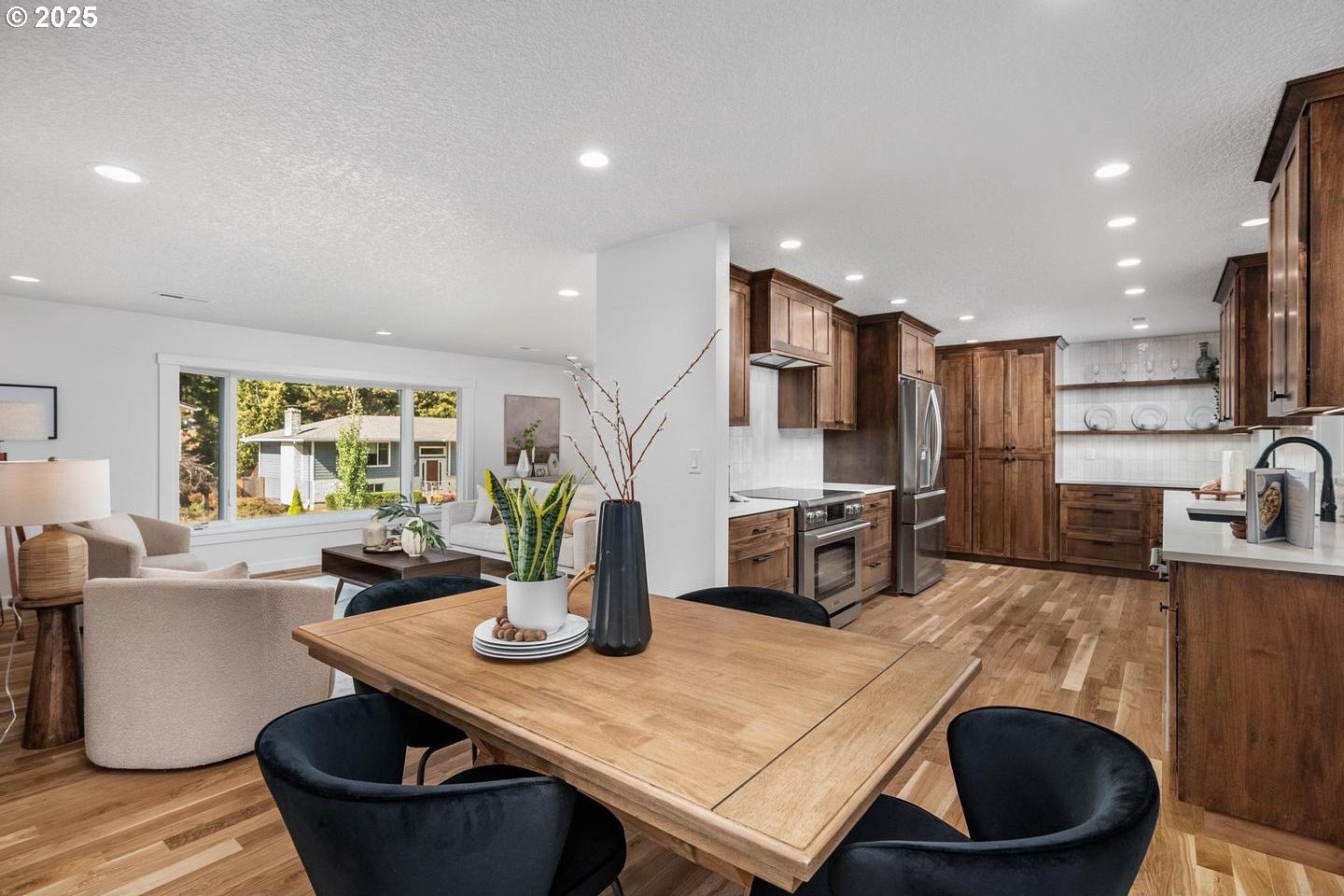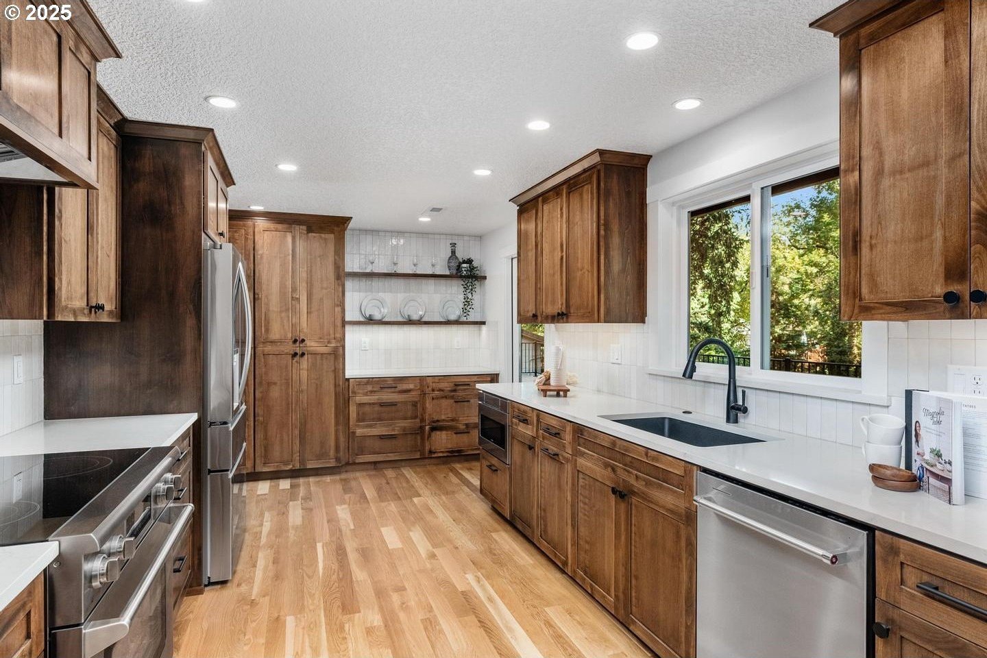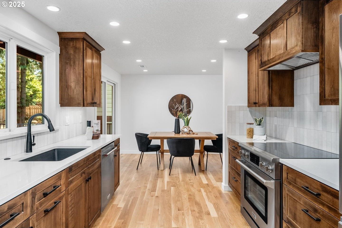 Stunning Pacific Northwest Remodel in Gladstone’s coveted ‘Sherwood Forest’ community - NO HOA! This modern split-level has been completely reimagined from the inside out, offering the style and efficiency of new construction with the charm of an established neighborhood. Every surface and system has been thoughtfully updated throughout the 2,289 sqft layout, featuring 4 bedrooms, 3 full designer bathrooms, spacious bonus room, and two wood-burning fireplaces. The custom kitchen is a true showpiece, featuring real alder cabinetry with abundant storage, Snow Orchid quartz counters, Chloe tile backsplash, floating shelves, and premium stainless appliances including a 36” Thor Range, counter depth refrigerator, and built-in microwave. Real Oak hardwood floors span the main level & stairs, tile downstairs, with plush carpet in all the bedrooms & bonus. The primary suite features a zero-edge walk-in tiled shower and private slider to the expansive 800 sqft Trex deck (entertainers dream) which overlooks large fenced backyard w/mature trees & sleek metal railings. Major upgrades include a new 30-year roof w/gutters, PEX plumbing (replaced all copper), 200 AMP electrical panel, sewer line, attic & floor insulation, and newer windows & slider for lots of natural light. This home is extremely energy-efficient, with a tankless hot water heater w/circulating pump, 95% efficient Trane furnace, Energy Star-rated dishwasher, and high-efficiency AC. Ample street parking adds convenience. The exterior is a standout w/black-painted board & batten above natural-stained cedar, modern garage door w/ matching entry door, and brand-new driveway. Tucked on a quiet dead-end street, this friendly neighborhood is very peaceful w/ big trees and a private park. This is the full package—style, quality, and peace of mind. See amenity sheet for full list of all updates. Close to parks, recreation, and schools. LLC Member is Licensed OR Broker. This is a must see - schedule your showing today!